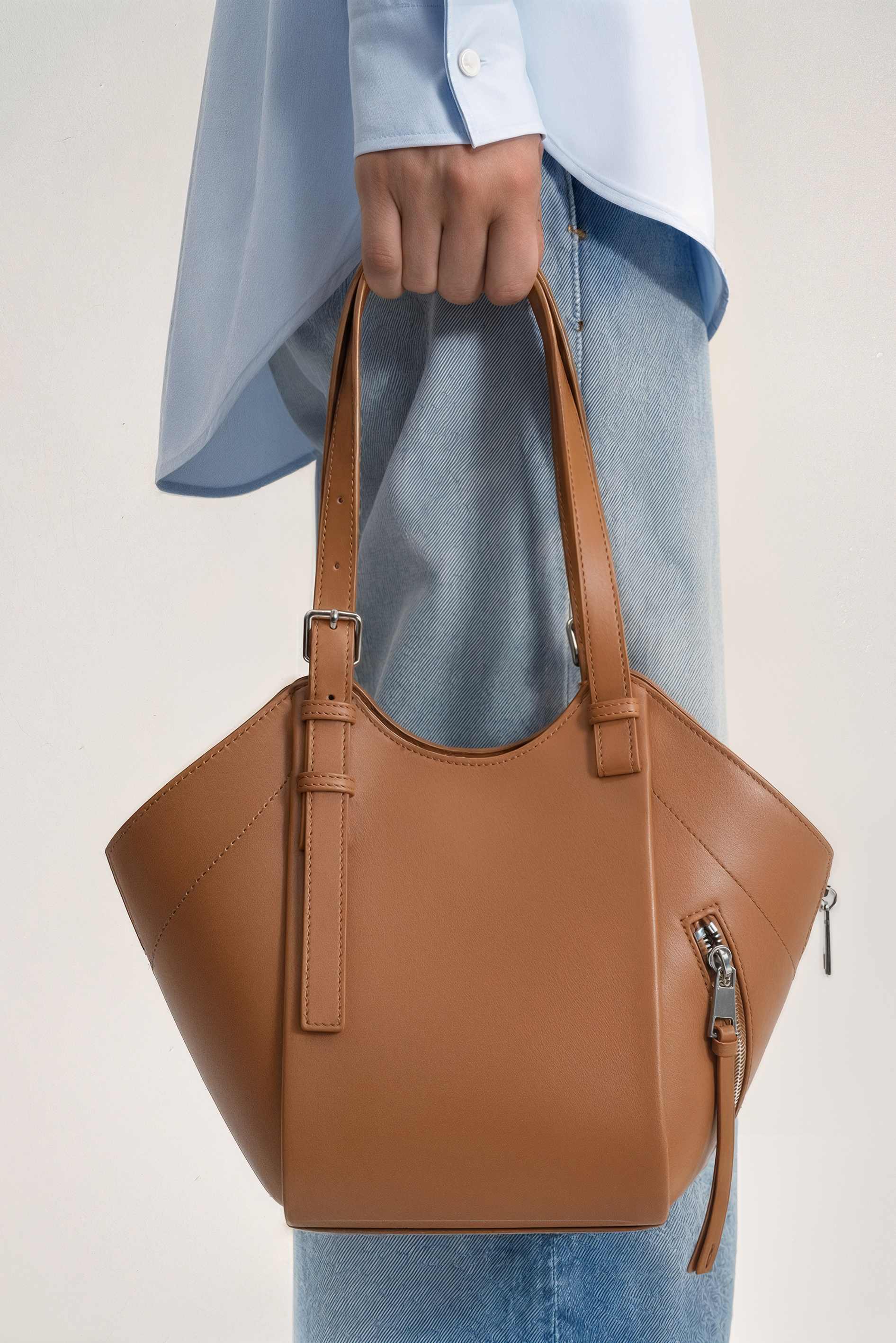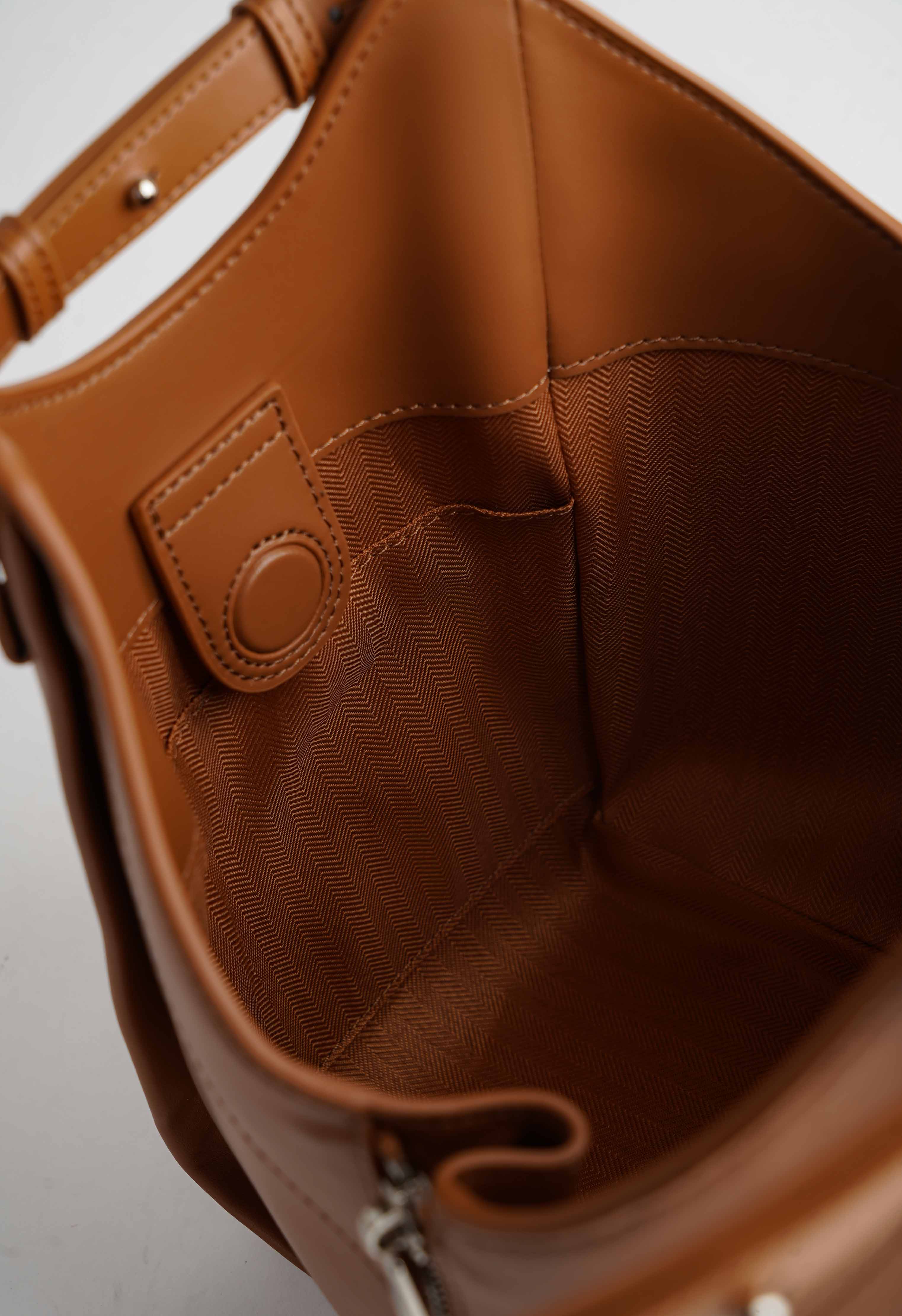 Рыжая сумка из натуральной кожи – стильный акцент с необычной, архитектурной формой, который сразу оживляет образ и выглядит очень дорого. Клапан на магните закрывается быстро и аккуратно, а серебряная фурнитура добавляет современный холодный блеск и подчеркивает чистые линии модели. Внутри предусмотрен карман для нужных мелочей, снаружи – еще один карман для быстрого доступа к телефону или ключам. Регулируемая ручка удобно настраивается под посадку, а дополнительный ремешок для увеличения длины позволяет носить сумку более свободно.