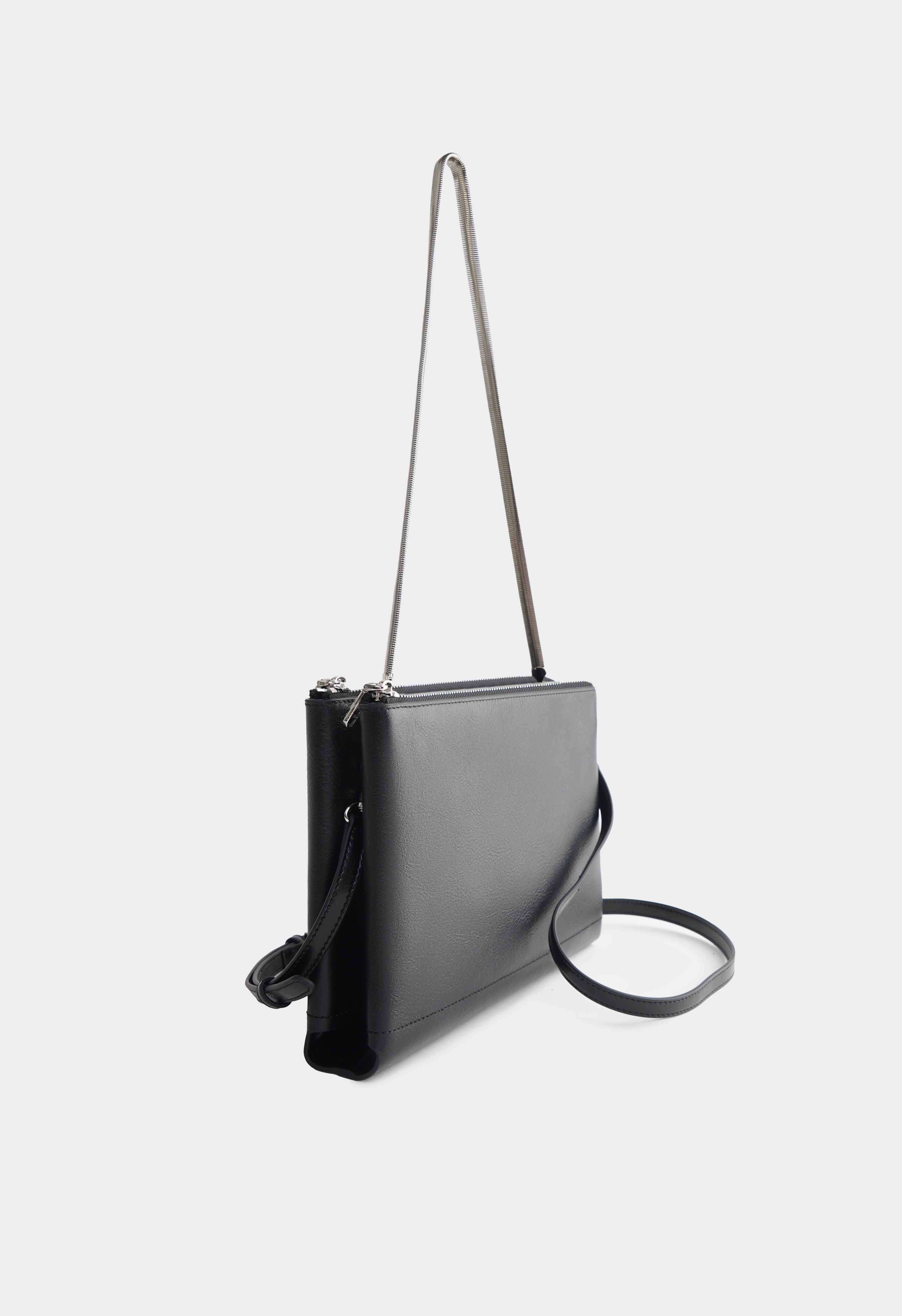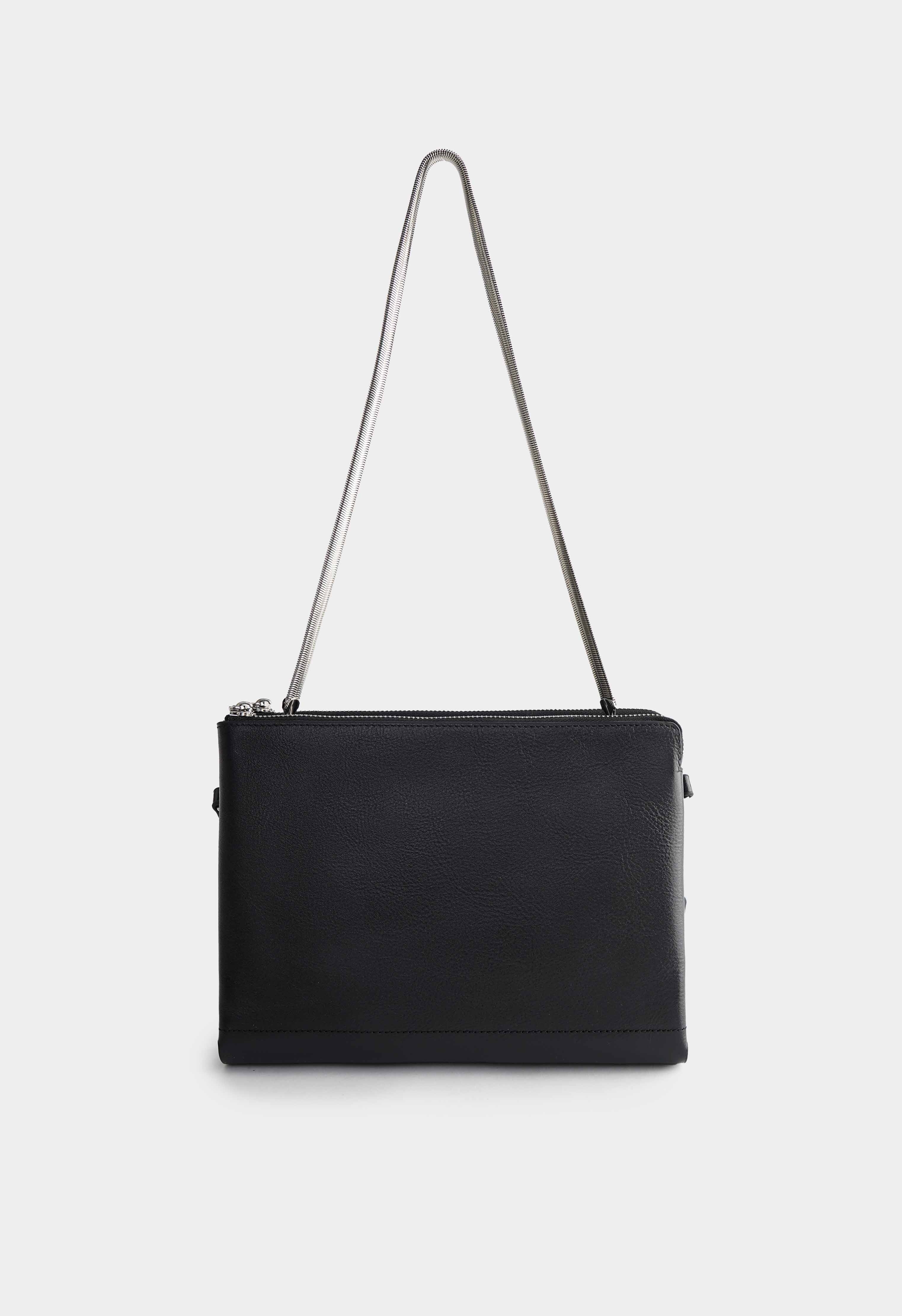 Сумка черного цвета из натуральной кожи – лаконичная и очень универсальная модель, которая выглядит аккуратно и дорого благодаря гладкой фактуре и чистым линиям. Молния надежно закрывает основное отделение, а серебряная фурнитура добавляет сдержанный современный блеск. Внутри предусмотрены два кармана, чтобы удобно разложить мелочи и поддерживать порядок. Плечевой ремень обеспечивает комфортную носку, а съемная ручка-цепочка позволяет быстро сменить настроение образа.