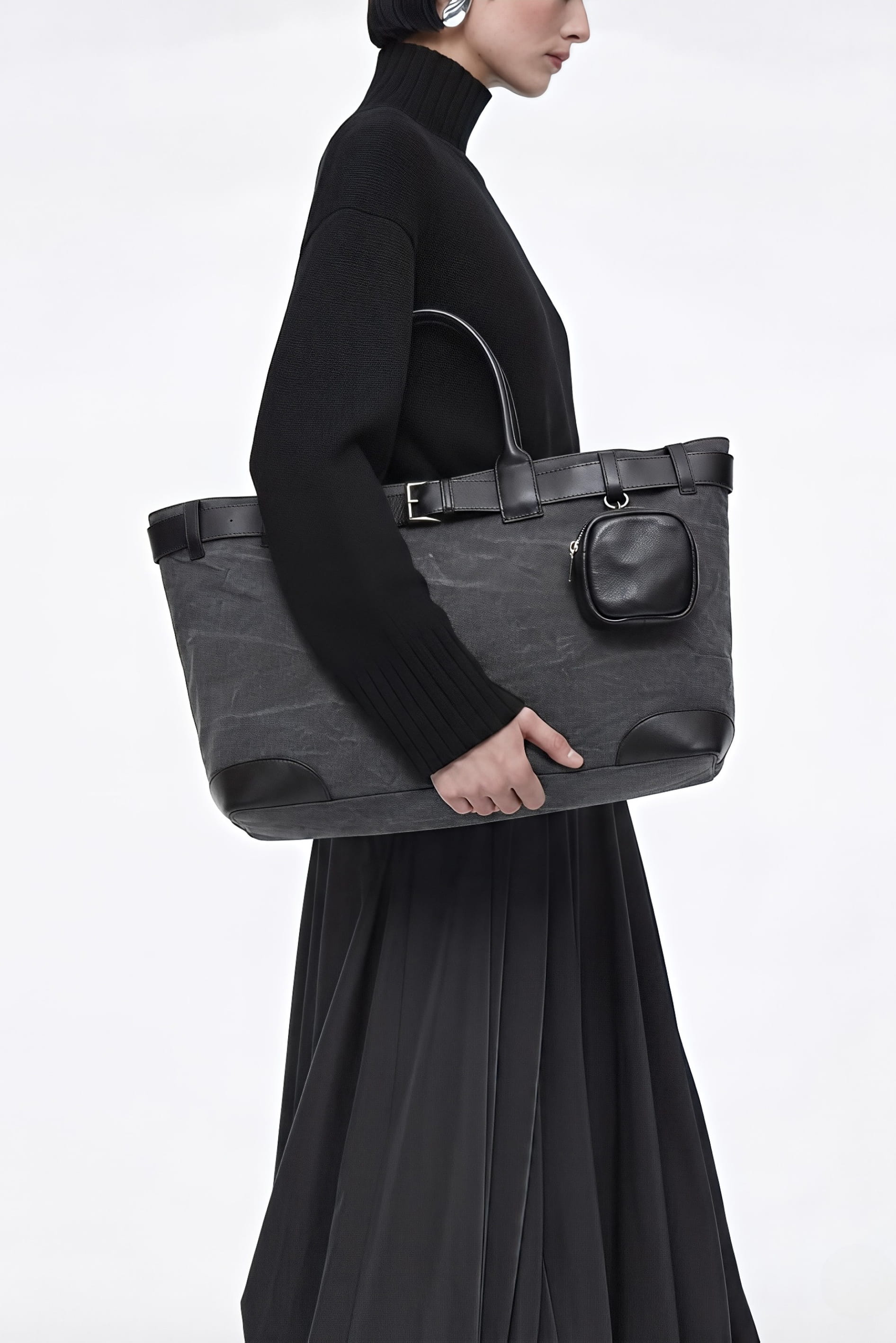 Сумка из прочного текстиля в универсальном сером цвете станет надежным спутником в динамичной городской жизни. Вместительный размер позволяет без труда разместить документы, гаджеты и все необходимые мелочи, а два внутренних кармана помогают поддерживать порядок. Удобный плечевой ремень обеспечивает комфорт при носке, в то время как дополнительная сумочка для ключей на карабине с кожаным ремешком добавляет функциональности и изящной детали. Серебряная фурнитура и декоративный кожаный ремень придают модели стильный акцент, благодаря чему сумка одинаково уместна как в деловом, так и в повседневном образе.