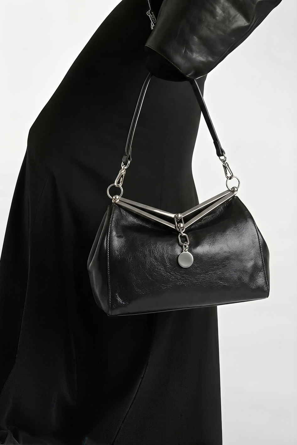 Эта женская сумка из натуральной кожи в элегантном черном цвете станет вашим незаменимым аксессуаром каждый день и на особых событиях. Компактный размер позволяет брать с собой только самое необходимое, а продуманная организация с двумя внутренними карманами помогает легко держать порядок. Стильная пряжка и серебряная фурнитура добавляют изысканности дизайну, а один плечевой ремень и съемная ручка обеспечивают максимальное удобство в носке. Универсальная и лаконичная модель легко сочетается с любым образом, подчеркивая ваш вкус и уверенность в себе.