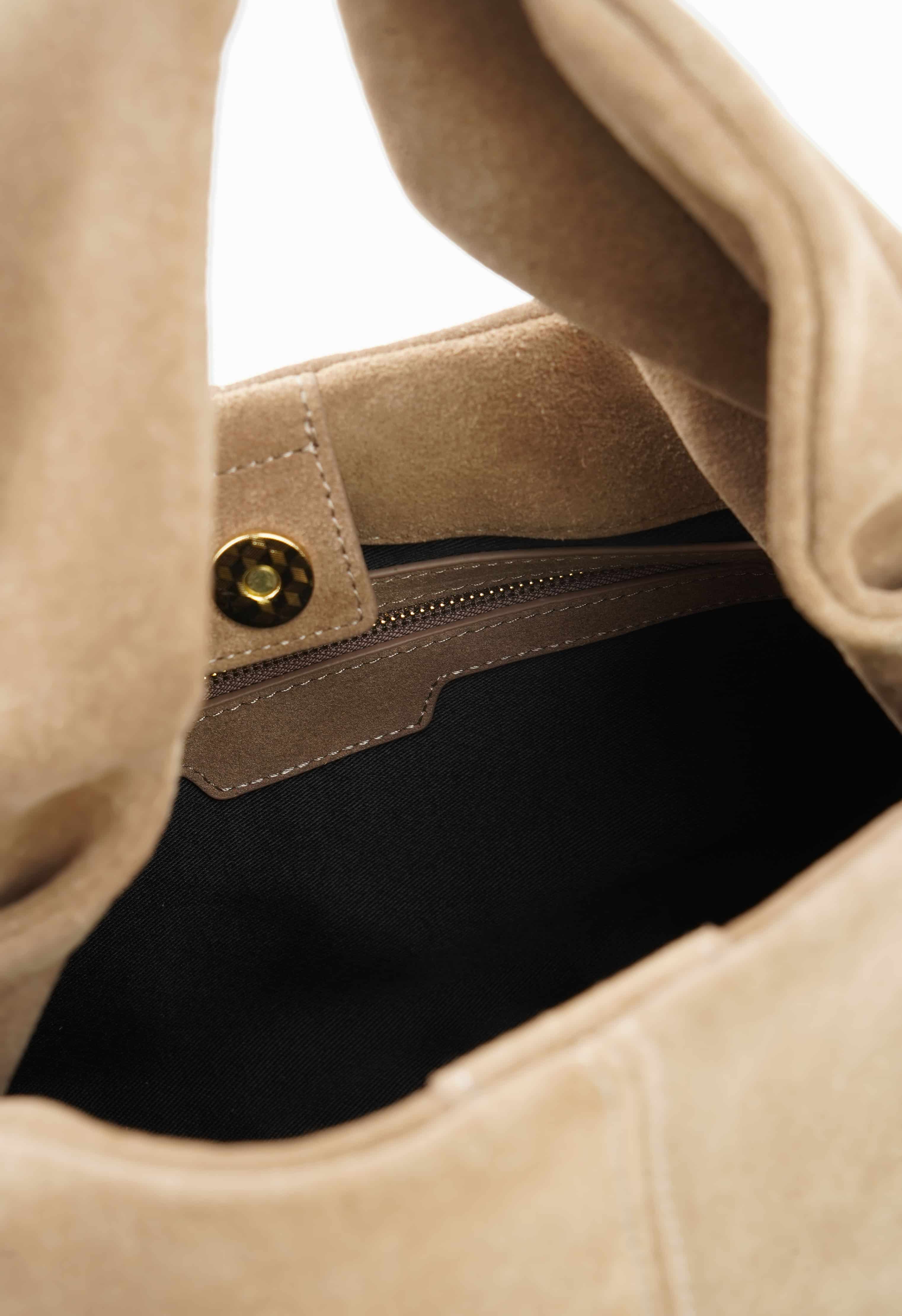 Стильная сумка из натуральной замши в нежных бежевых тонах – идеальное сочетание элегантности и практичности. Компактный размер позволяет брать с собой только самое необходимое, а один внутренний карман помогает держать порядок. Стильная кнопка и золотая фурнитура придают сумке изысканный и современный вид, в то время как плечевой ремень обеспечивает удобство и комфорт в носке. Универсальная и выразительная модель легко вписывается как в повседневные, так и в праздничные образы, добавляя вашему стилю особую нотку утонченности и уверенности.