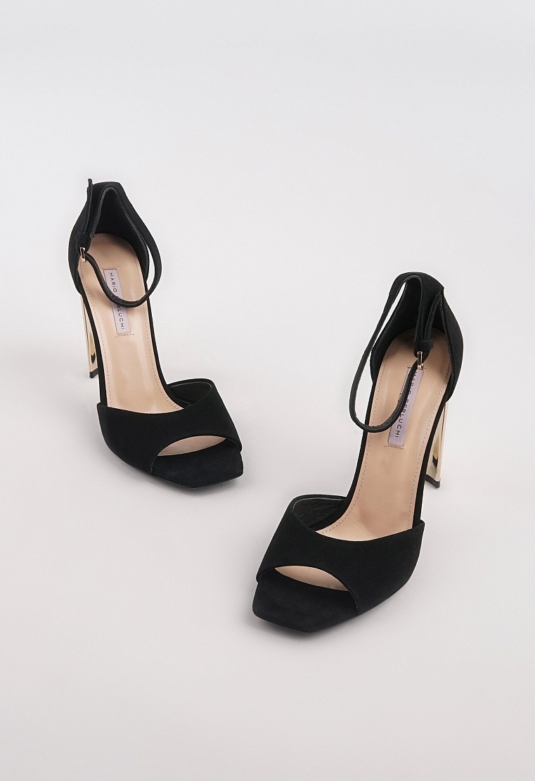 Обратите внимание: данная модель идёт в размер и отлично подходит для ног с узкой и средней полнотой стопы. Советуем проконсультироваться с менеджером по выбору наиболее подходящего Вам размера. Изысканное сочетание золота с черной замшей придает босоножкам богатый и дорогой вид, который переносится на создаваемый образ, подчеркивая его шик, статусность, респектабельность и солидность. Элегантная модель – идеальный выбор к длинным вечерним платьям, дополненным золотыми украшениями – внимание окружающих гарантировано.