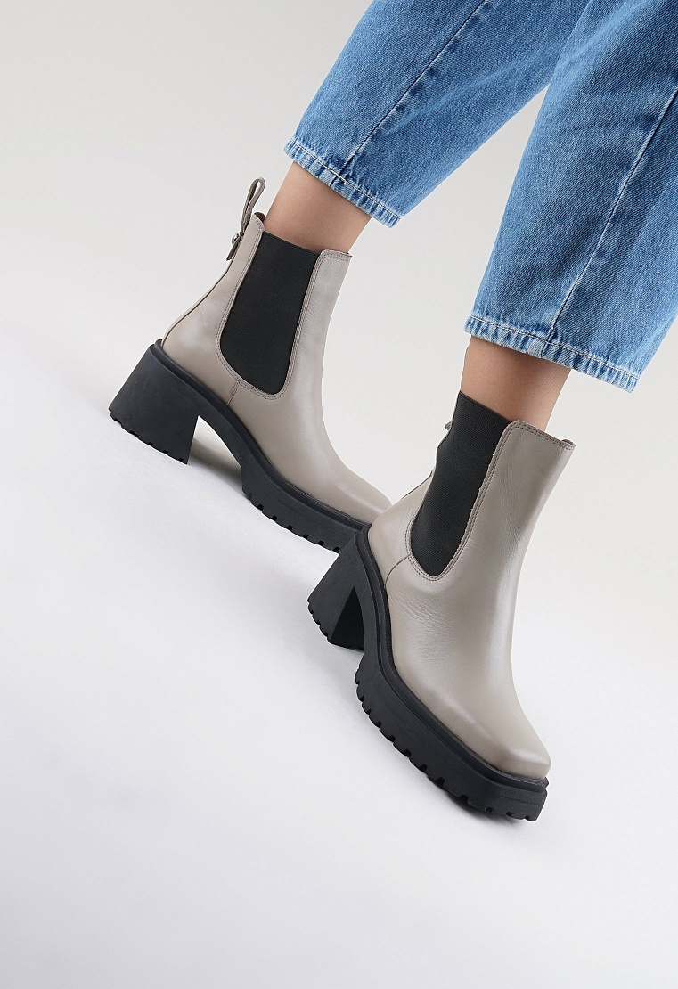 Обратите внимание: данная модель идёт в размер и отлично подходит для ног со средней полнотой стопы. Высокие ботильоны из новой коллекции выполнены из натуральной мягкой кожи и представлены в сером цвете. Эластичные вставки обеспечивают особенно комфортную посадку, анатомическая стелька из байки в точности повторяет контур стопы. Современный силуэт превосходно сочетается как с повседневными брюками, так и с яркими платьями из базового гардероба.