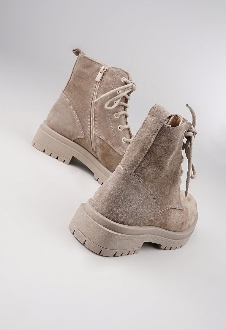 Обратите внимание: данная модель идёт в размер и отлично подходит для ног со средней полнотой стопы. Советуем проконсультироваться с менеджером по выбору наиболее подходящего Вам размера. Высокие ботинки из новой коллекции выполнены из натуральной замши и представлены в бежевом цвете. Классический силуэт дополнен застёжкой в виде молнии и шнуровкой в тон. Мягкая подкладка из байки гарантирует комфорт в любую погоду. Модель в актуальном оттенке идеально впишется в модный гардероб и поможет оставаться в тренде не один сезон.
