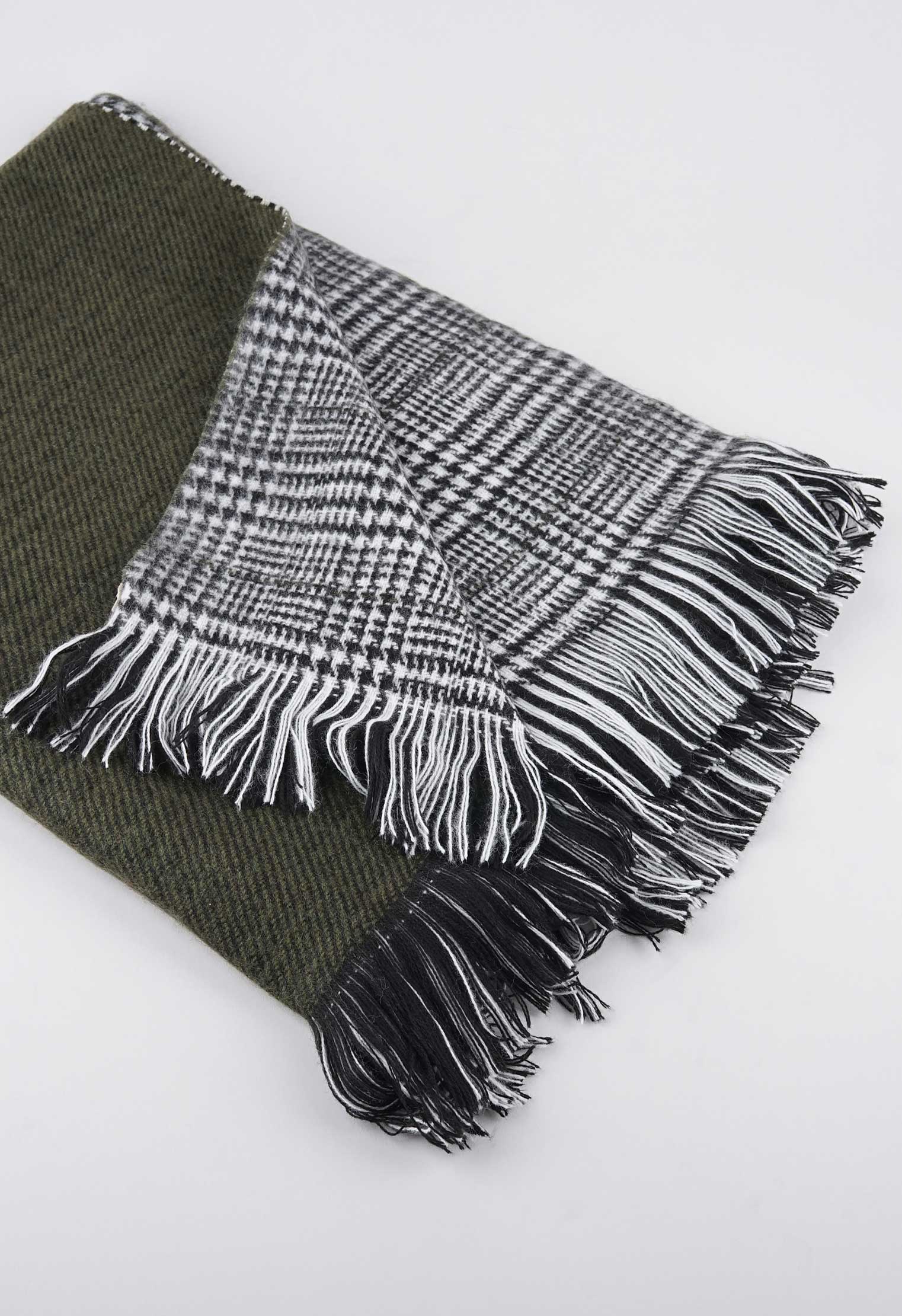 Стильный палантин изготовлен из утеплённой ткани, в составе которой натуральная шерсть и нити вискозы. Изделие декорировано классической чёрно-белой клеткой и бахромой. Модель удобно носить как в качестве шарфа, так и головного убора. Современный дизайн удачно сочетается с модными нарядами в повседневном стиле и останется актуальным не один сезон.