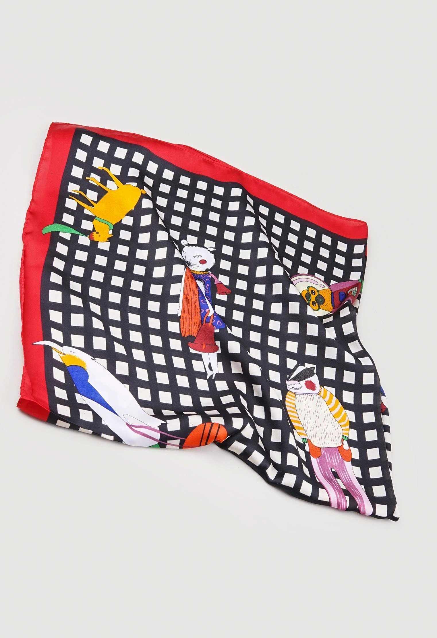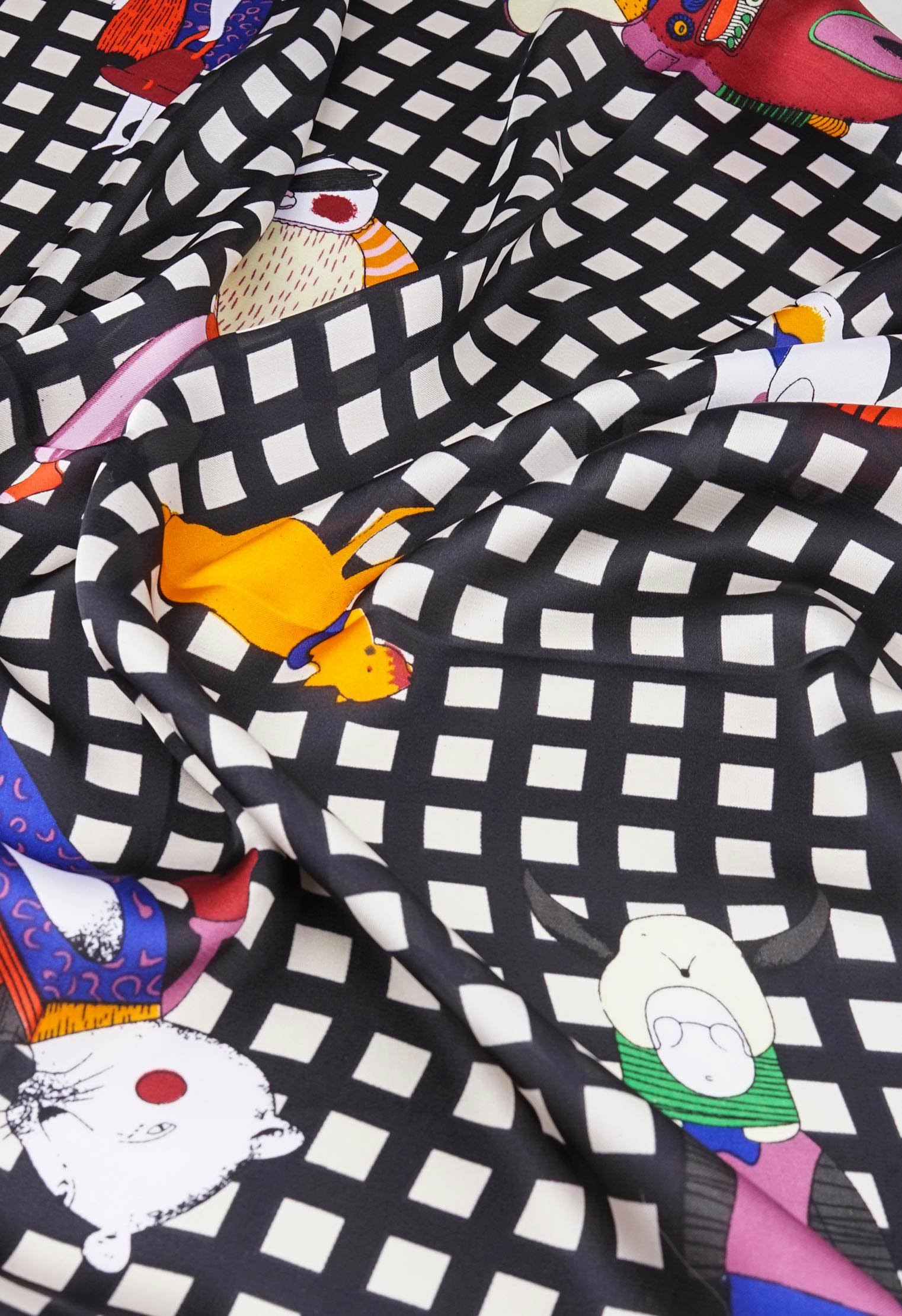 Квадратный платок изготовлен из мягкой ткани и декорирован контрастным геометричным принтом. Изделие выполнено из нитей шёлка и вискозы, что делает его лёгким, прочным и приятным на ощупь. Эффектный аксессуар из новой коллекции станет идеальным дополнением к повседневному гардеробу в городском стиле и никогда не выйдет из моды.