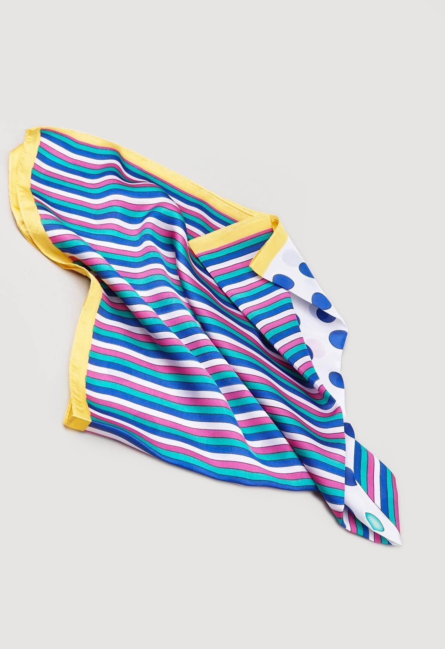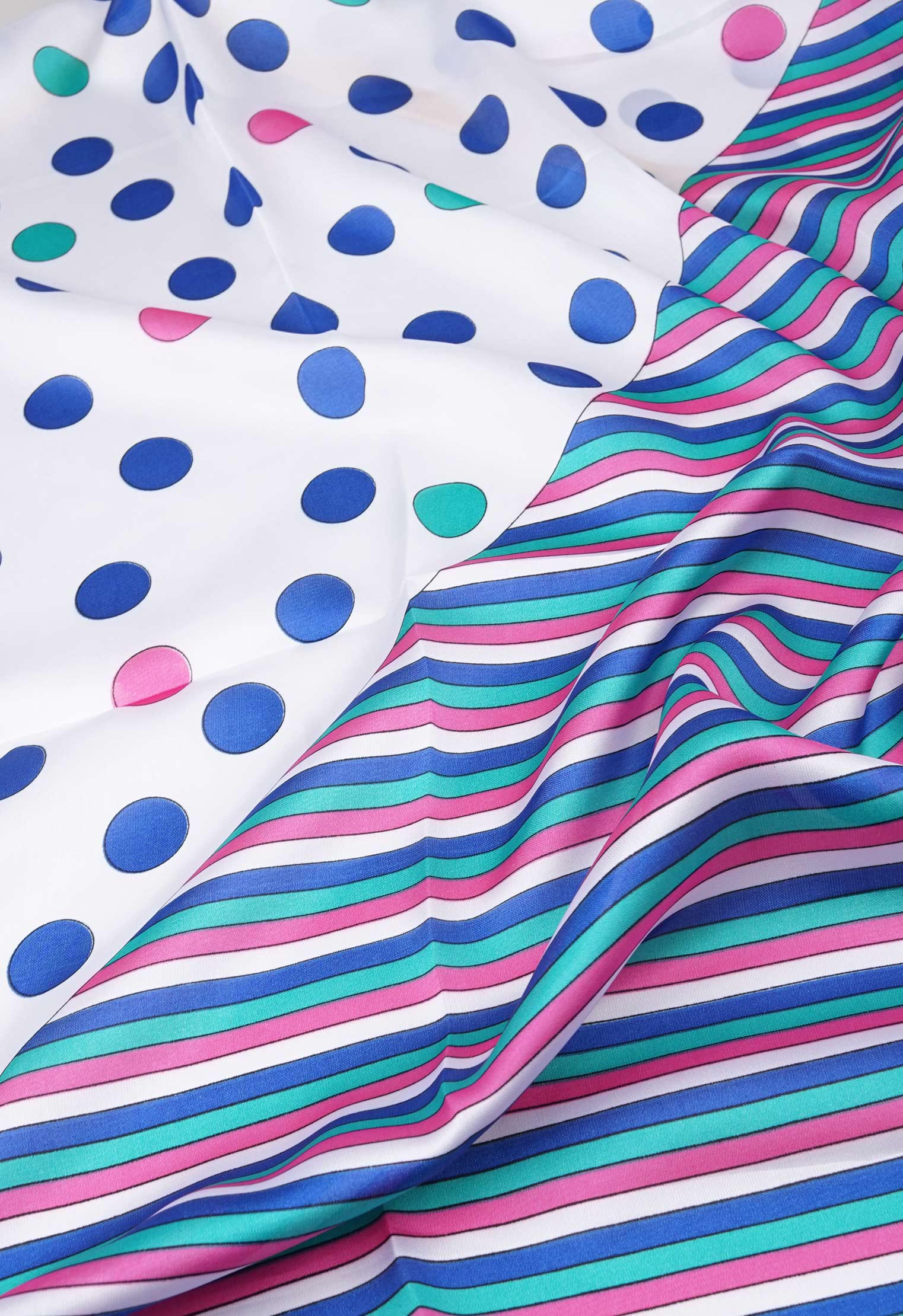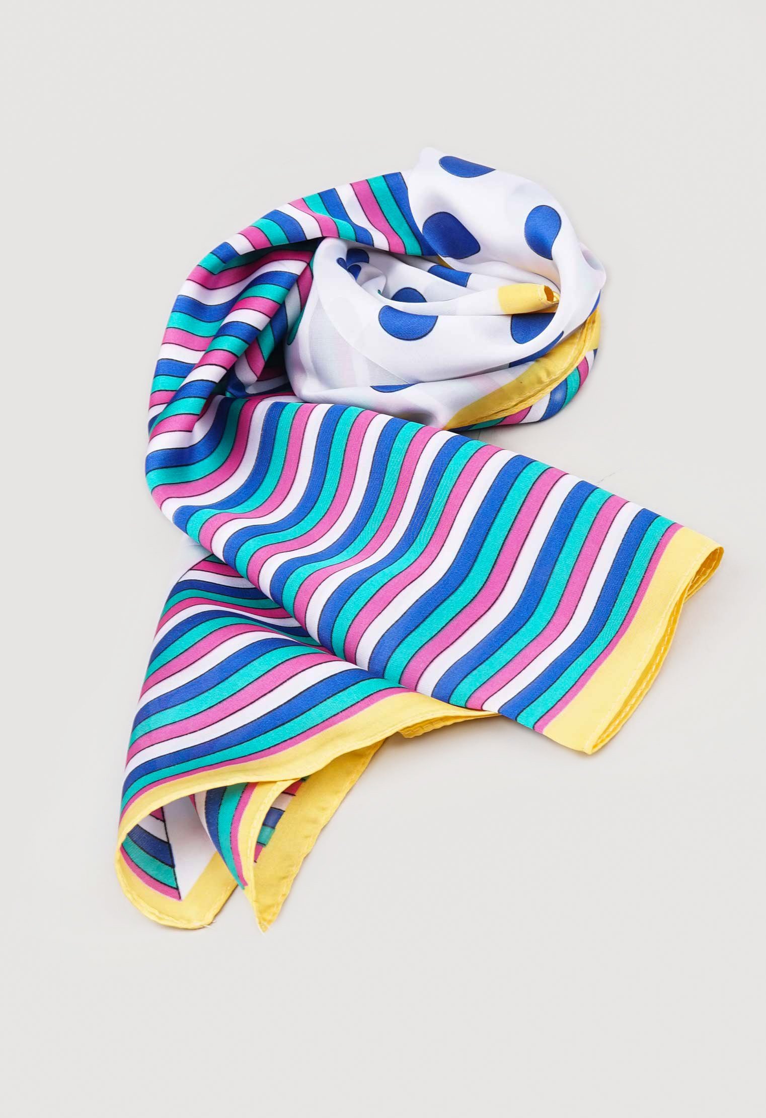 Платок из новой коллекции изготовлен из мягкой ткани и декорирован геометричным принтом. Нити шёлка придают изделию прочность, вискоза обеспечивает особенный комфорт. Актуальный аксессуар удачно сочетается с классическими и современными нарядами на каждый день. Трендовый дизайн станет украшением летнего образа и никогда не выйдет из моды.