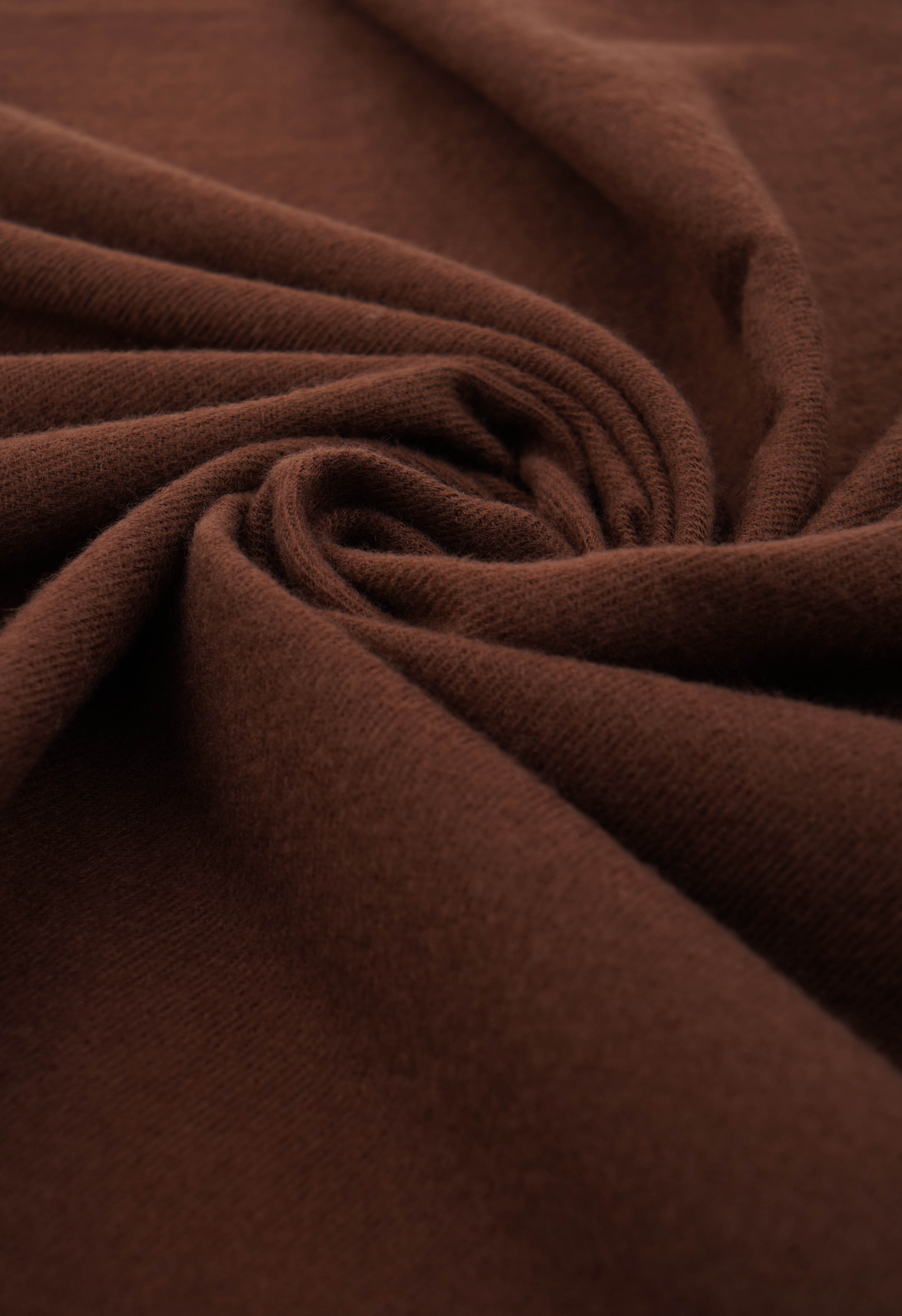 Шоколадный коричневый платок из кашемира – идеальная база для стильных образов в прохладный сезон: невероятно мягкий, теплый и нежный к коже, он красиво драпируется и добавляет ощущение уюта и стильного минимализма. Универсальный оттенок легко сочетается с абсолютно разными образами, а аккуратная бахрома придает образу завершенность.