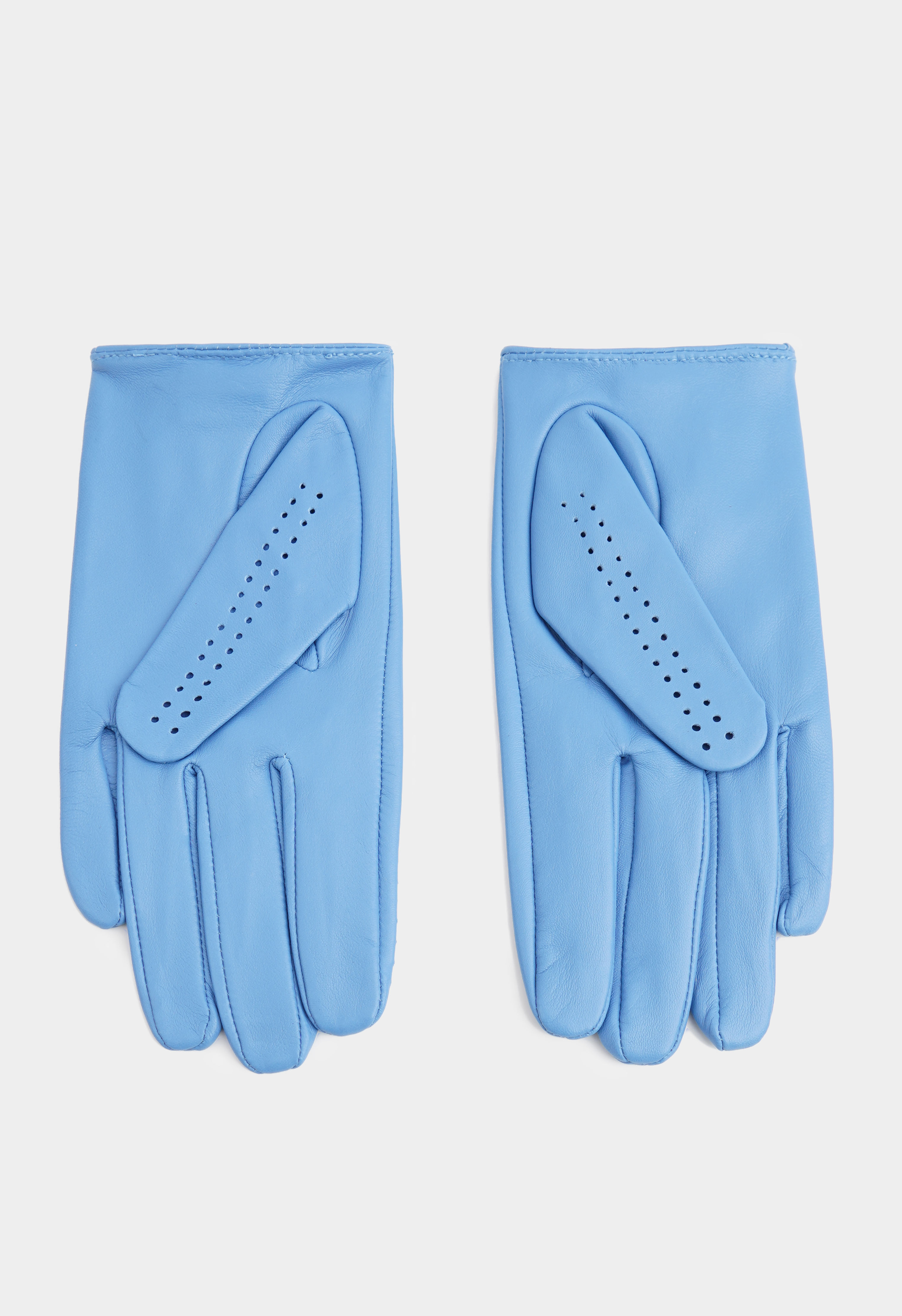 Голубые перчатки из натуральной кожи – стильный акцент, который мгновенно освежает любой образ и добавляет ему аккуратности. Мягкая кожа приятно ложится по руке, а перфорация обеспечивает комфорт и легкость в носке. Удобная кнопка на запястье фиксирует посадку и подчеркивает изящный силуэт, чтобы перчатки сидели идеально. Отличный выбор для тех, кто любит практичные, элегантные и по-настоящему заметные детали.