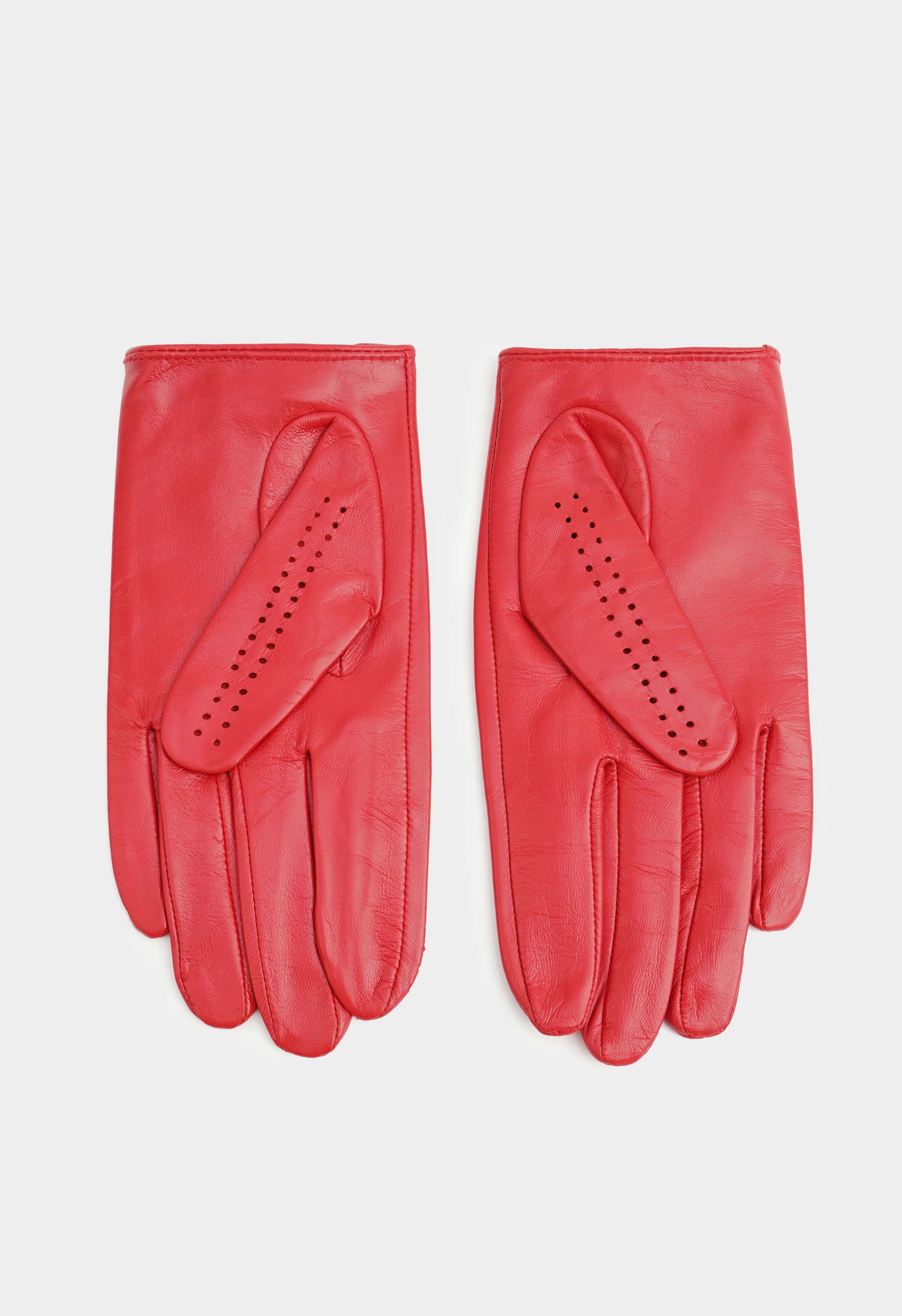 Красные перчатки из натуральной кожи – стильный акцент, который мгновенно освежает любой образ и добавляет ему аккуратности. Мягкая кожа приятно ложится по руке, а перфорация обеспечивает комфорт и легкость в носке. Удобная кнопка на запястье фиксирует посадку и подчеркивает изящный силуэт, чтобы перчатки сидели идеально. Отличный выбор для тех, кто любит практичные, элегантные и по-настоящему заметные детали.