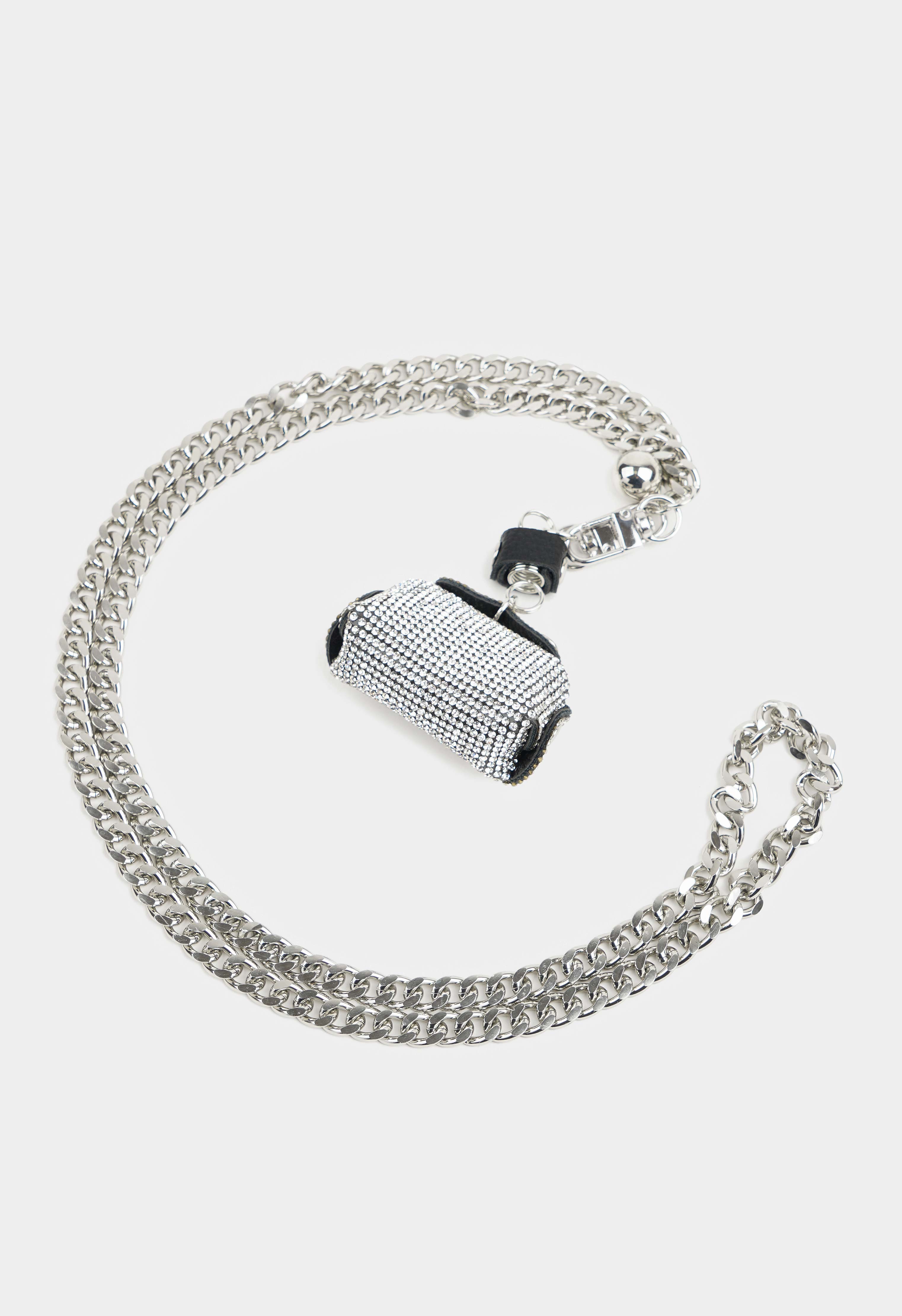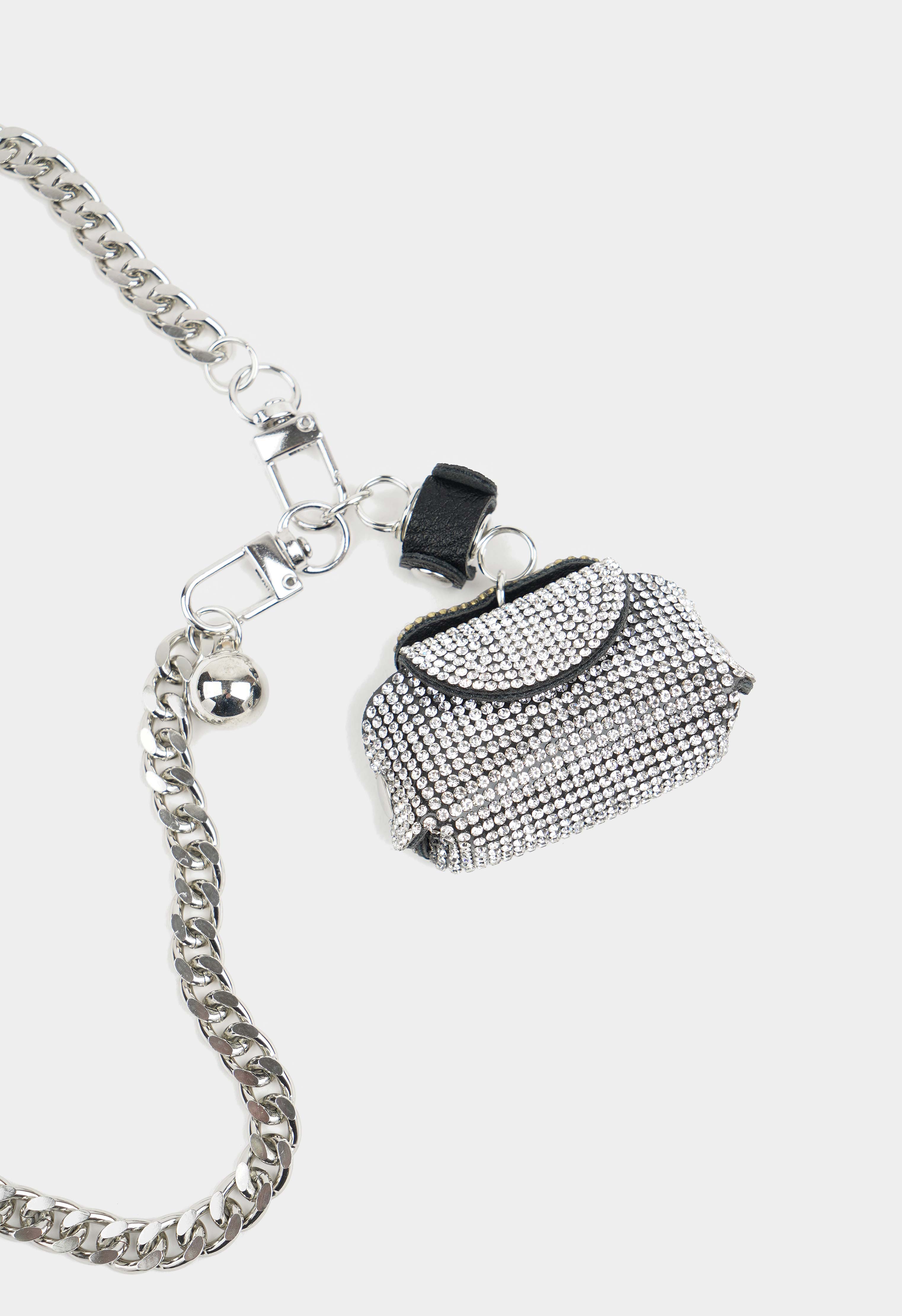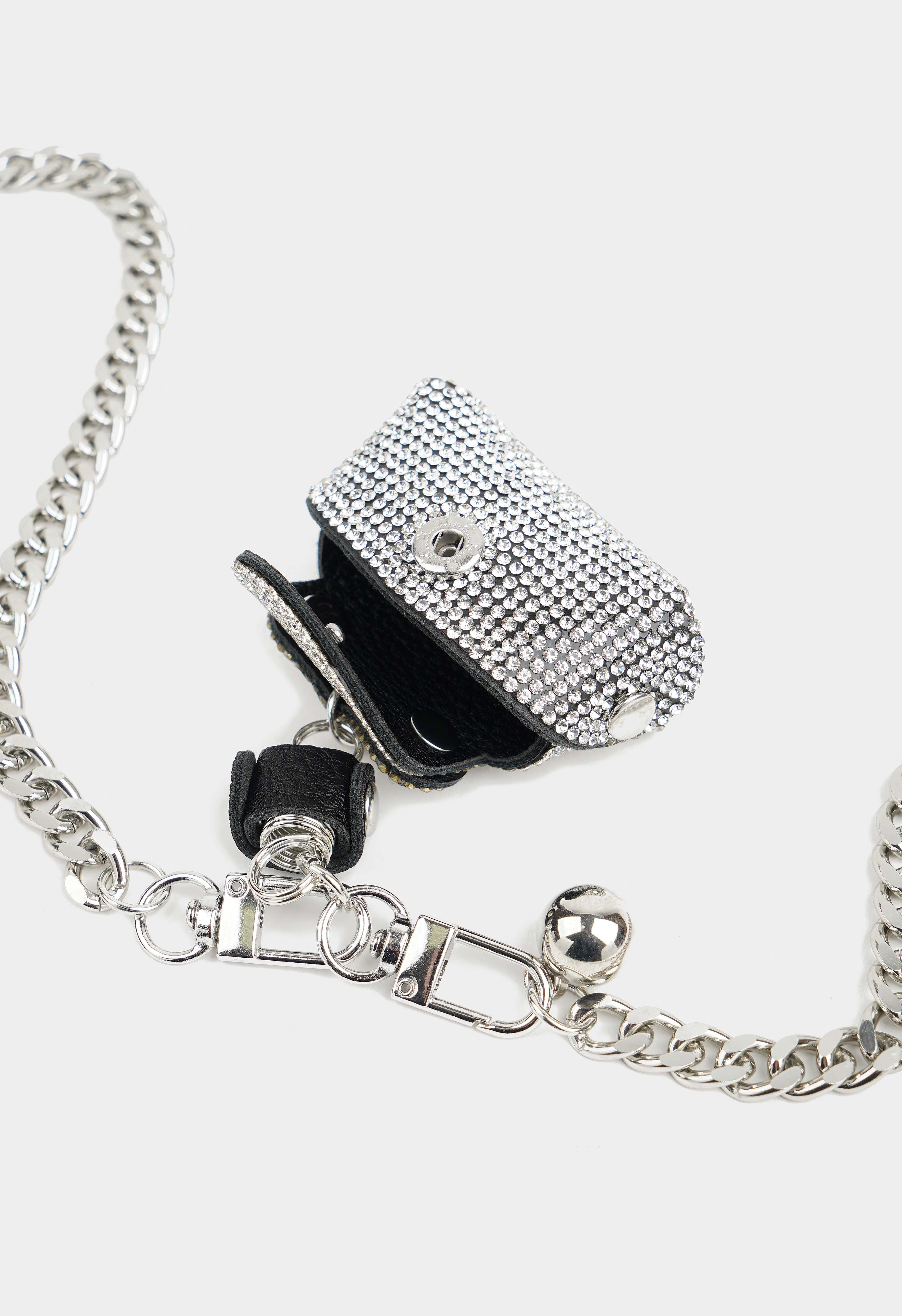 Брелок выполнен из натуральной кожи. Модель дополняют серебряные стразы, удобная застежка на кнопку и серебряная фурнитура.