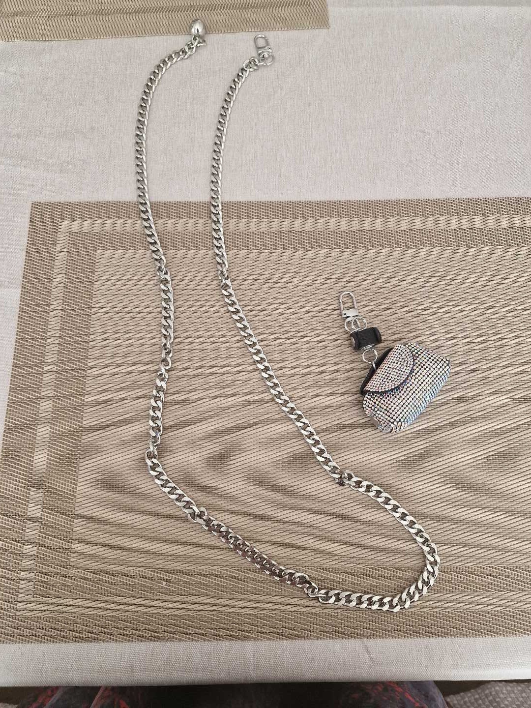 Прелестный брелок и цепочка, можно разные варианты пробовать. Цепочку использовать как ремень, сам кошелёк чудо, как хорош, думаю все подарю внучке.