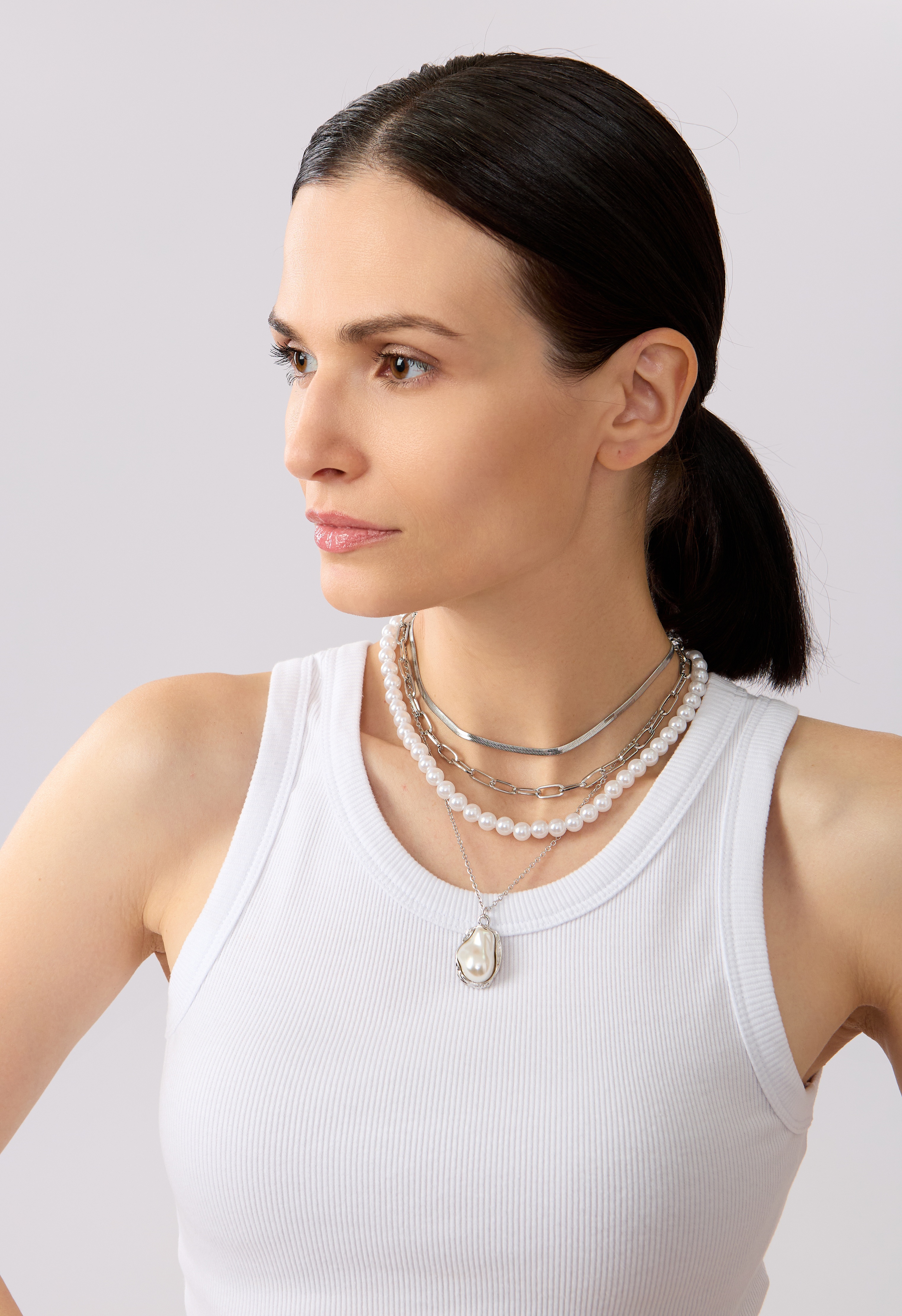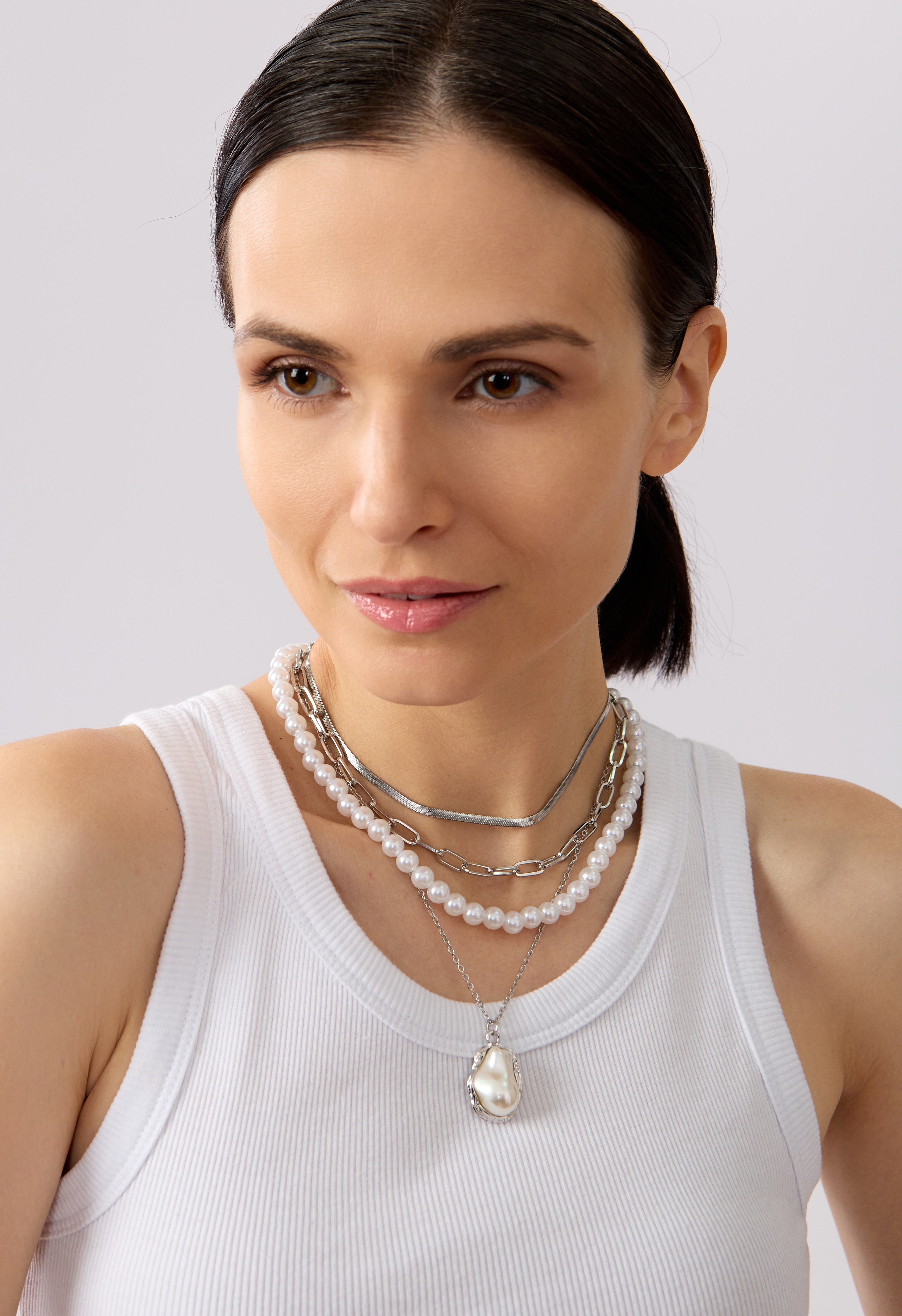 Трендовое ожерелье из ювелирного сплава серебряного и перламутрового оттенков с застежками карабин и тогл – это универсальный аксессуар 3 в 1: маленькая изящная цепочка, более широкая для смелых образов и кулончик, который станет изюминкой вашего стиля. Такое украшение легко адаптируется к любому наряду, добавляя утонченности и современный акцент как в повседневных, так и в вечерних образах.