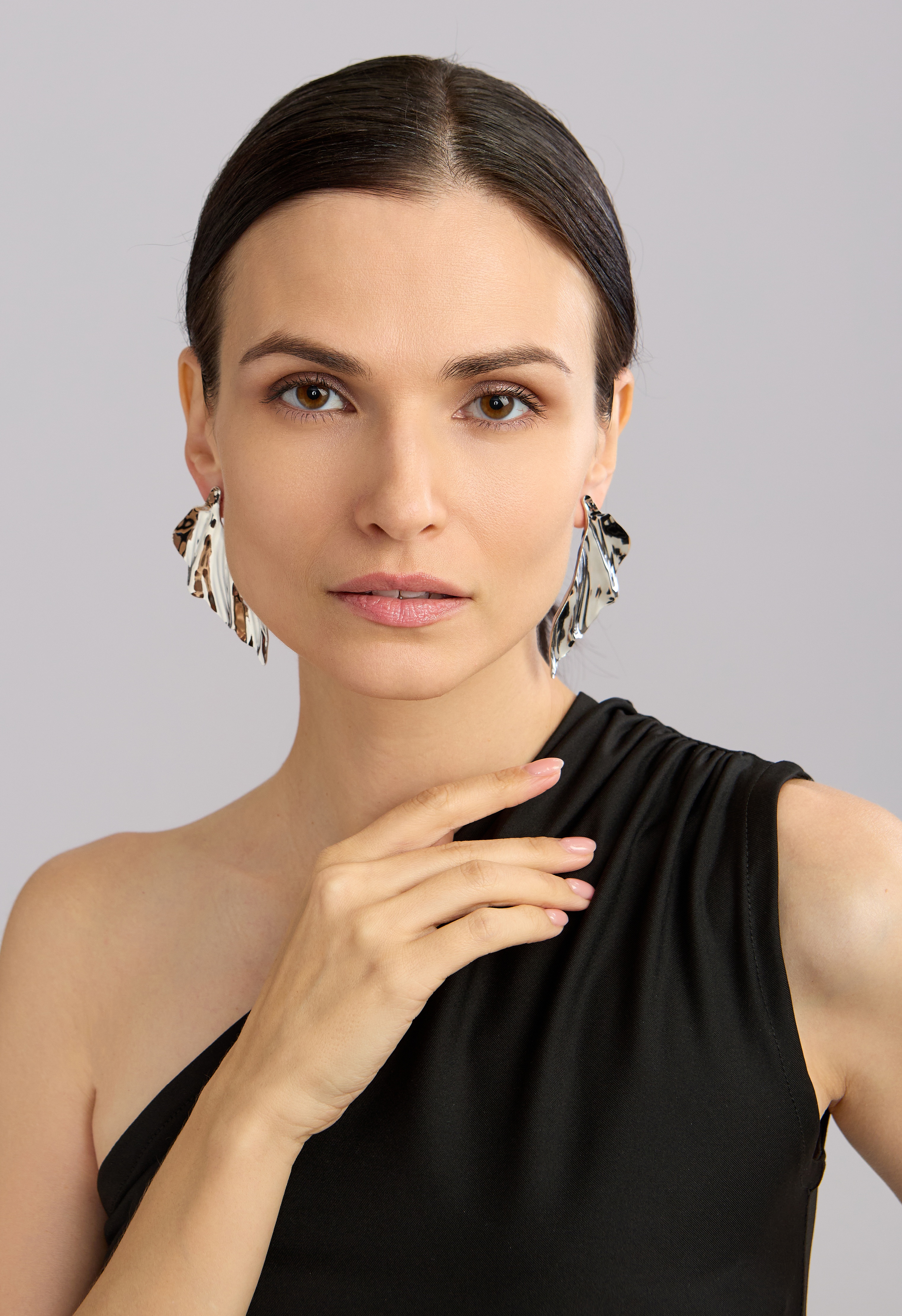 элегантные серьги с современным дизайном, качество отличное: гладкий сплав, ровное покрытие, надёжная