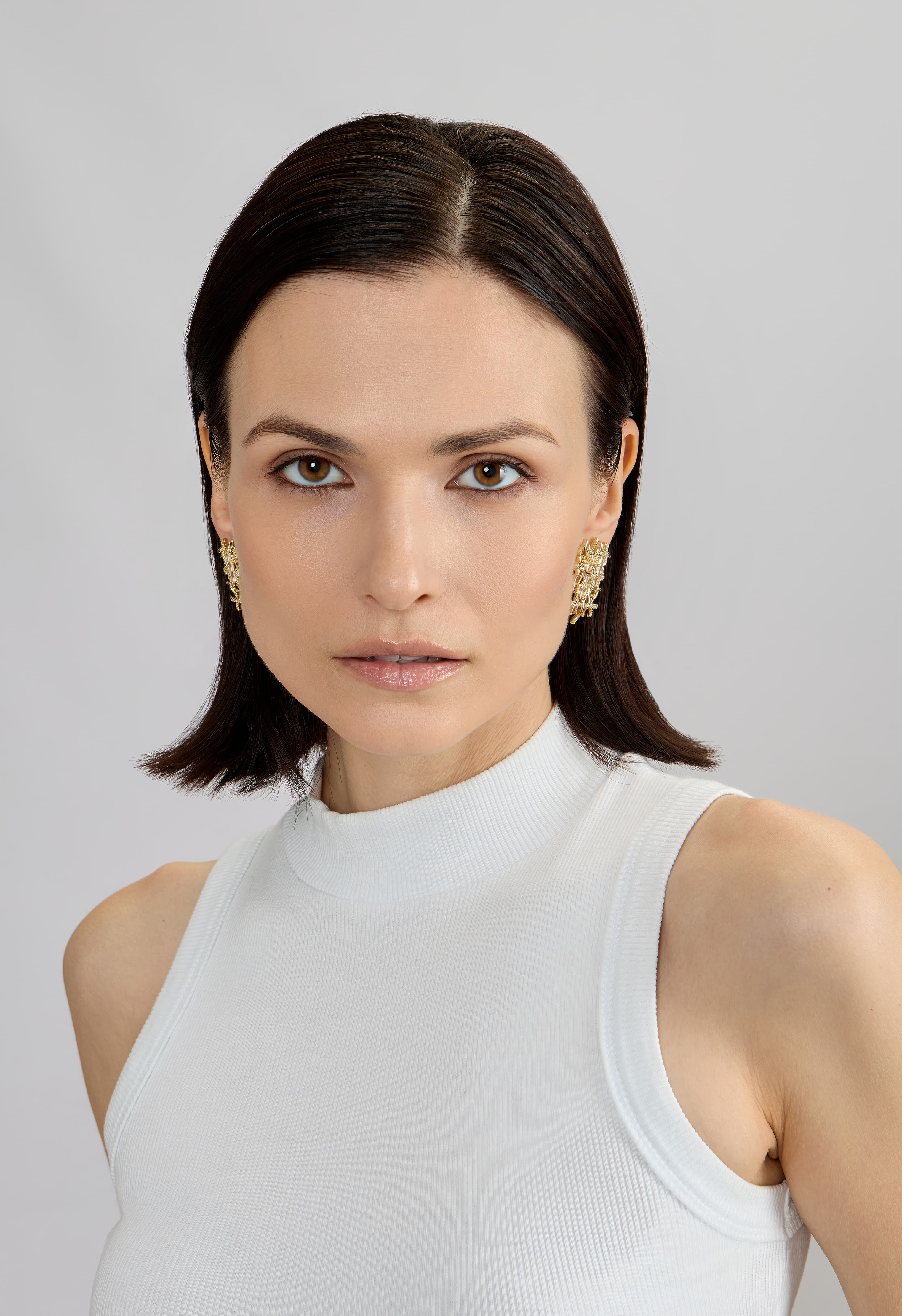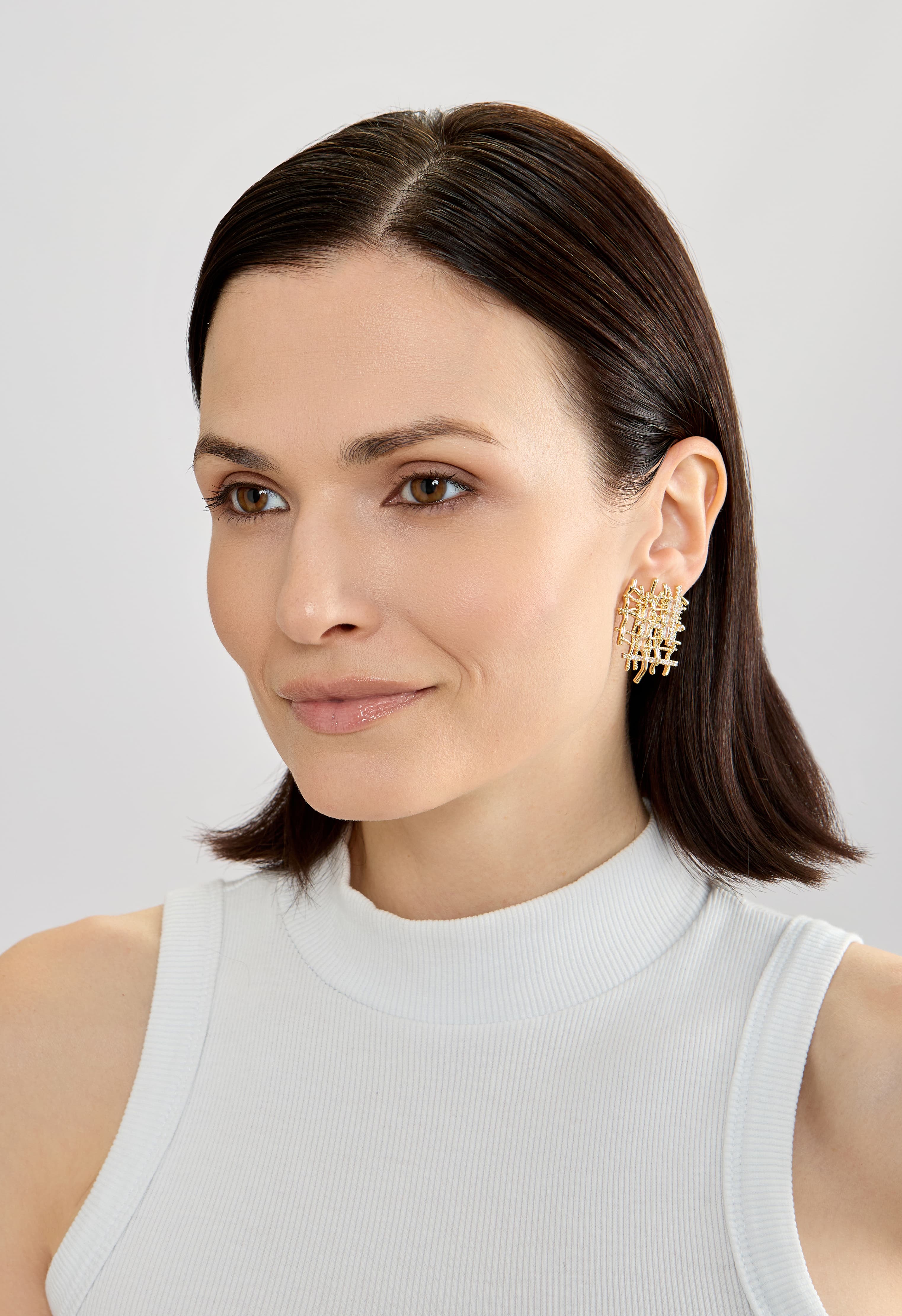 Современные серьги из ювелирного сплава золотистого цвета со сверкающими стразами – это идеальное сочетание изящества и блеска, которое добавит яркий акцент вашему образу. Лаконичный дизайн с удобной застежкой на пусете подчеркнет вашу индивидуальность и вкус. Эти серьги станут универсальным украшением для любого случая, даря ощущение уверенности и легкости в каждом движении.
