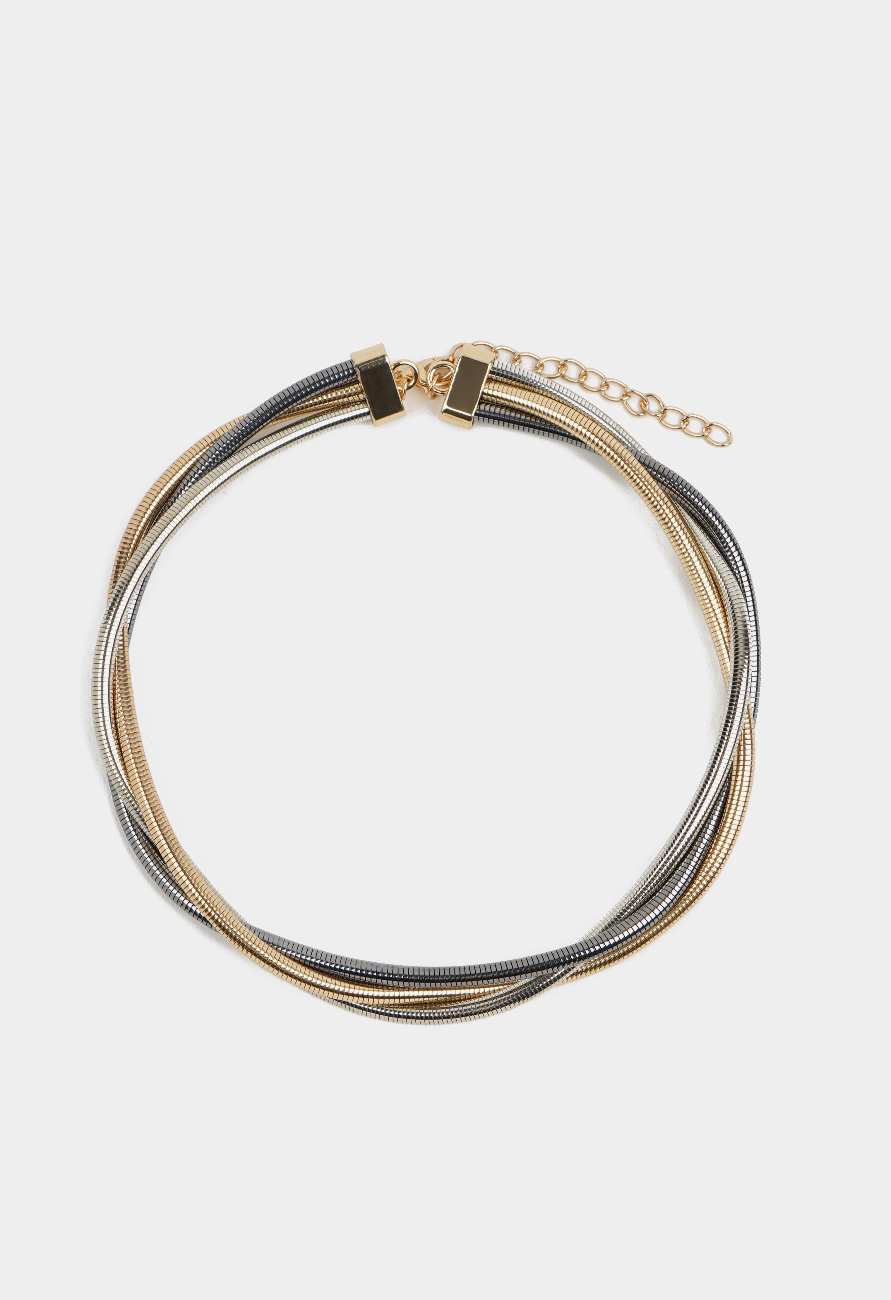 Ожерелье из ювелирного сплава с застёжкой на карабине сочетает в себе три цвета: золотой, серебряный и чёрный. Украшение идеально подходит для вечерних мероприятий, торжественных случаев и для повседневной носки. Оно прекрасно подчёркивает красоту шеи и зоны декольте.