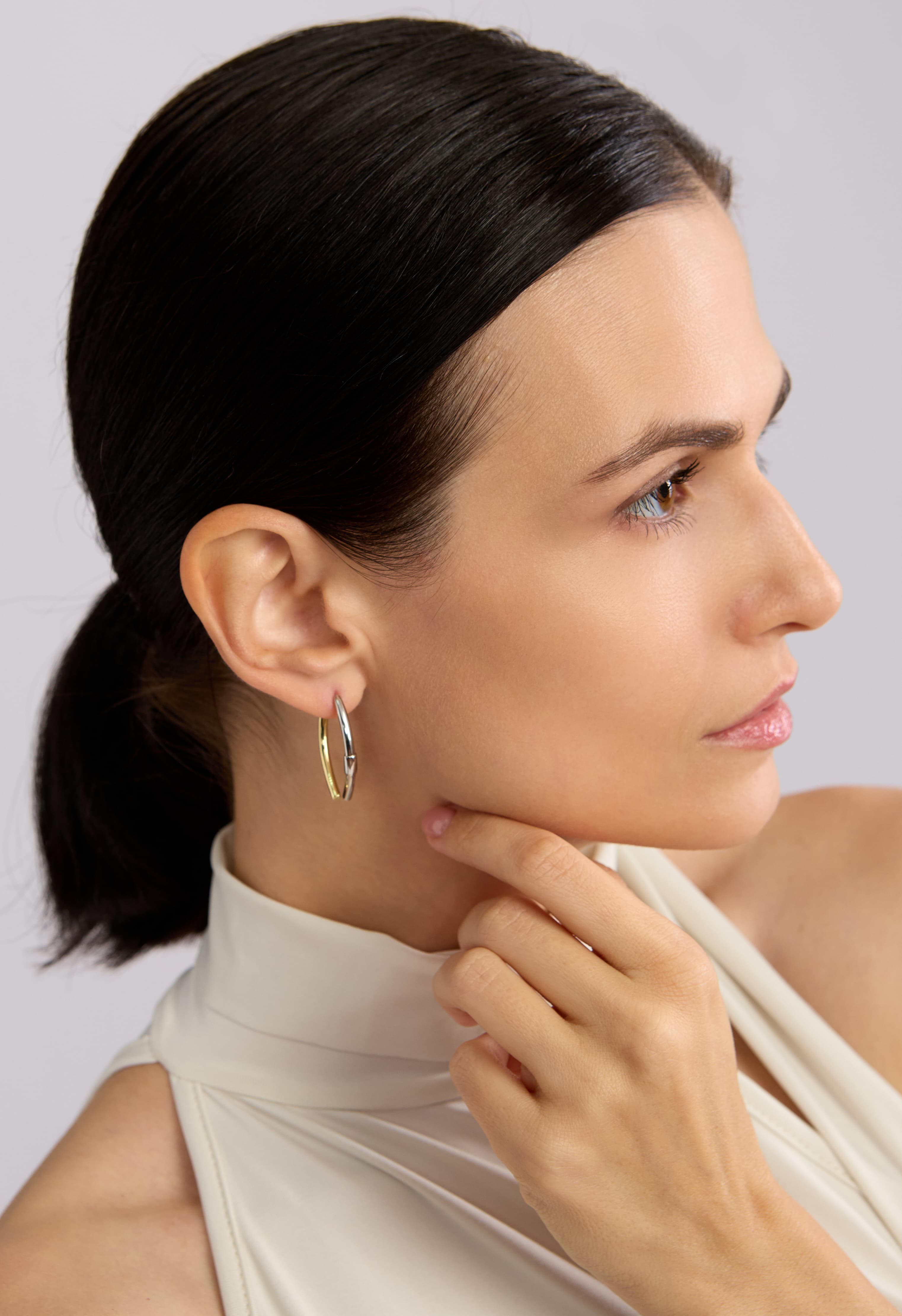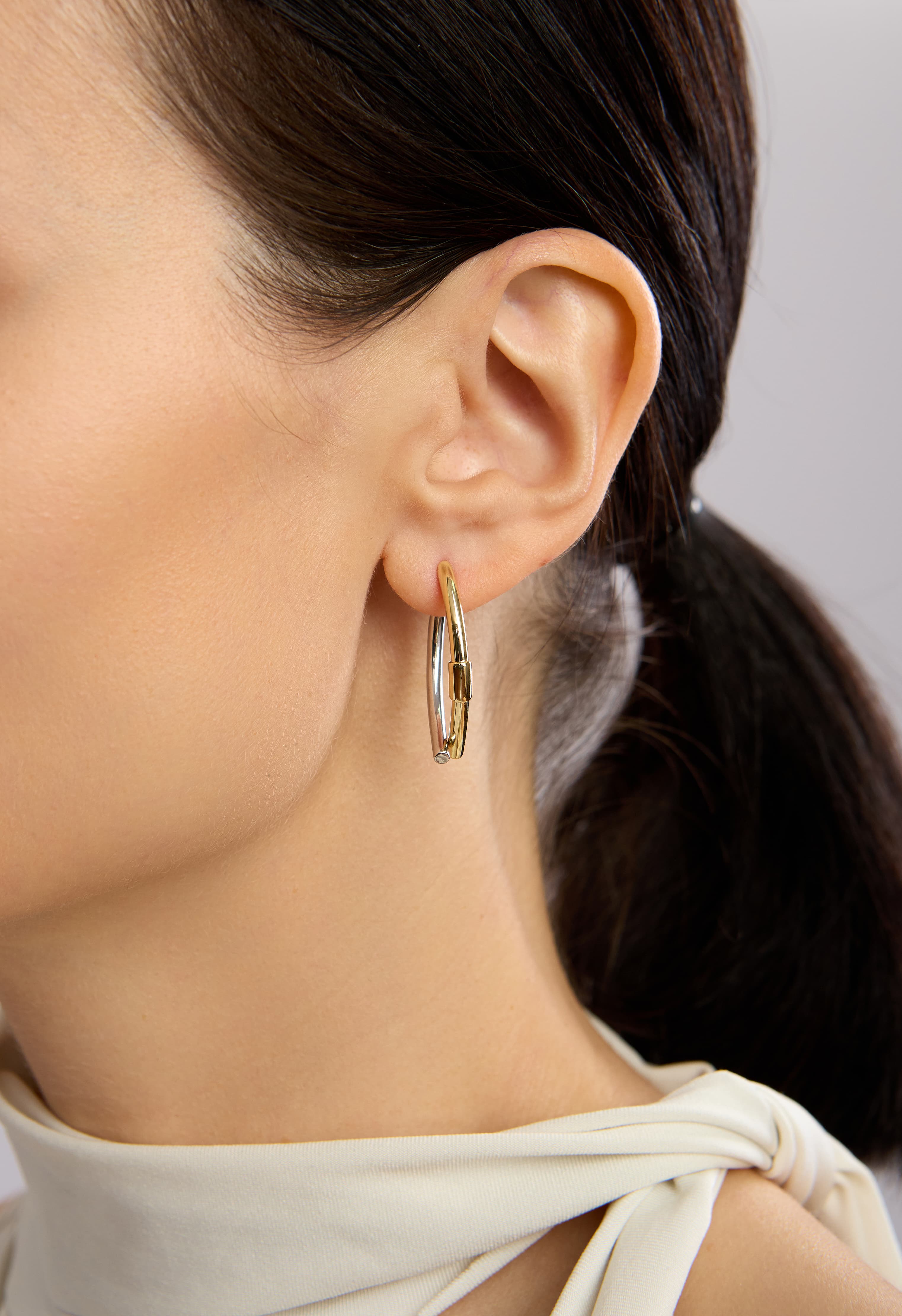 Стильные серьги из ювелирного сплава с сочетанием серебряного и золотого оттенков и застежкой на пусете – элегантное украшение, которое привносит изысканность и сияние в любой образ. Аксессуар изысканно подчеркивает лицо, добавляя блеска и элегантности любому наряду.