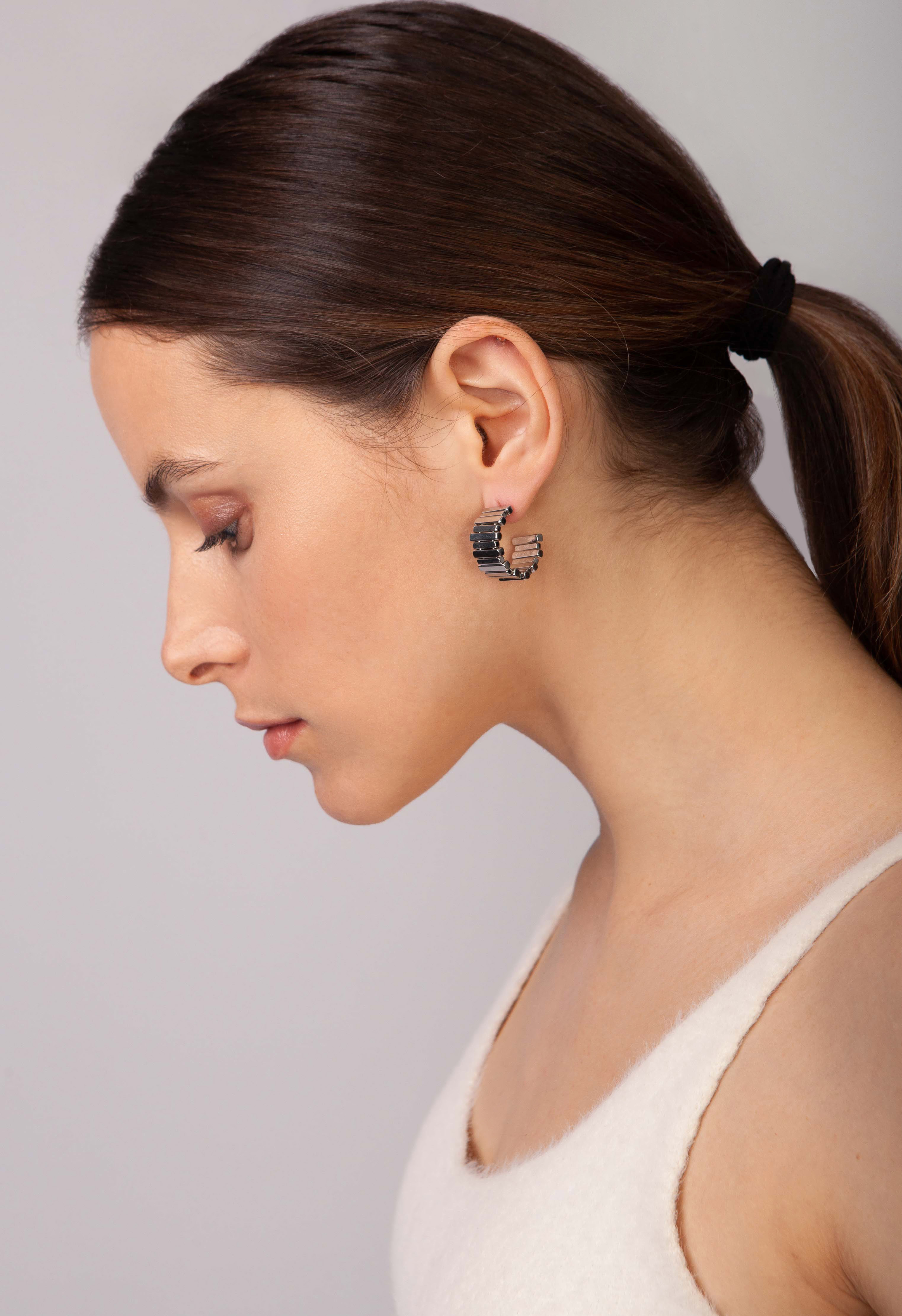 Современные серебряные серьги из ювелирного сплава, выполненные в оригинальном дизайне, придают образу сдержанную элегантность и универсально сочетаются с повседневной или вечерней одеждой. Удобная застежка на пусете надежно фиксирует украшение, позволяя носить его без дискомфорта в течение всего дня. Их мягкое сияние подчеркивает черты лица и добавляет образу трендовую нотку.