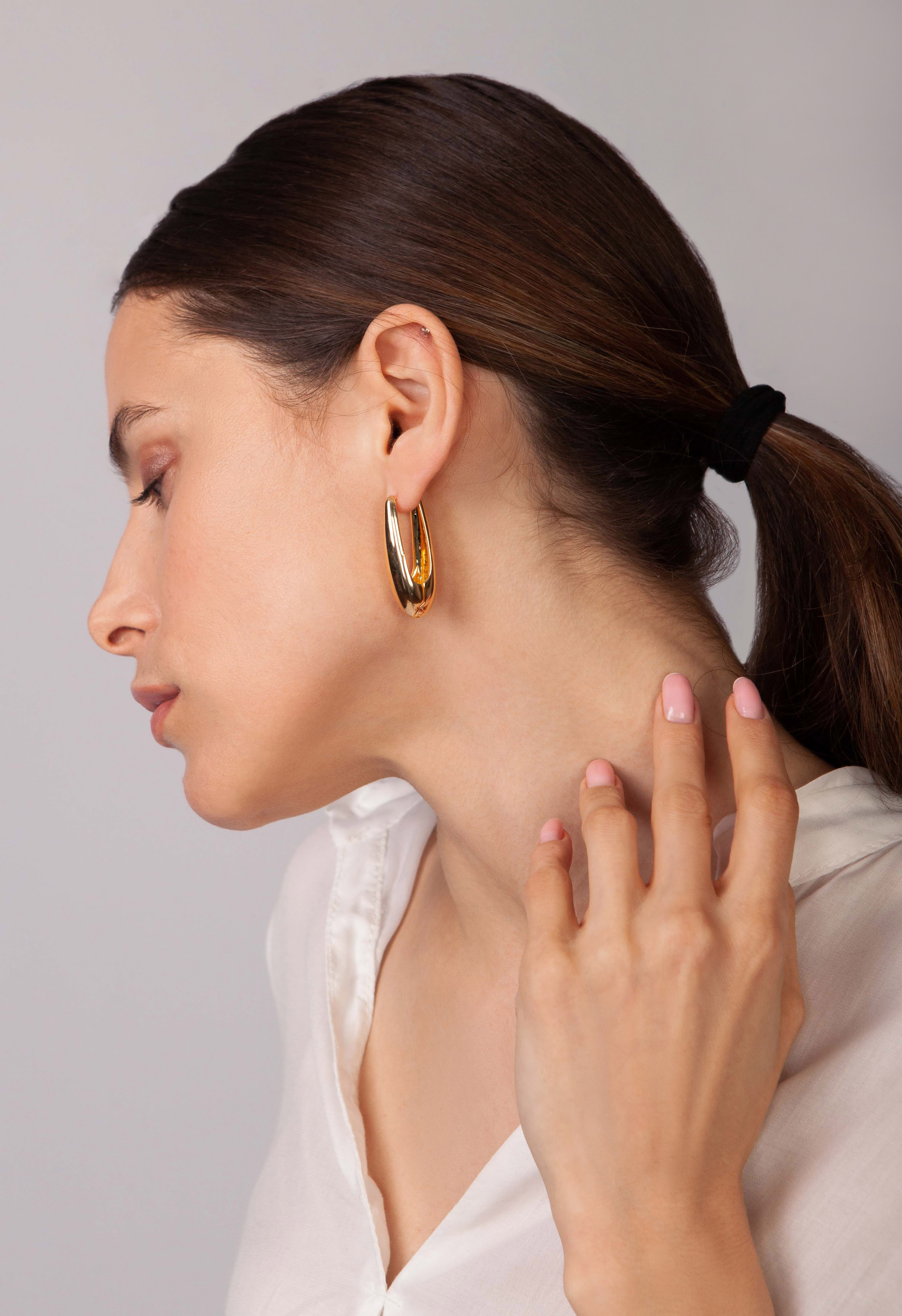 Минималистичные золотые серьги из ювелирного сплава совмещают комфорт и элегантность, легко вписываясь в любой гардероб. Их нежный блеск гармонирует с любыми образами. Застежка на клипсе позволяет носить украшение без проколов, упрощая смену образа в зависимости от настроения или события.