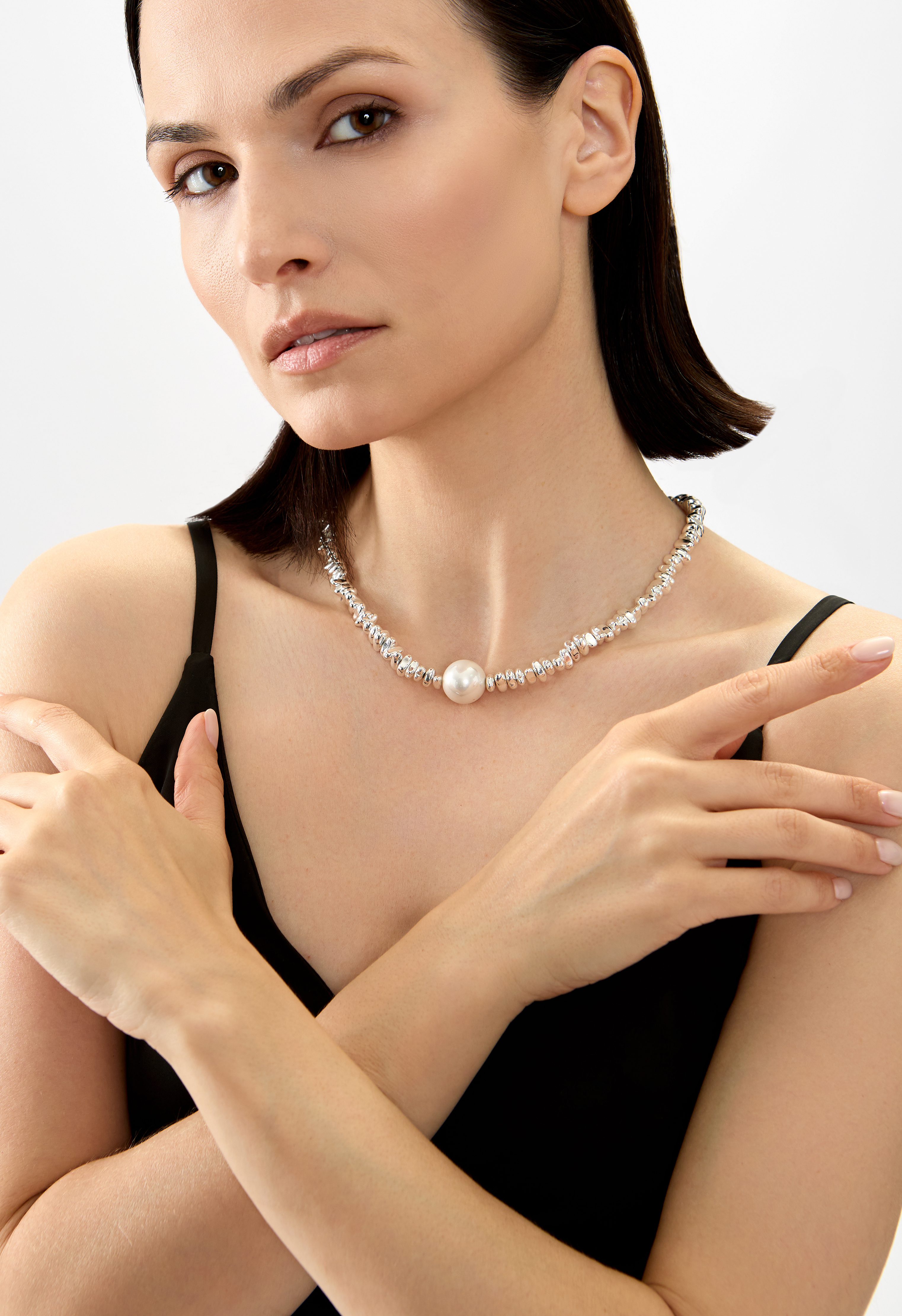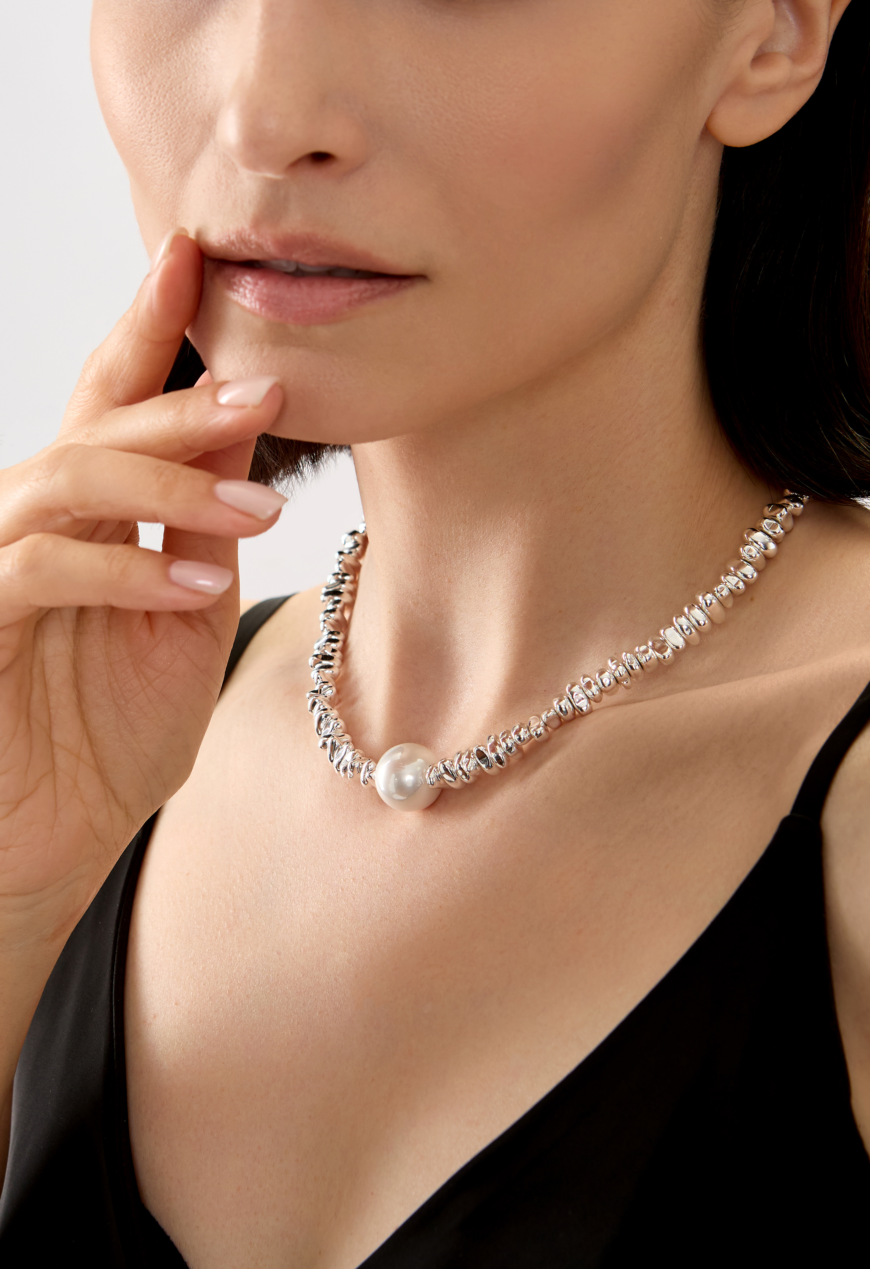 Погрузитесь в атмосферу утонченной элегантности с этим ожерельем из ювелирного сплава серебристого цвета, украшенным нежными перламутровыми акцентами и надежной застежкой-карабином. Идеальное сочетание холодного металлического блеска и мягкого перламутрового сияния придает образу свежесть и женственность, подчеркивая вашу уникальность.