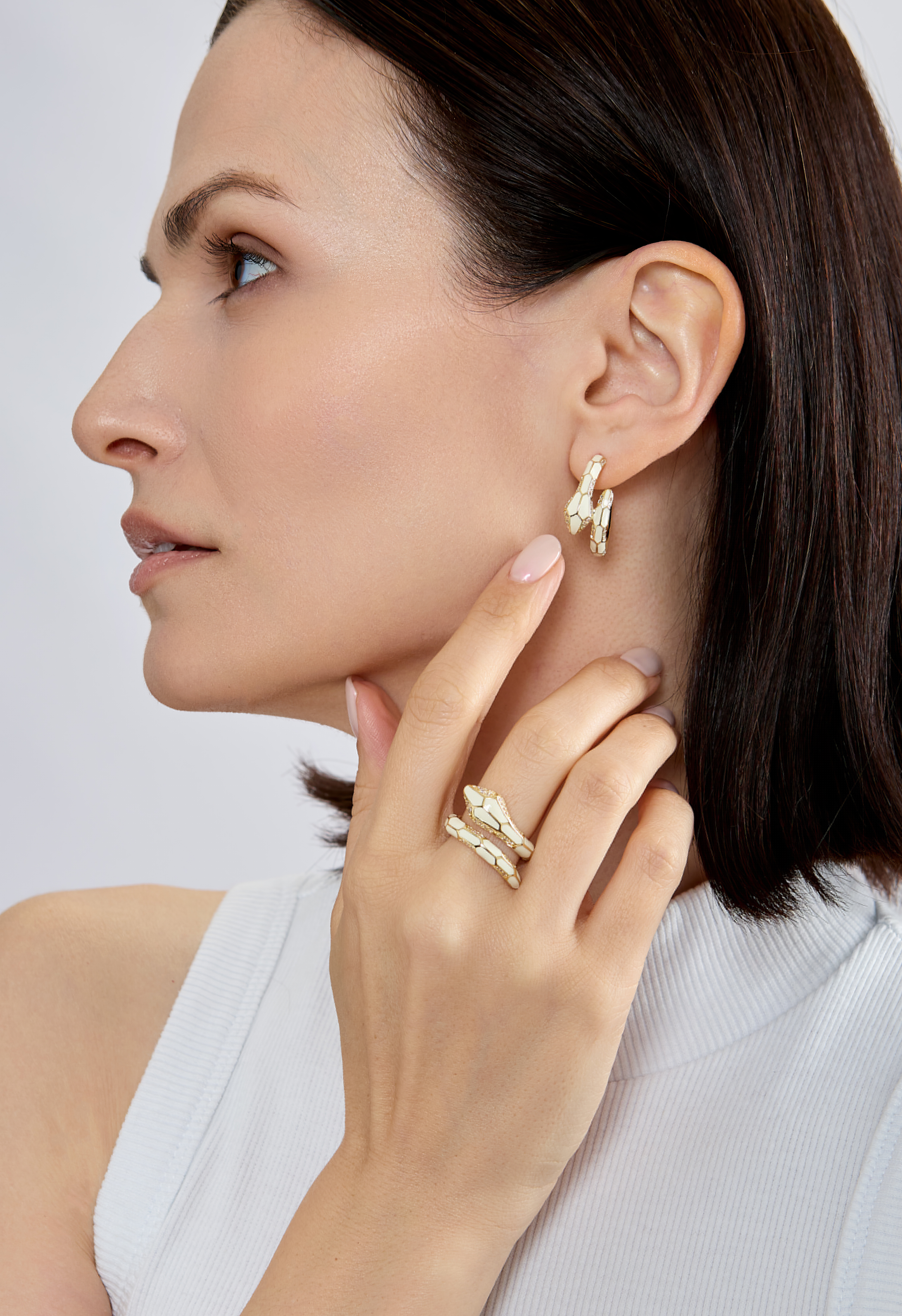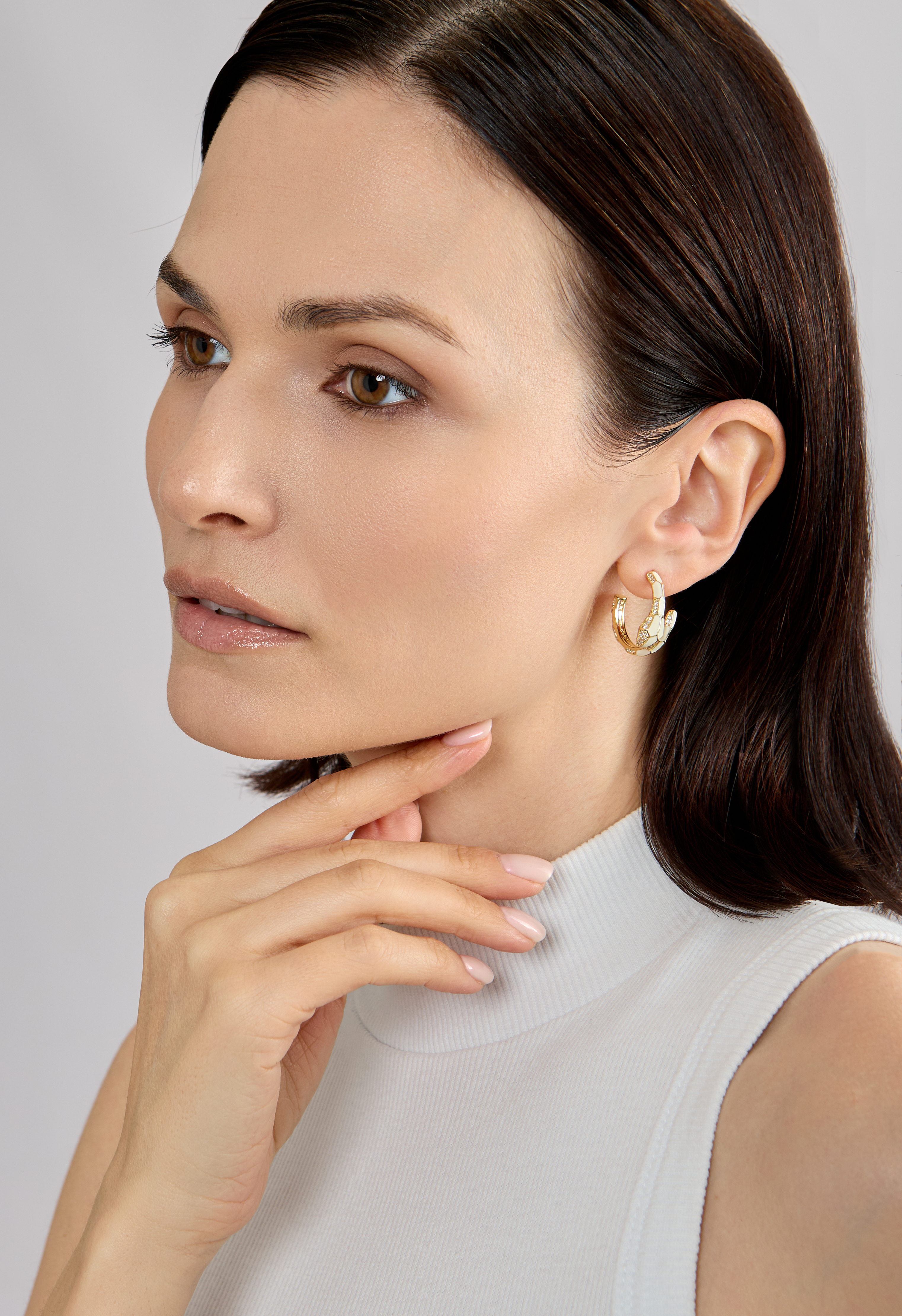 Стильные серьги из ювелирного сплава в эффектном сочетании золотого и белого цветов на удобной застежке-пусете – это лаконичное, но выразительное украшение, которое придает образу характер и глубину. Контраст оттенков подчеркивает современный стиль и уверенность, делая серьги универсальным акцентом как для повседневных, так и для вечерних образов.