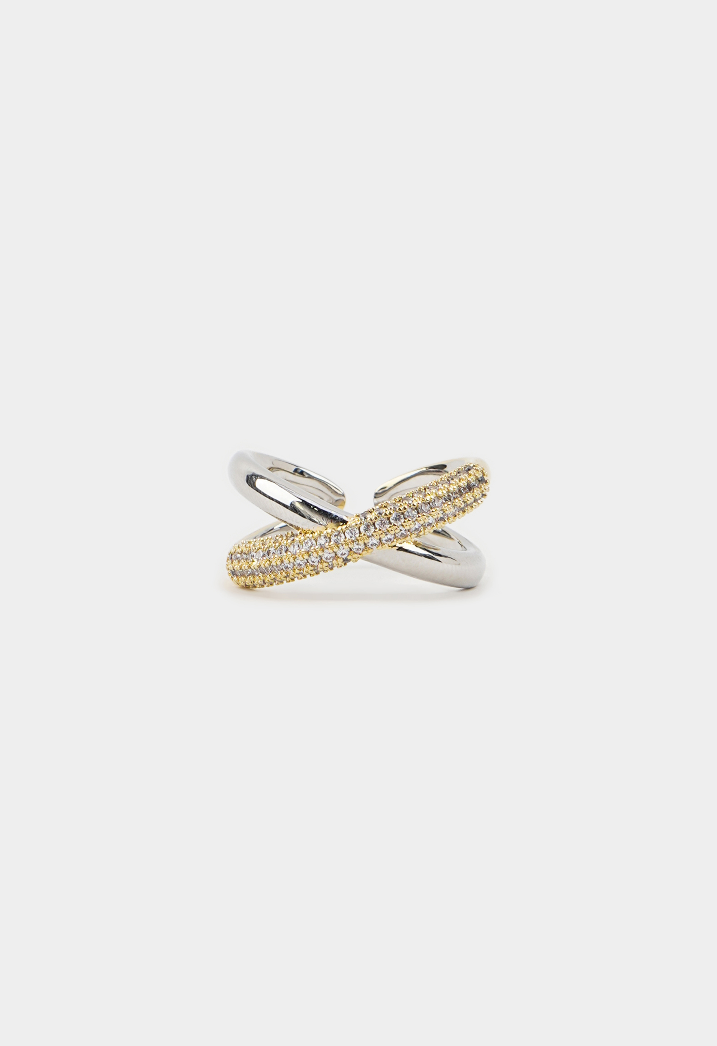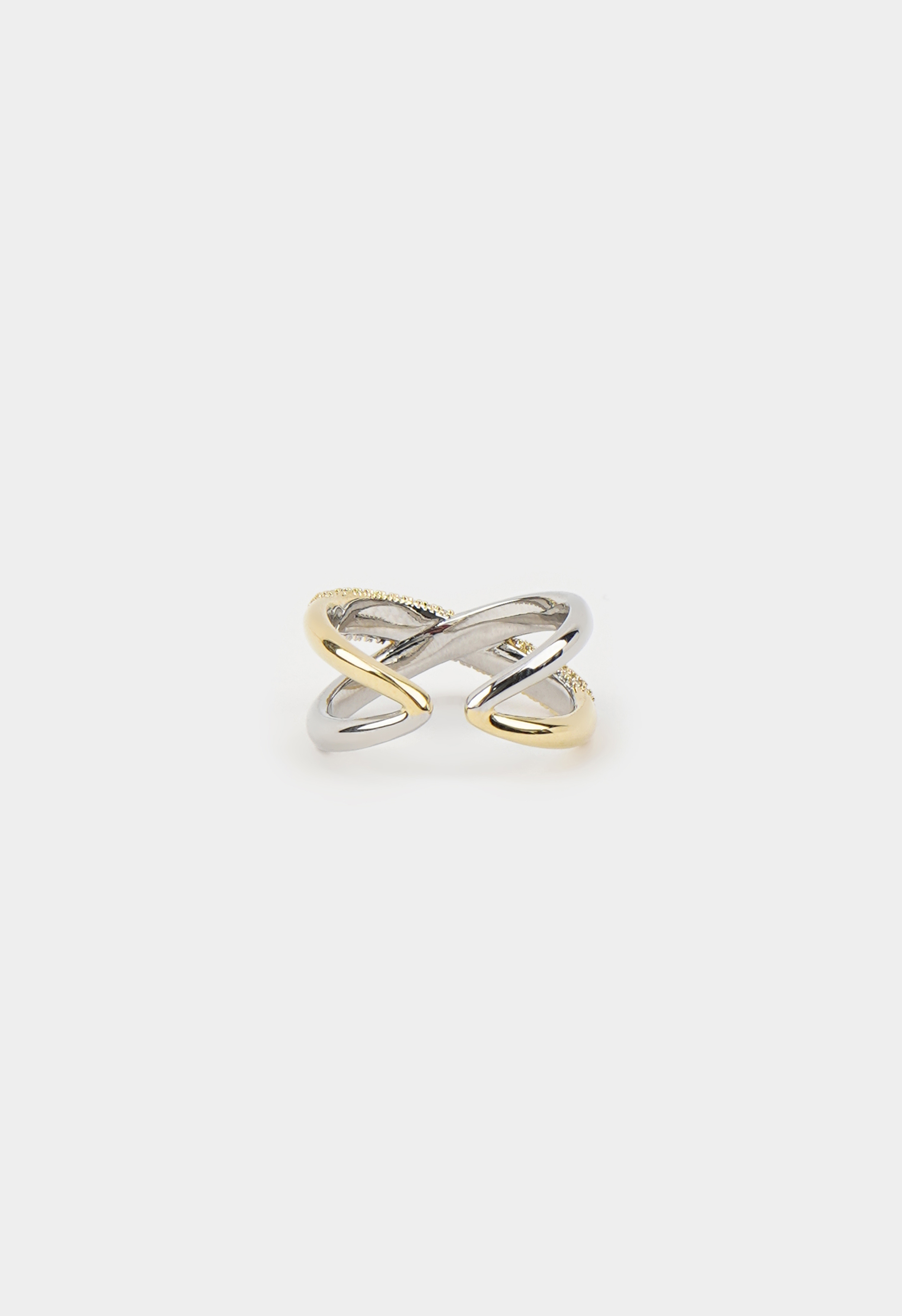 Серебряно-золотое кольцо, составленное из двух переплетенных колец – одно в серебристом, другое в тёплом золотистом оттенке – создает чистый и современный образ. В центре композиции аккуратное перекрестие выполняет роль выразительного графичного акцента и придает изделию символичность. Универсальная длина и лаконичный дизайн позволяют носить кольцо в паре с другими украшениями или как самостоятельный акцент в повседневных и праздничных образах.