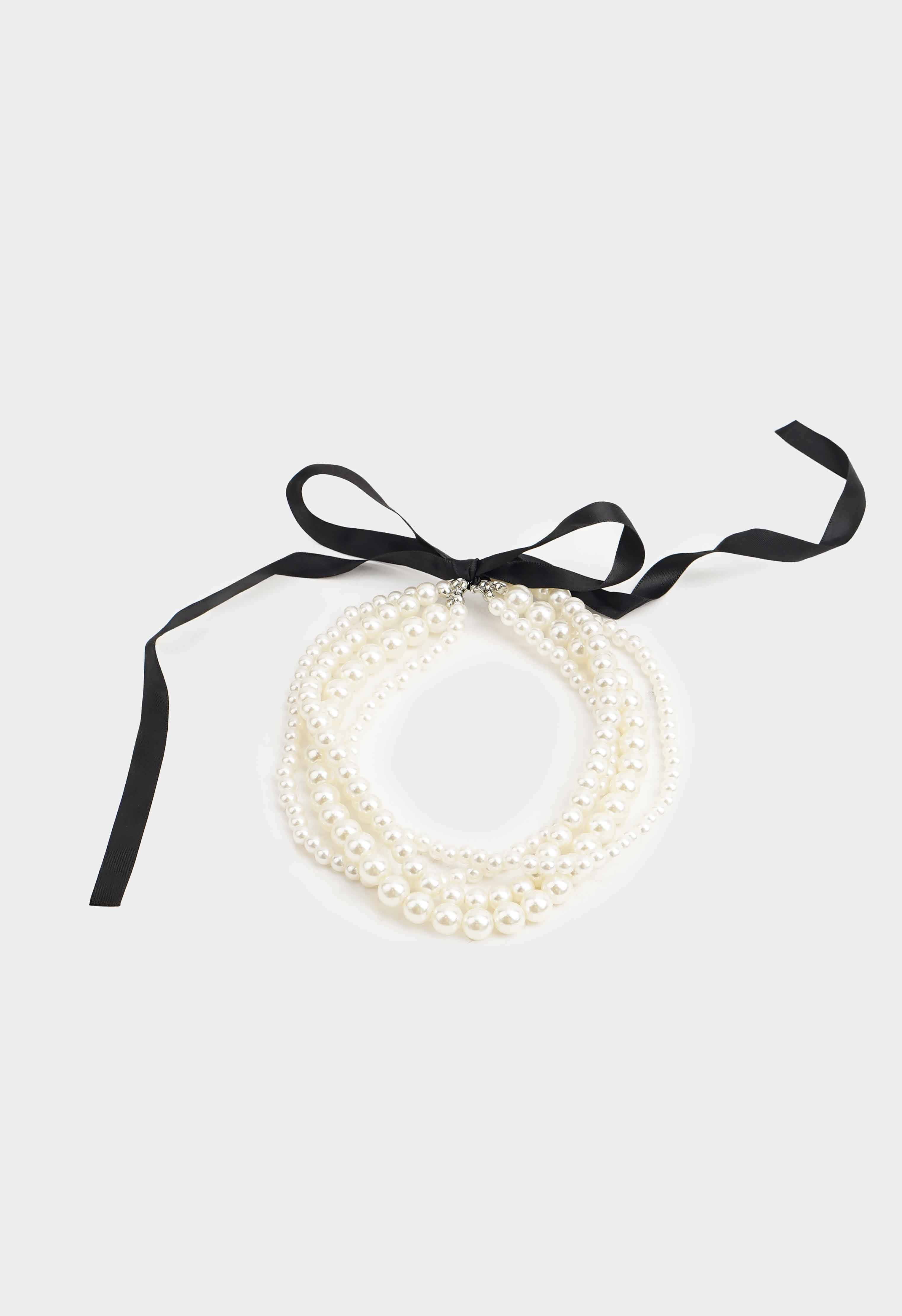 Нежное ожерелье с жемчужными бусинами – эффектное украшение, которое мгновенно добавляет образу романтичность и легкий винтажный шарм. Многорядный дизайн красиво подчеркивает линию шеи, создавая объемный, но при этом нежный акцент. Черная лента позволяет регулировать посадку и завязать аккуратный бант сзади или сбоку.