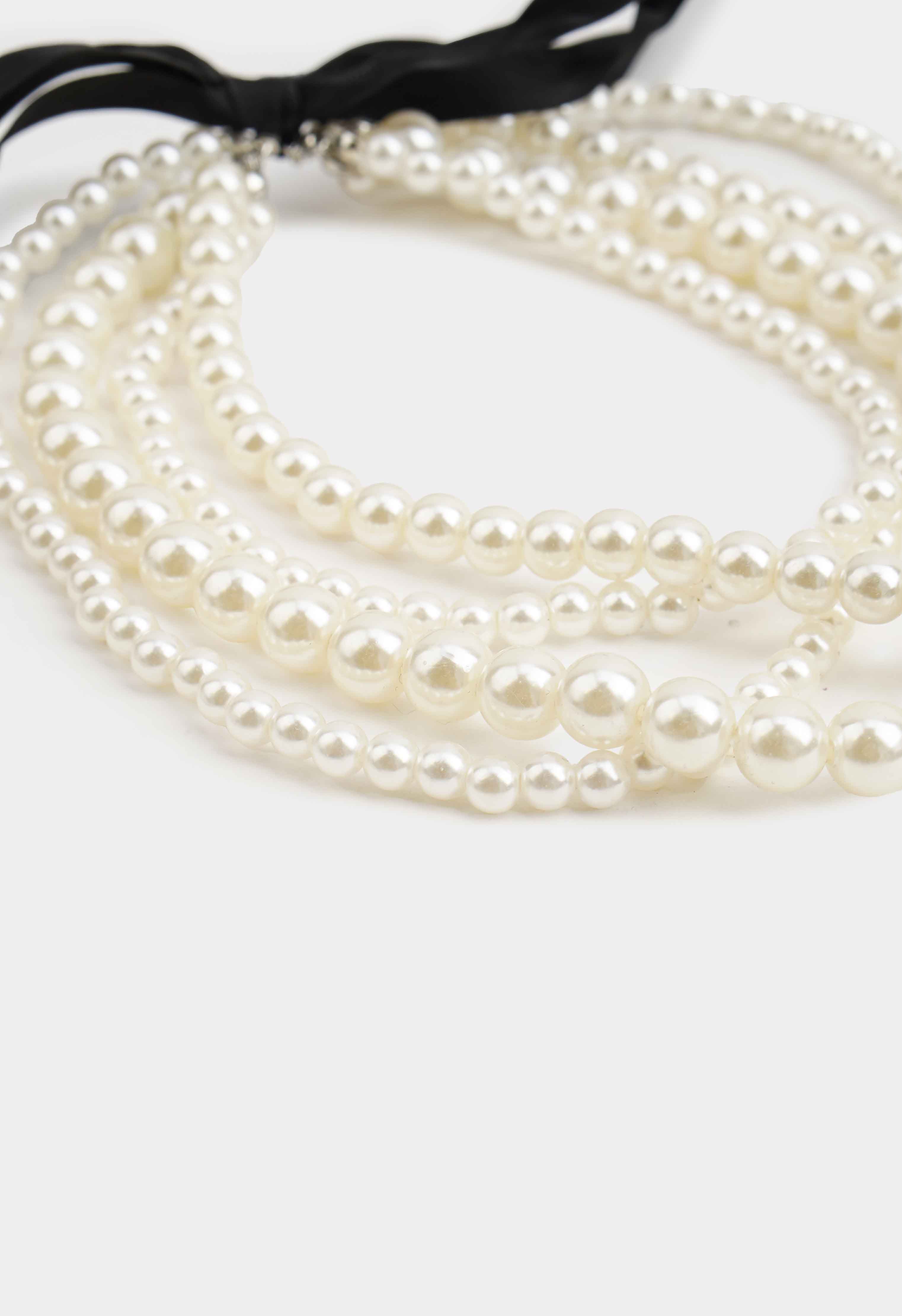 Нежное ожерелье с жемчужными бусинами – эффектное украшение, которое мгновенно добавляет образу романтичность и легкий винтажный шарм. Многорядный дизайн красиво подчеркивает линию шеи, создавая объемный, но при этом нежный акцент. Черная лента позволяет регулировать посадку и завязать аккуратный бант сзади или сбоку.