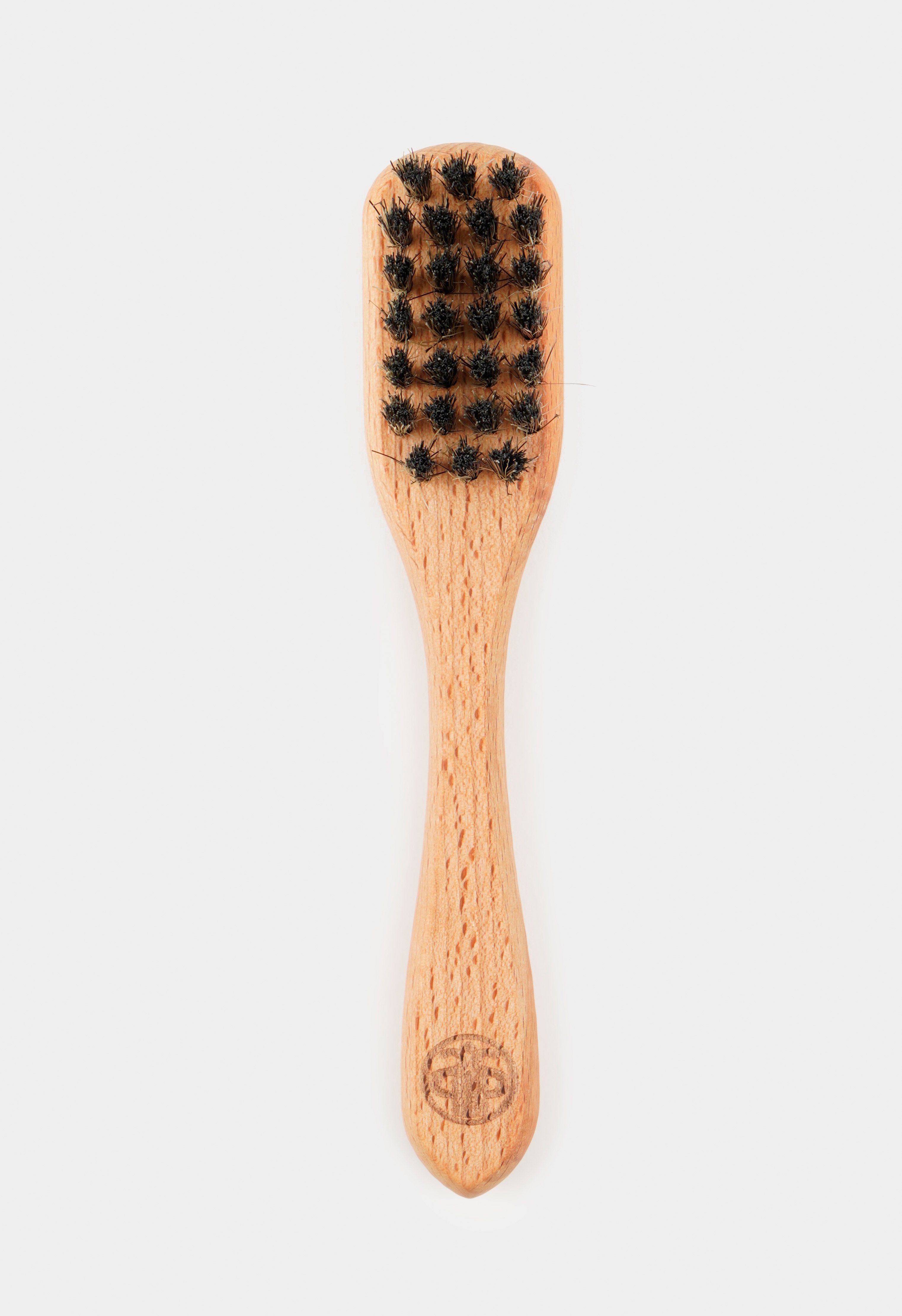 Щетка с деревянной ручкой и темной щетиной – незаменимый аксессуар для ухода за обувью. Прочная, но мягкая щетина равномерно распределяет крем или воск по поверхности, легко проникая в текстуру кожи, обеспечивая глубокое питание и защиту. Эргономичная деревянная ручка удобно лежит в руке, превращая ежедневный уход за обувью в простую и приятную процедуру, сохраняя блеск и продлевая срок службы вашей обуви.
