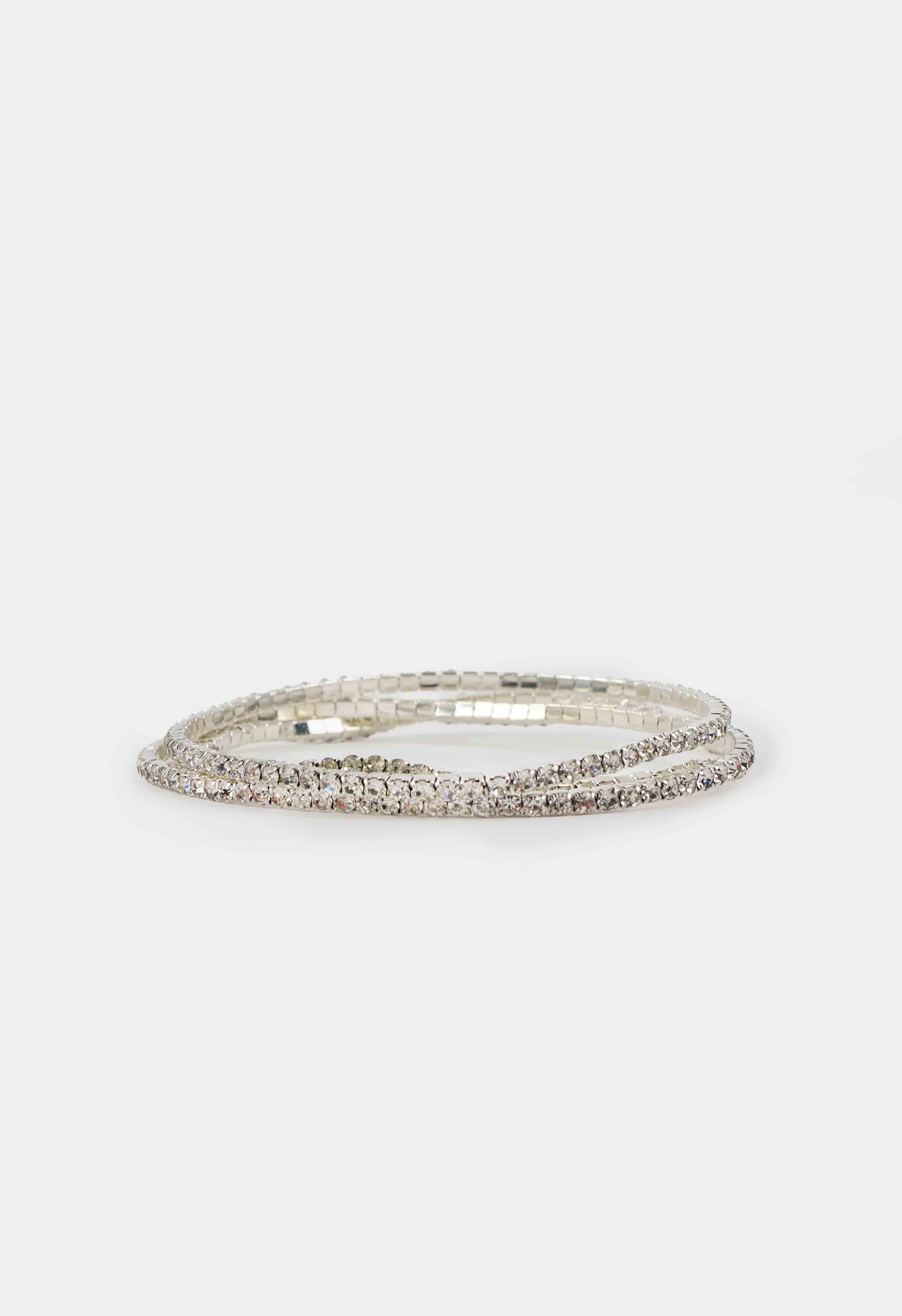 Набор из трех изящных браслетов серебристого цвета – универсальный аксессуар для любого образа. Тонкие гибкие браслеты из ювелирного сплава, усыпанные мерцающими стразами, красиво переливаются при движении и эффектно смотрятся как вместе, так и по отдельности. Идеально подойдут и к вечернему платью, и к повседневному сочетанию, добавляя образу аккуратный блеск и женственность.