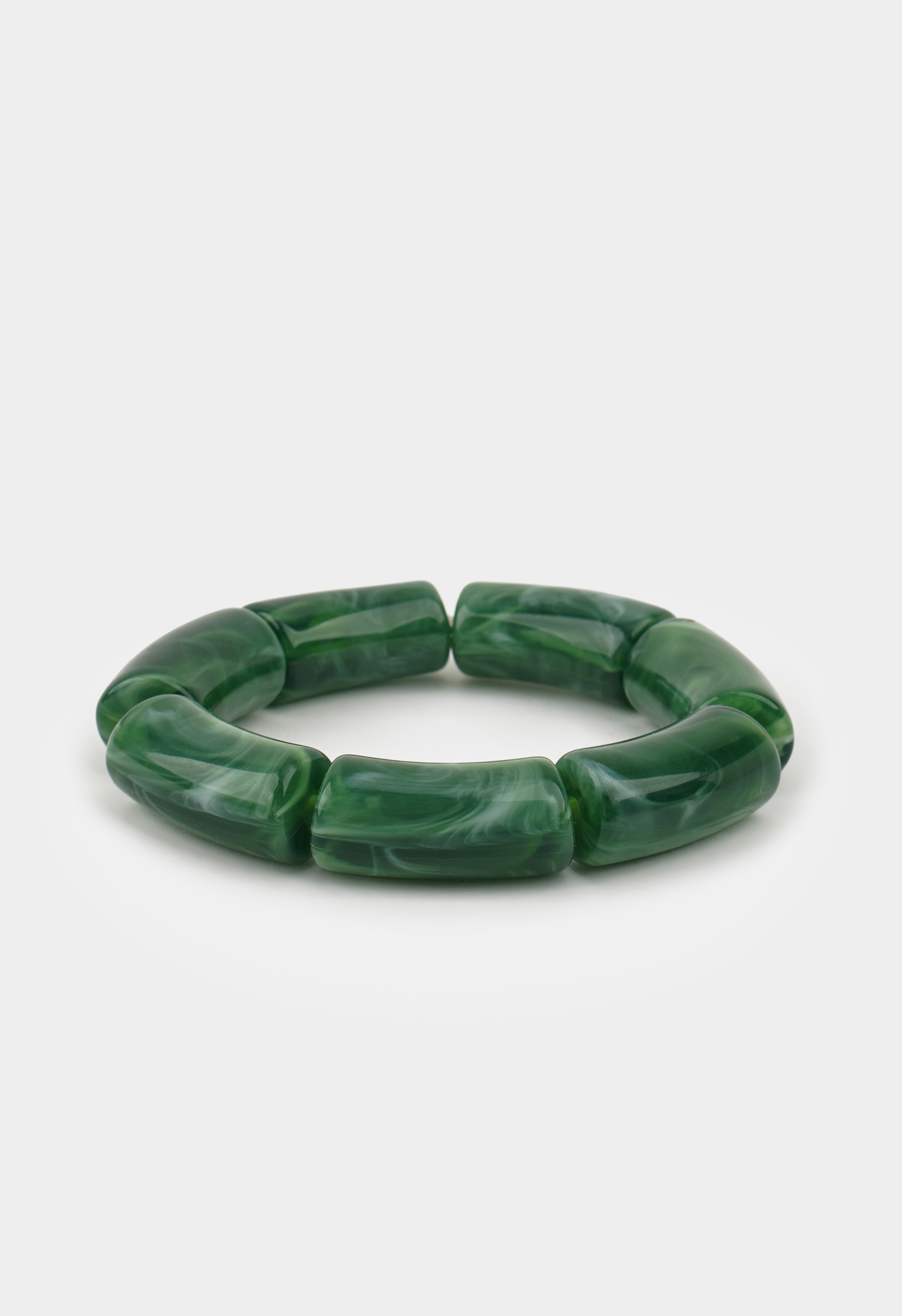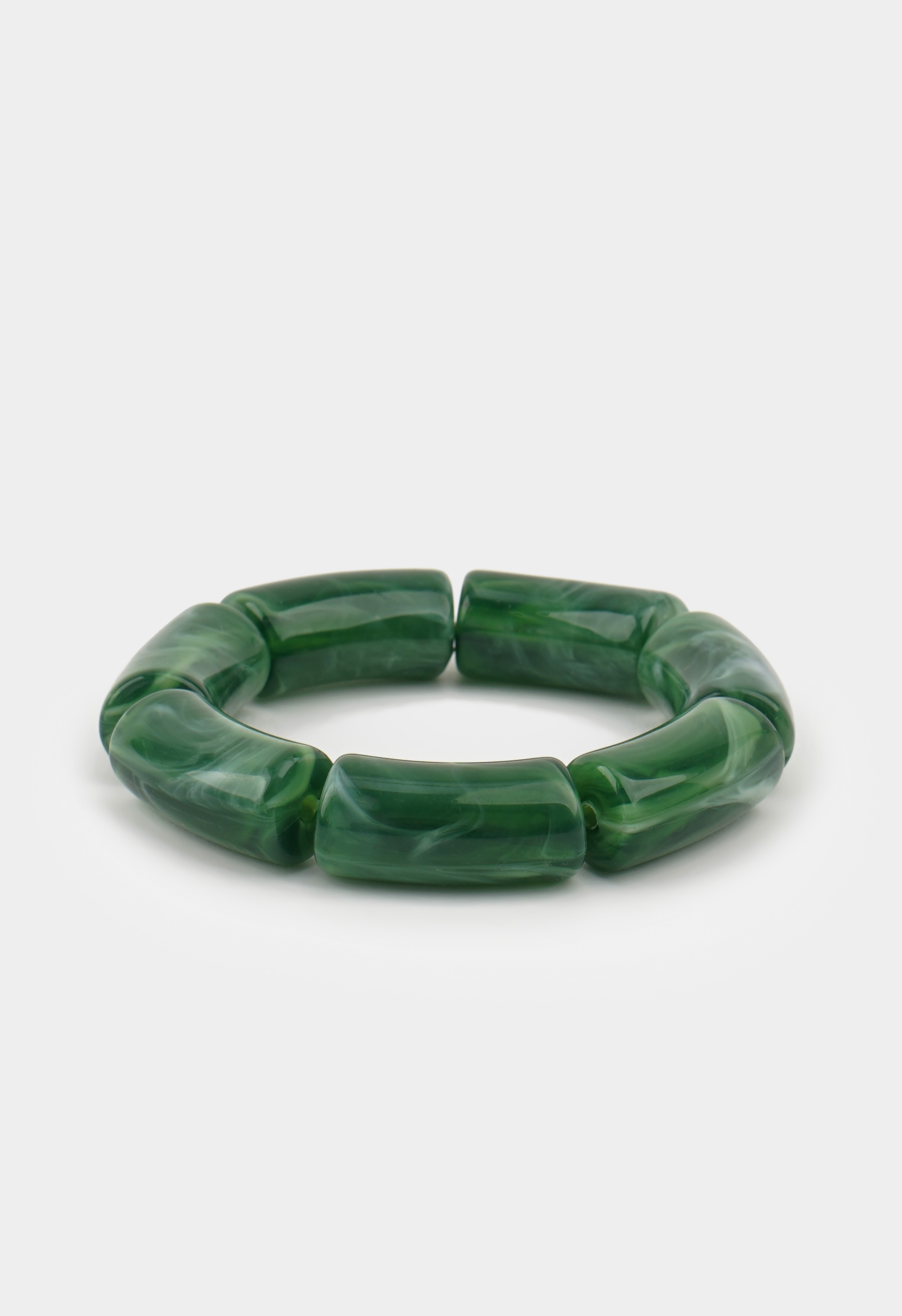 Лаконичный зеленый браслет с гладкими звеньями и красивым мраморным переливом – стильная деталь, которая добавляет образу свежести и благородства. Украшение достаточно самодостаточное, подчеркивает запястье, и легко сочетается с часами и другими украшениями, создавая актуальные многослойные комплекты. Удобная посадка и приятная форма делают его идеальным аксессуаром на каждый день.