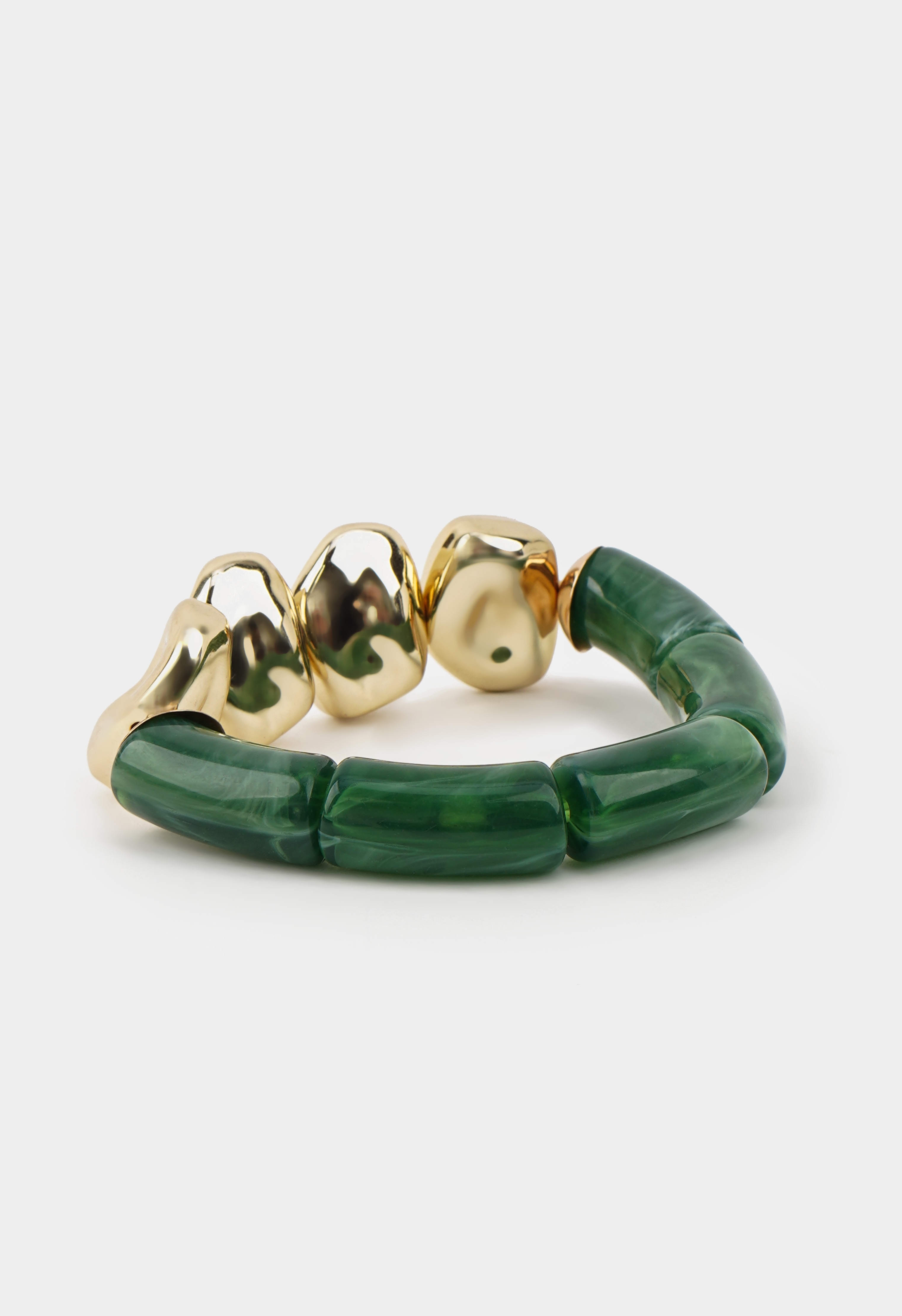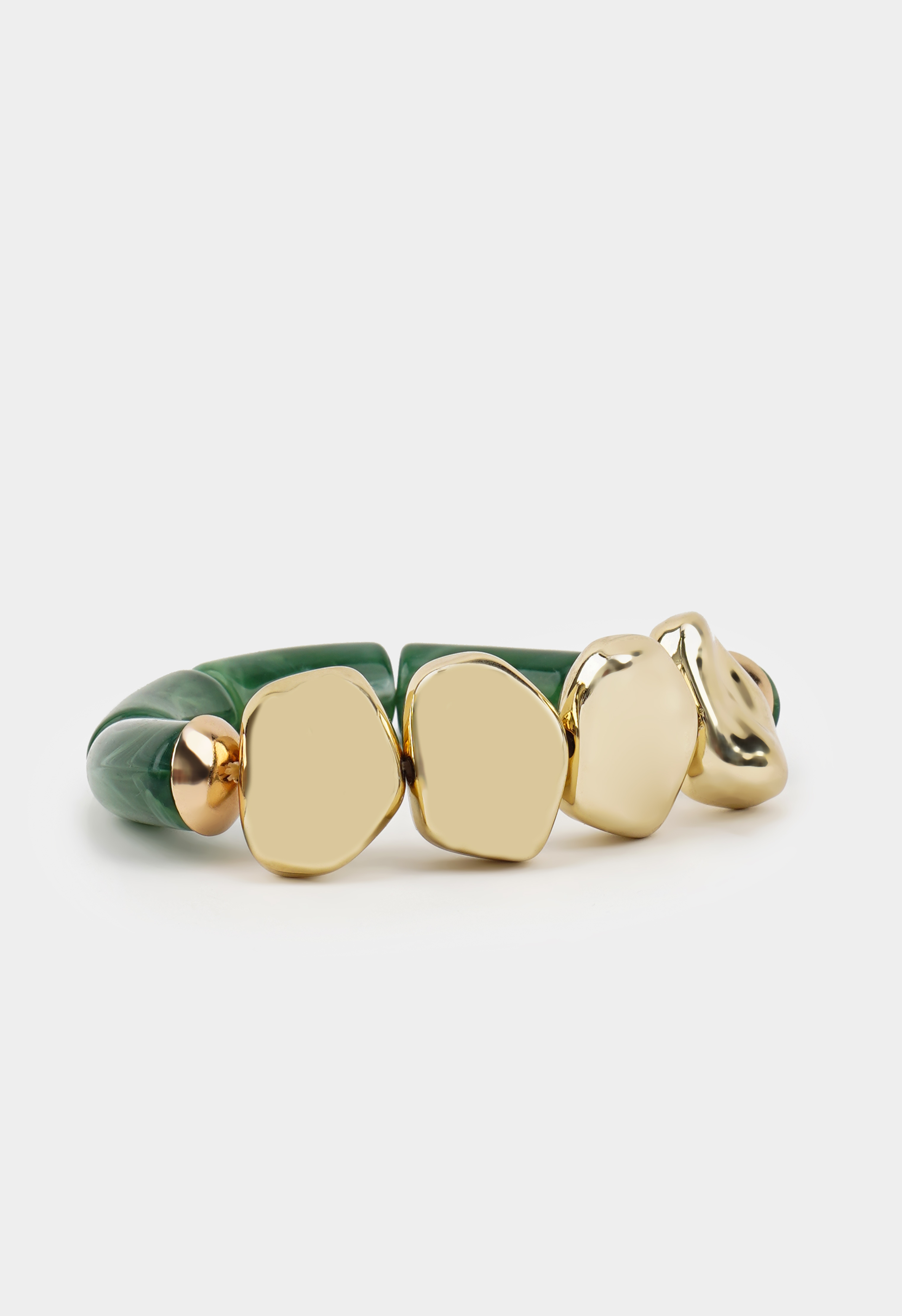 Эффектный браслет с глубокими зелеными звеньями и акцентными золотистыми элементами из ювелирного сплава – украшение, которое сразу притягивает взгляд. Благородный оттенок красиво играет на свету, а глянцевые золотые элементы добавляют образу нотку роскоши и делают браслет главным акцентом на запястье. Удобная посадка позволяет носить его целый день.