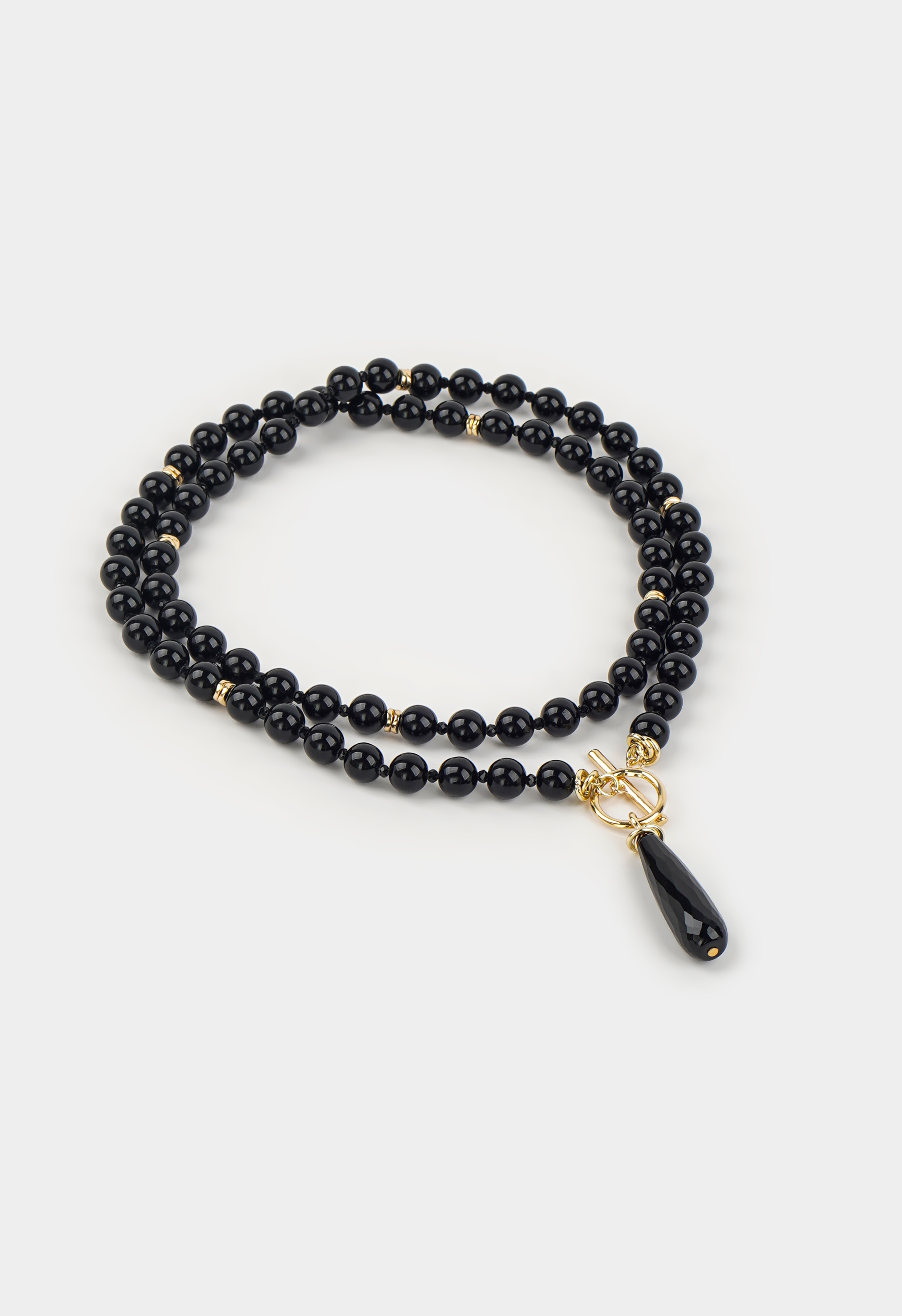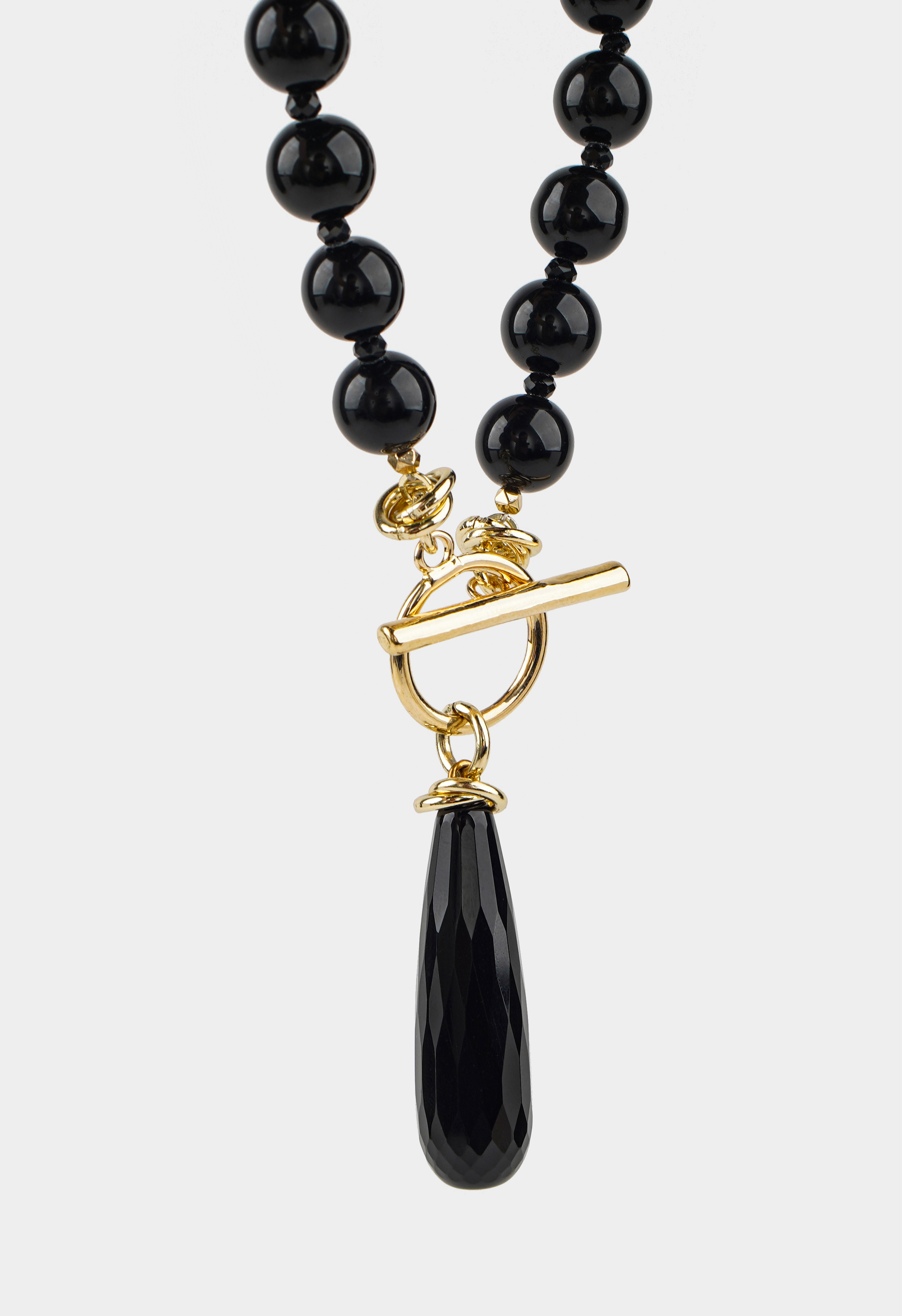Лаконичное ожерелье из агата в благородных черно-золотых оттенках – акцент, который невозможно не заметить. Гладкие камни переливаются глубиной цвета, а эффектная застежка тогл не только удобна, но и становится частью дизайна. Украшение легко впишется в повседневный образ и добавит выразительности вечернему наряду.