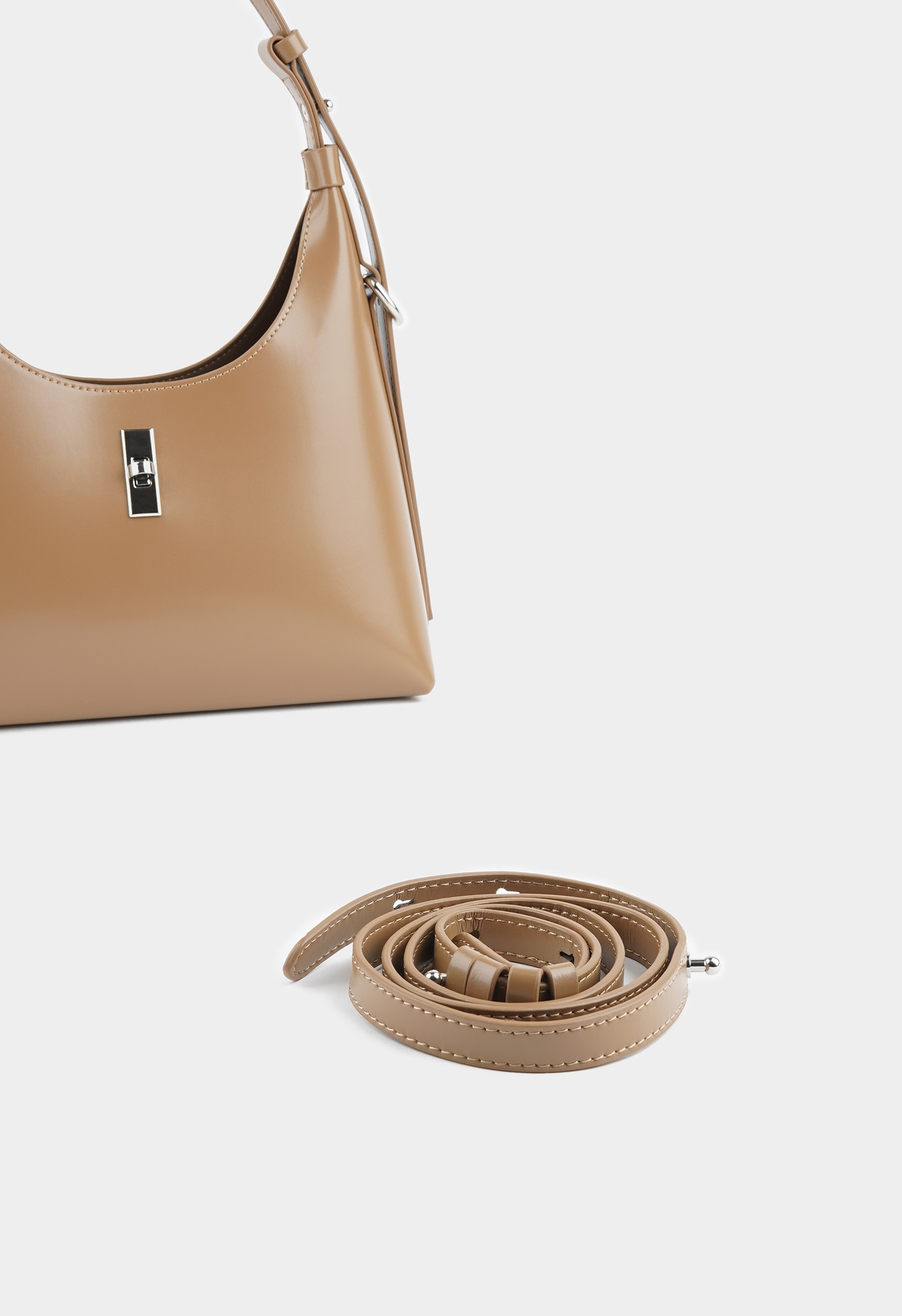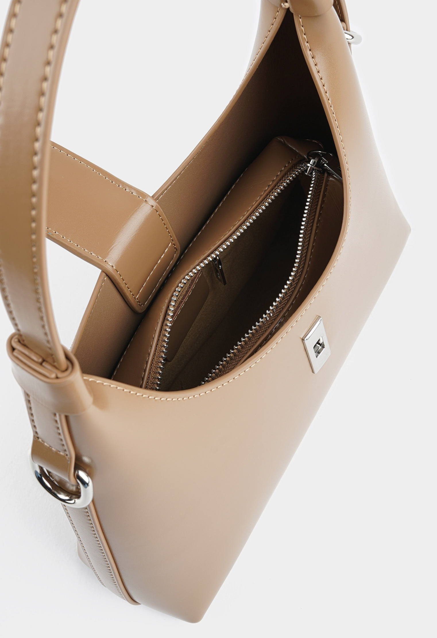 Сумка качественно сделана, очень приятная, кожа гладенькая, в реальности смотрится очень дорого, цвет нюдовый приятно выглядит. Ручка по длине подошла, можно при желании пристегнуть еще ремень, но мне и так удобно. Компактный нарядный вариант, я в восторге!