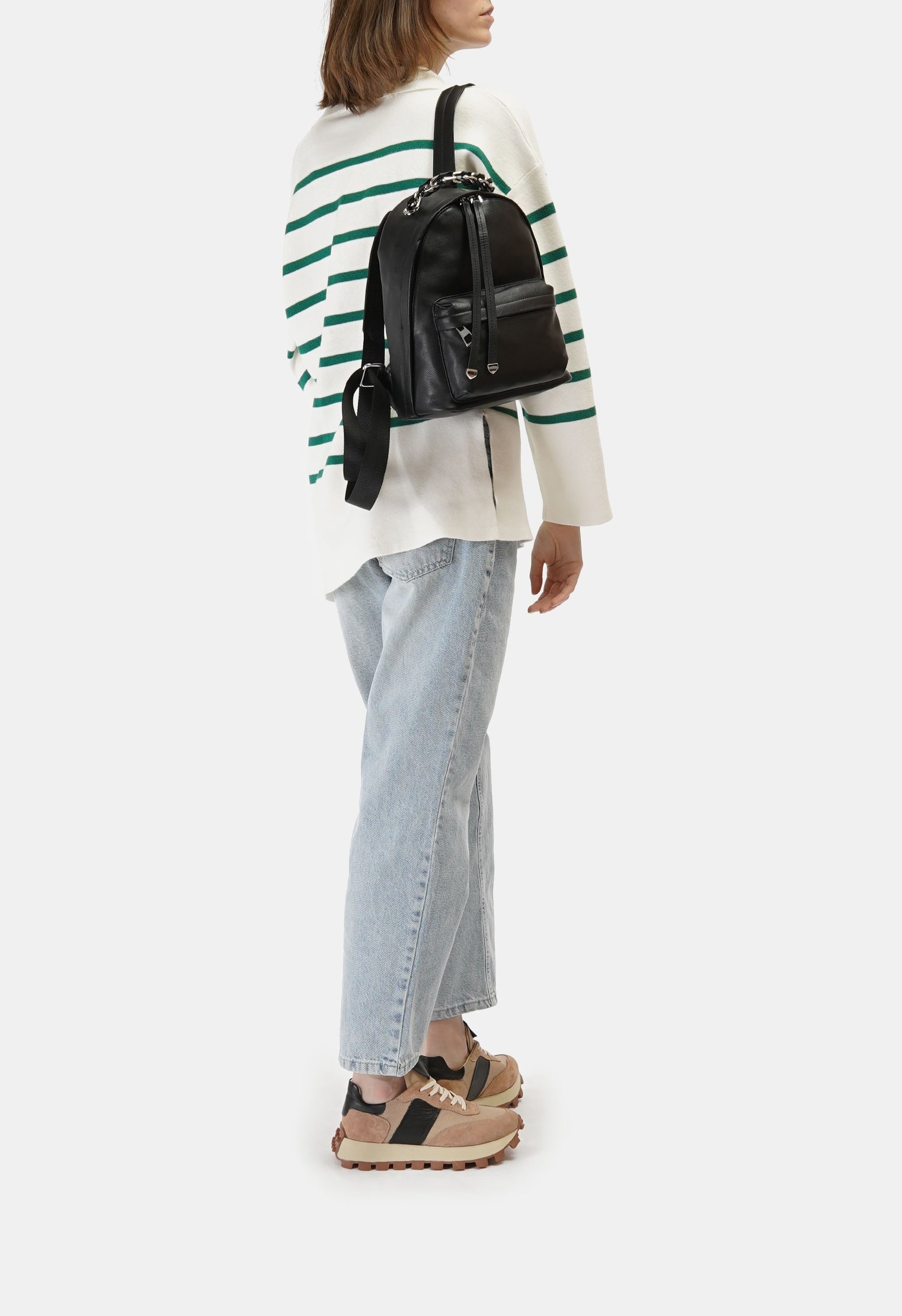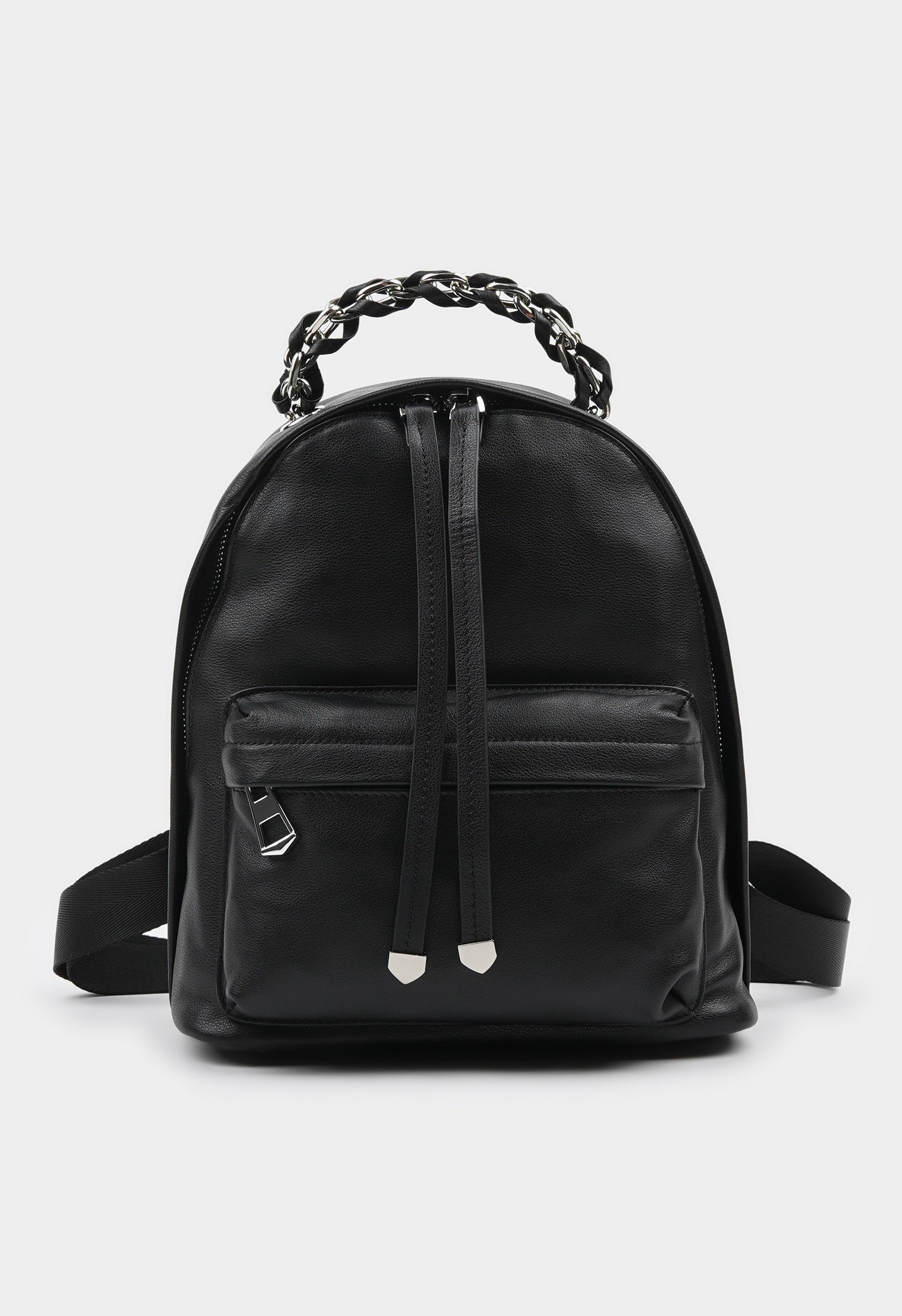 Компактный рюкзак из новой коллекции изготовлен из натуральной кожи и дополнен эффектной ручкой. Изделие закрывается на молнию, имеет три внутренних отделения и два кармана с внешней стороны. Мягкие текстильные ремни с регулировкой усилены прочными вставками из кожи. Современная модель удачно впишется в базовый гардероб в любой гамме.