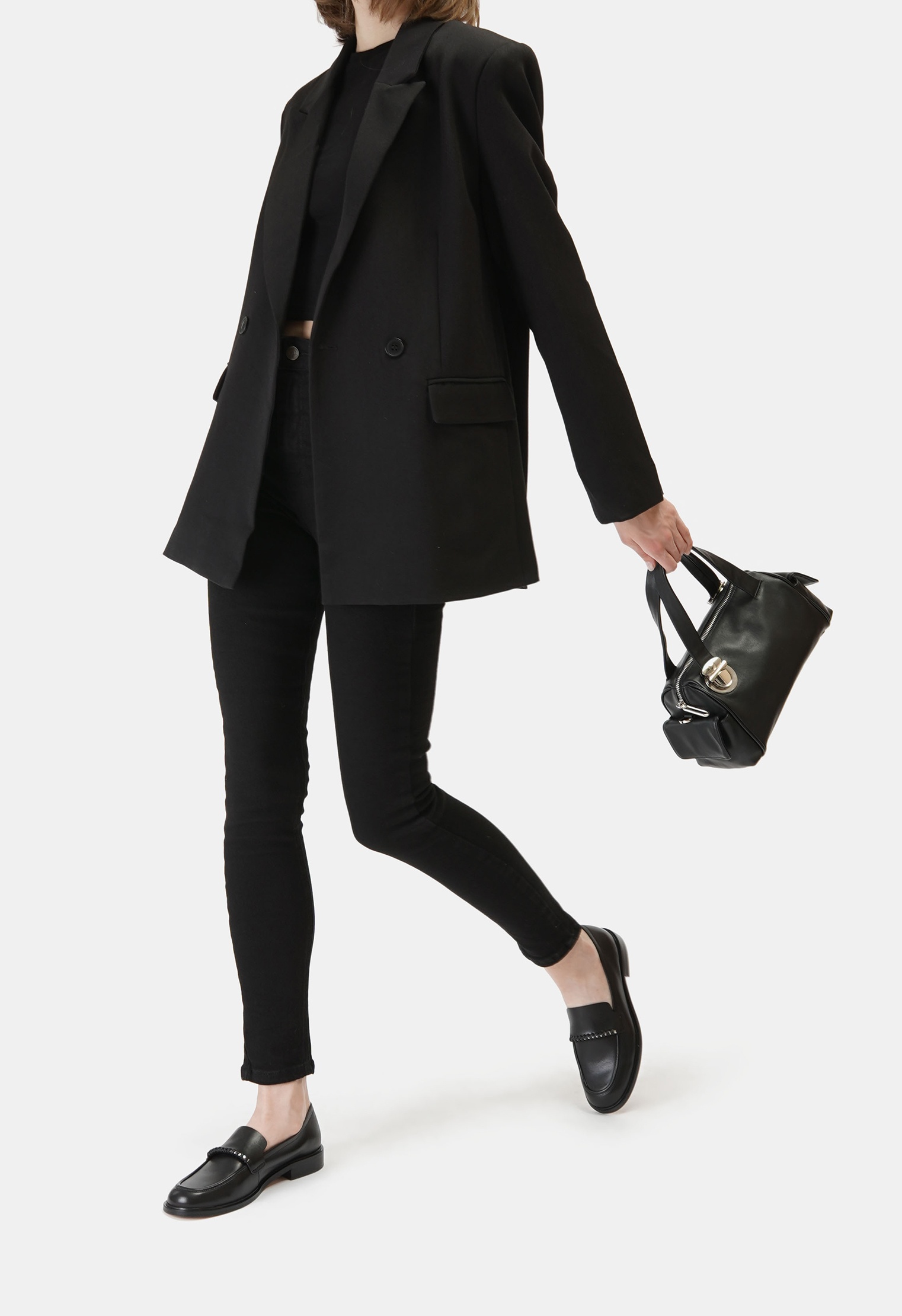 Стильная сумка из новой коллекции изготовлена из натуральной кожи и представлена в черном цвете. Трендовый крой на молнии дополнен двумя внутренними отделениями и двумя карманами с внешней стороны. В комплект входит съемный плечевой ремень с регулировкой длины. Современная модель удачно сочетается с элементами базового и классического гардероба.