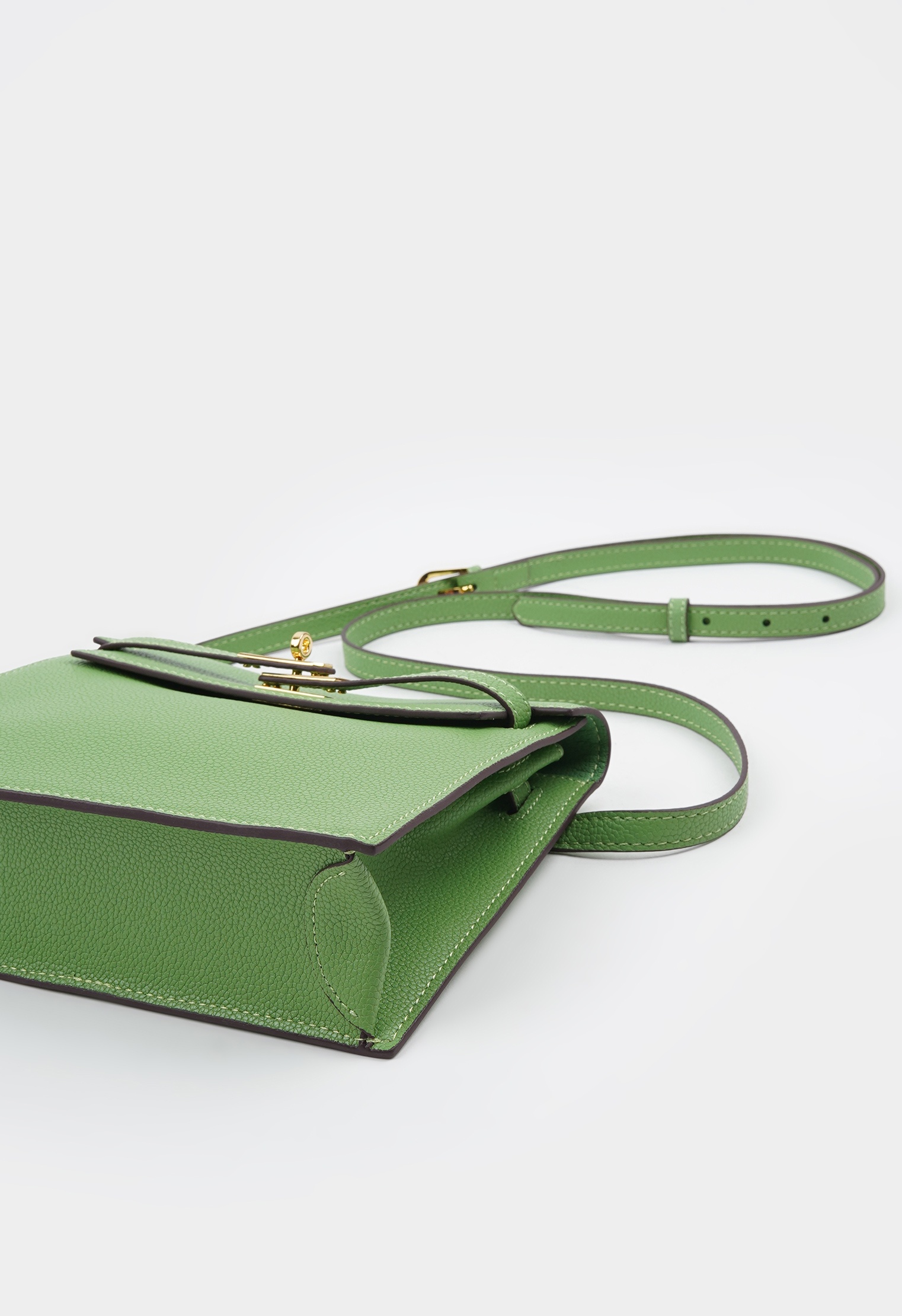 Миниатюрная сумка из новой коллекции изготовлена из натуральной мягкой кожи и декорирована золотистой фурнитурой. Современный крой дополнен удобной застежкой и внутренним карманом для мелочей. Удлиненная ручка позволяет носить аксессуар в руке и на плече. Трендовая модель в ярком оттенке удачно впишется в летний образ в любой гамме.