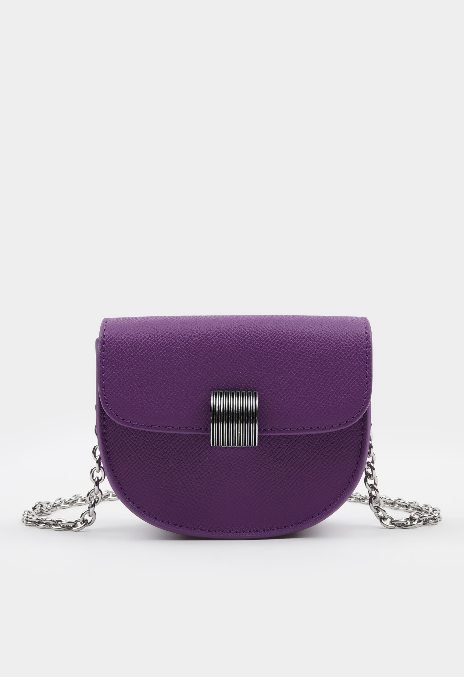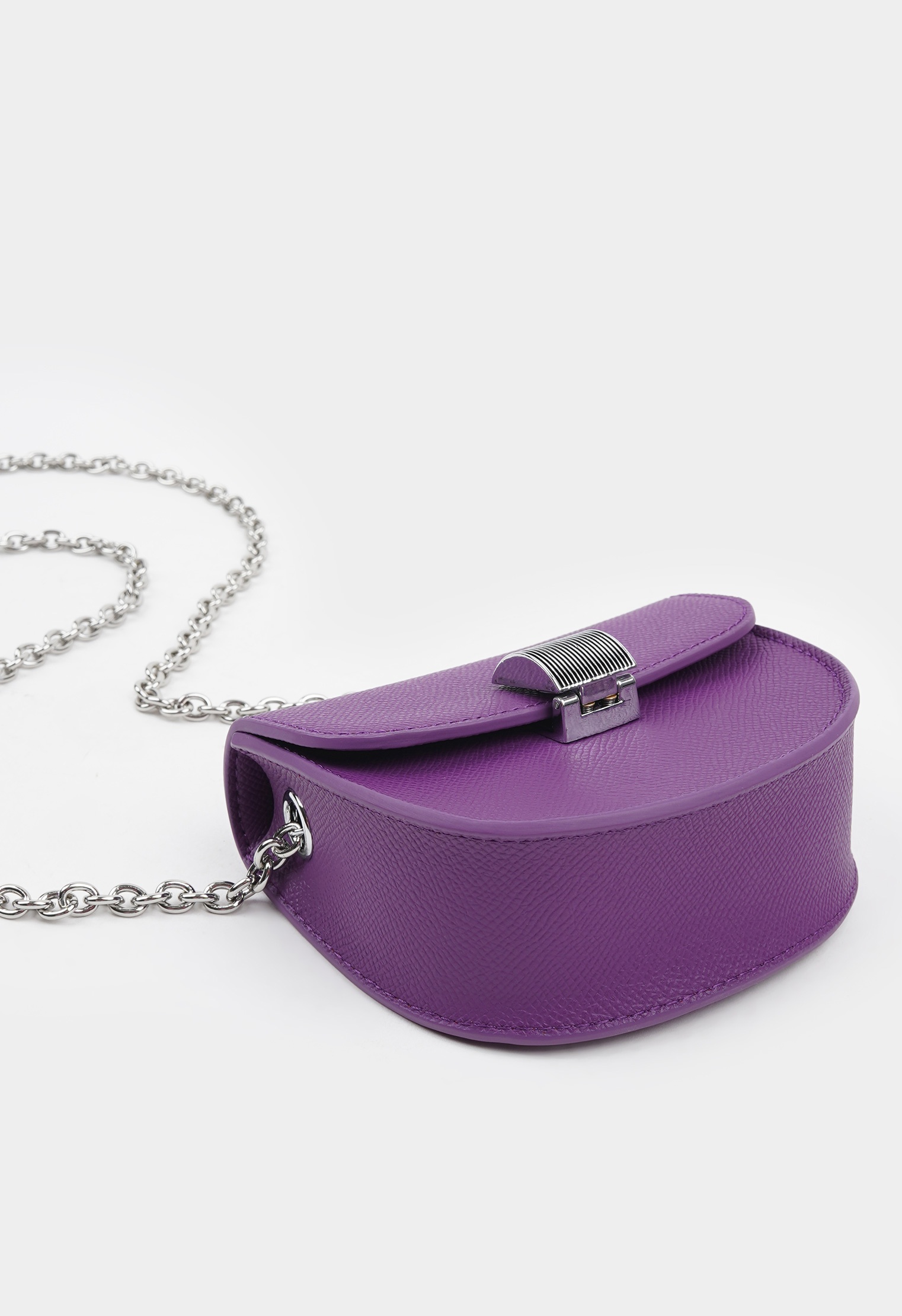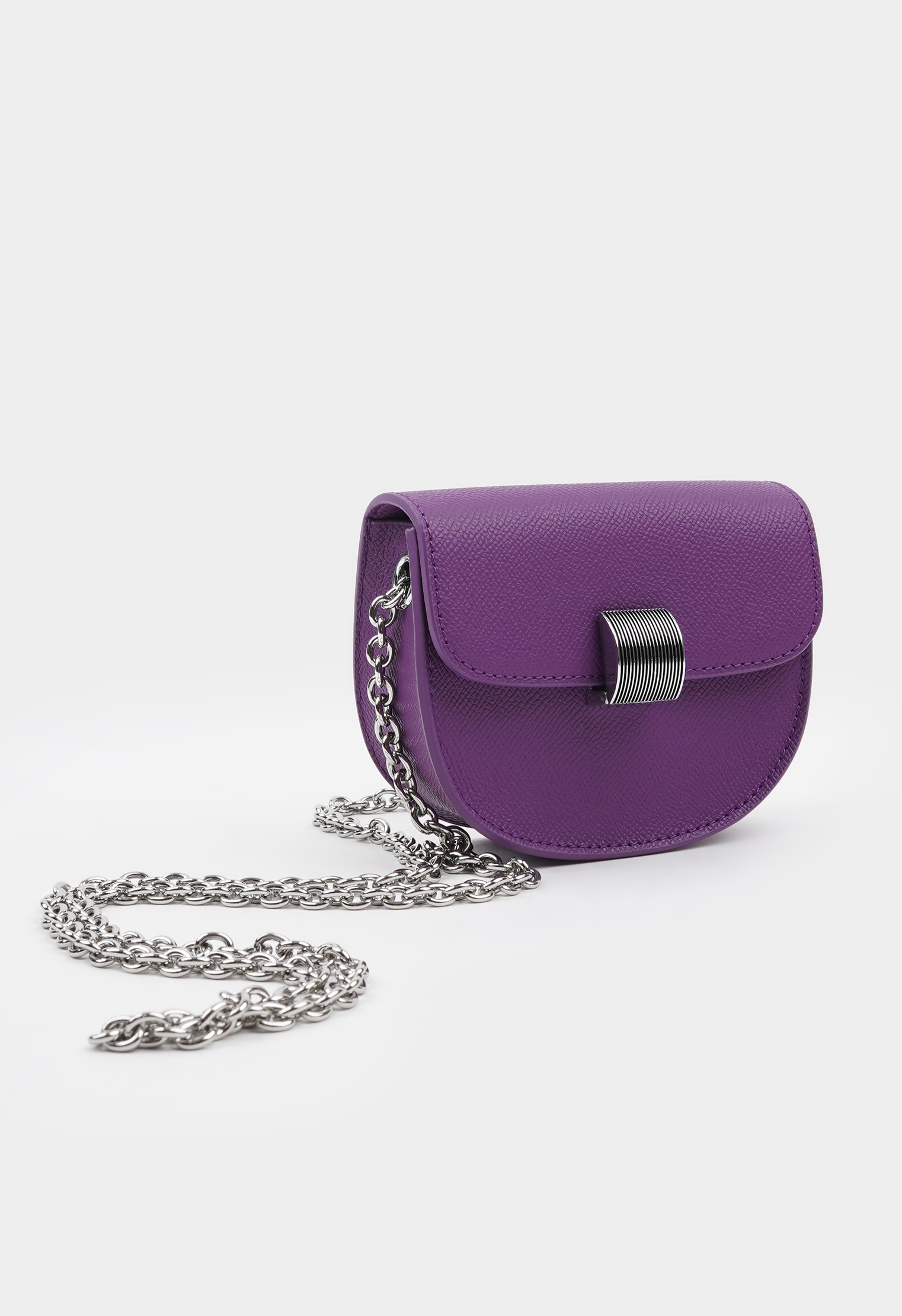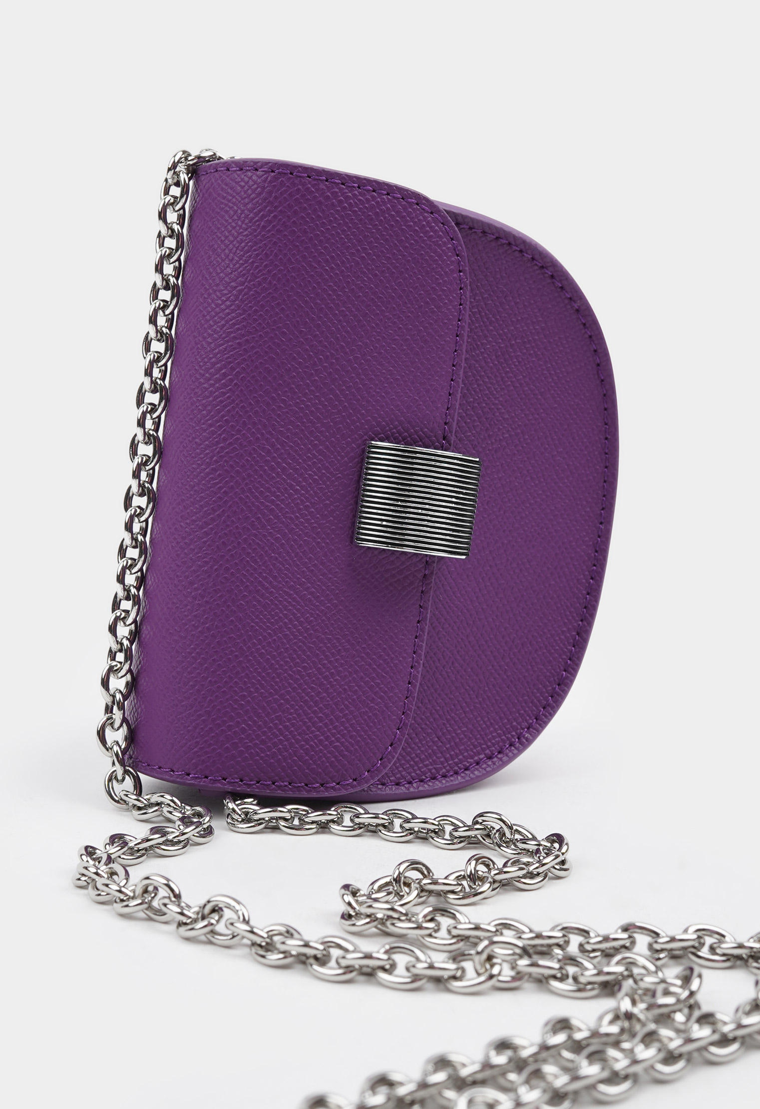 Миниатюрная сумка из новой коллекции изготовлена из натуральной кожи и представлена в однотонном дизайне. Трендовый крой дополнен удобной застежкой в виде пряжки и внутренним карманом для мелочей. Удлиненная ручка в виде цепи позволяет носить аксессуар в руке и на плече. Лаконичная модель удачно впишется в стильный образ на каждый день.