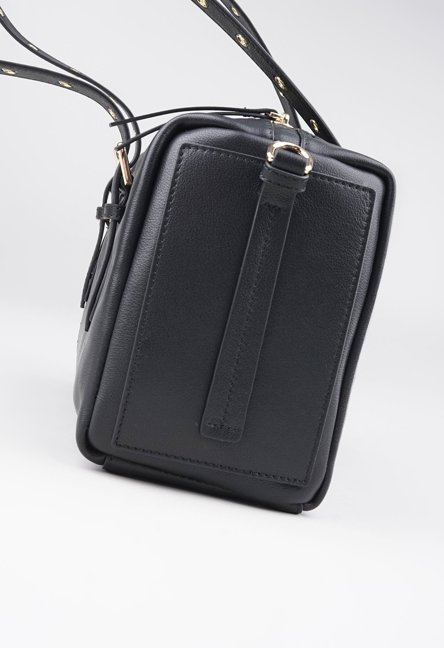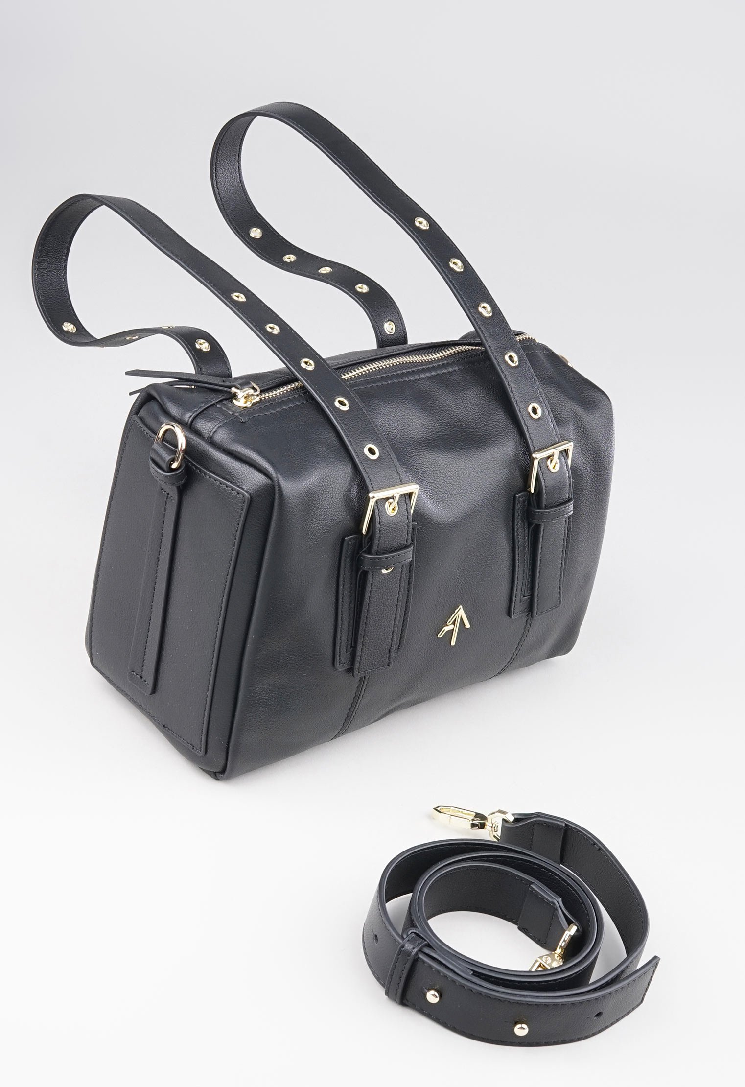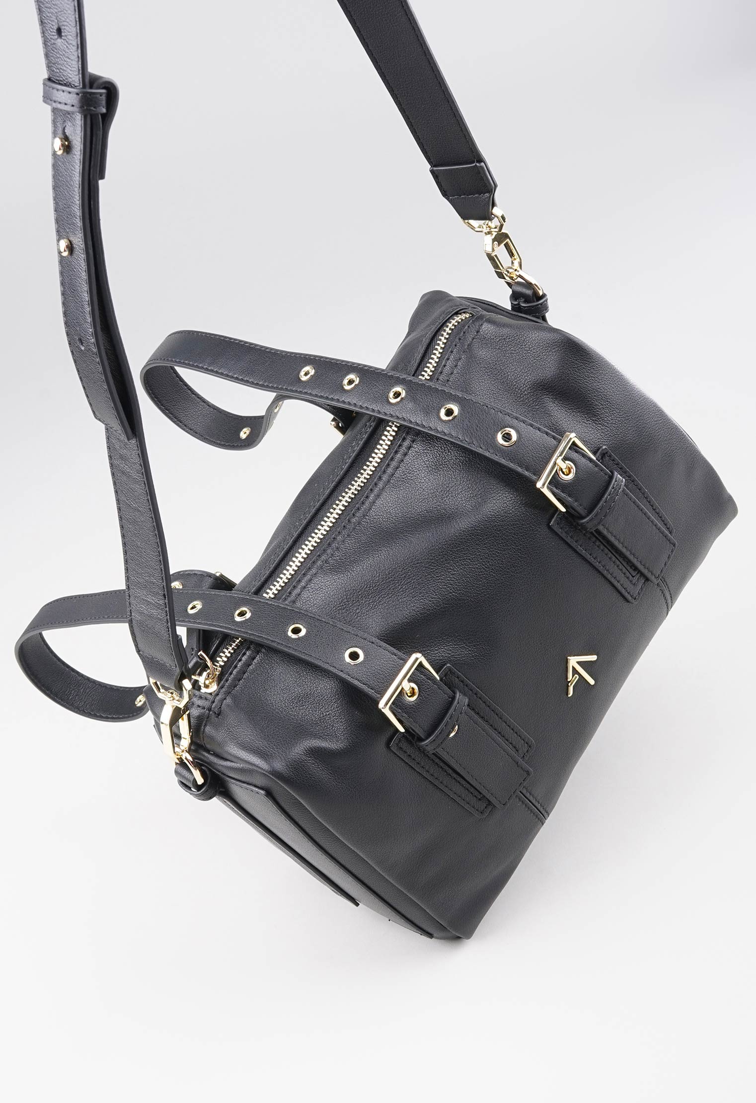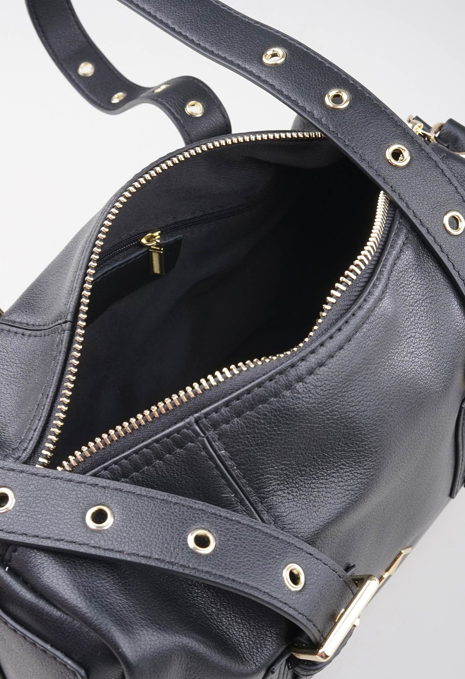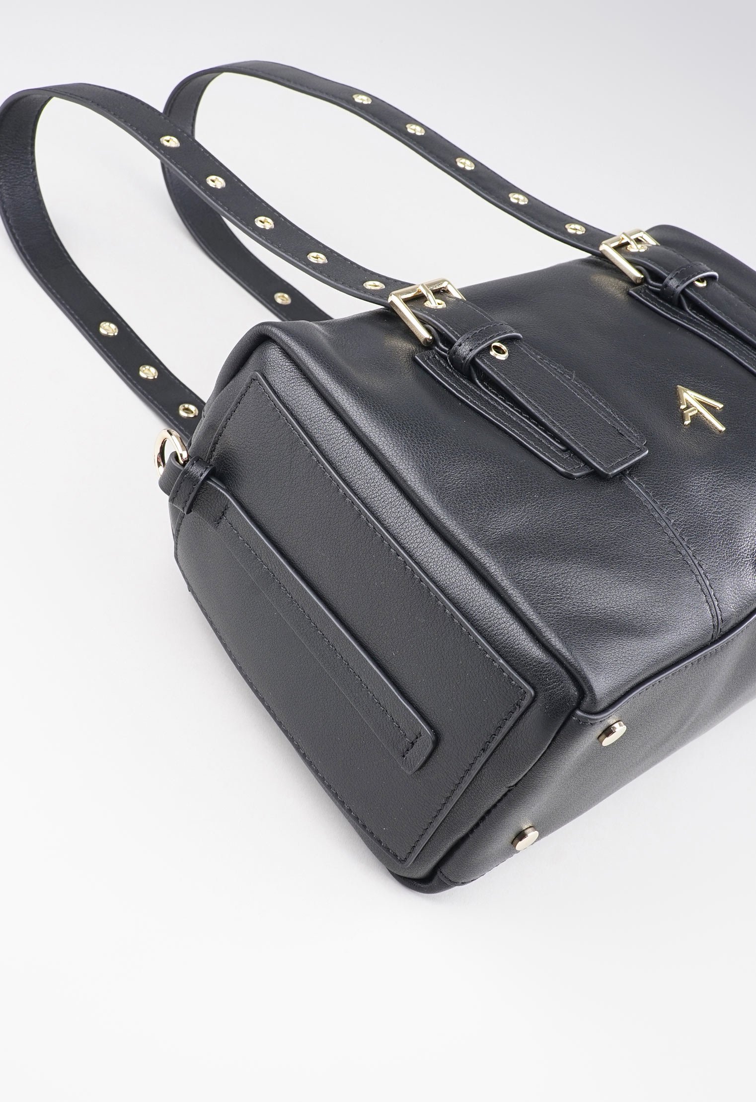 Вместительная сумка из новой коллекции изготовлена из натуральной кожи чёрного цвета и декорирована золотистой фурнитурой. Изделие дополнено двумя ручками с регулировкой длины и съёмным плечевым ремнём. Основное отделение застёгивается на молнию и имеет два внутренних кармана. Функциональная модель идеально впишется в повседневный гардероб.
