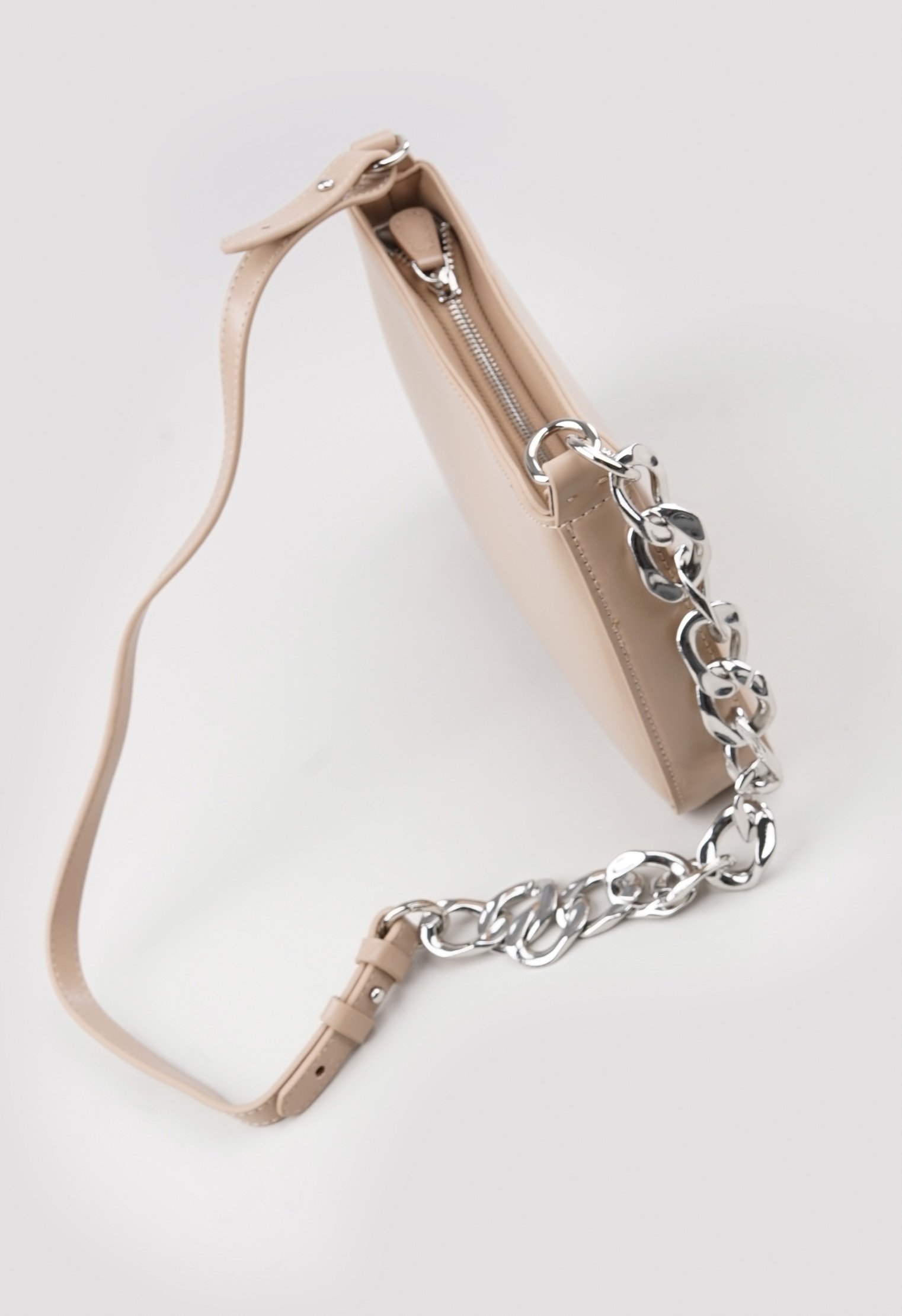 Элегантная сумка из лимитированной коллекции изготовлена из натуральной гладкой кожи бежевого цвета и дополнена оригинальным ремешком. Изделие закрывается на молнию и имеет внутренний карман для мелочей. Лаконичная модель в трендовом оттенке идеально сочетается с элементами классического гардероба и вдохновит на создание новых интересных образов.