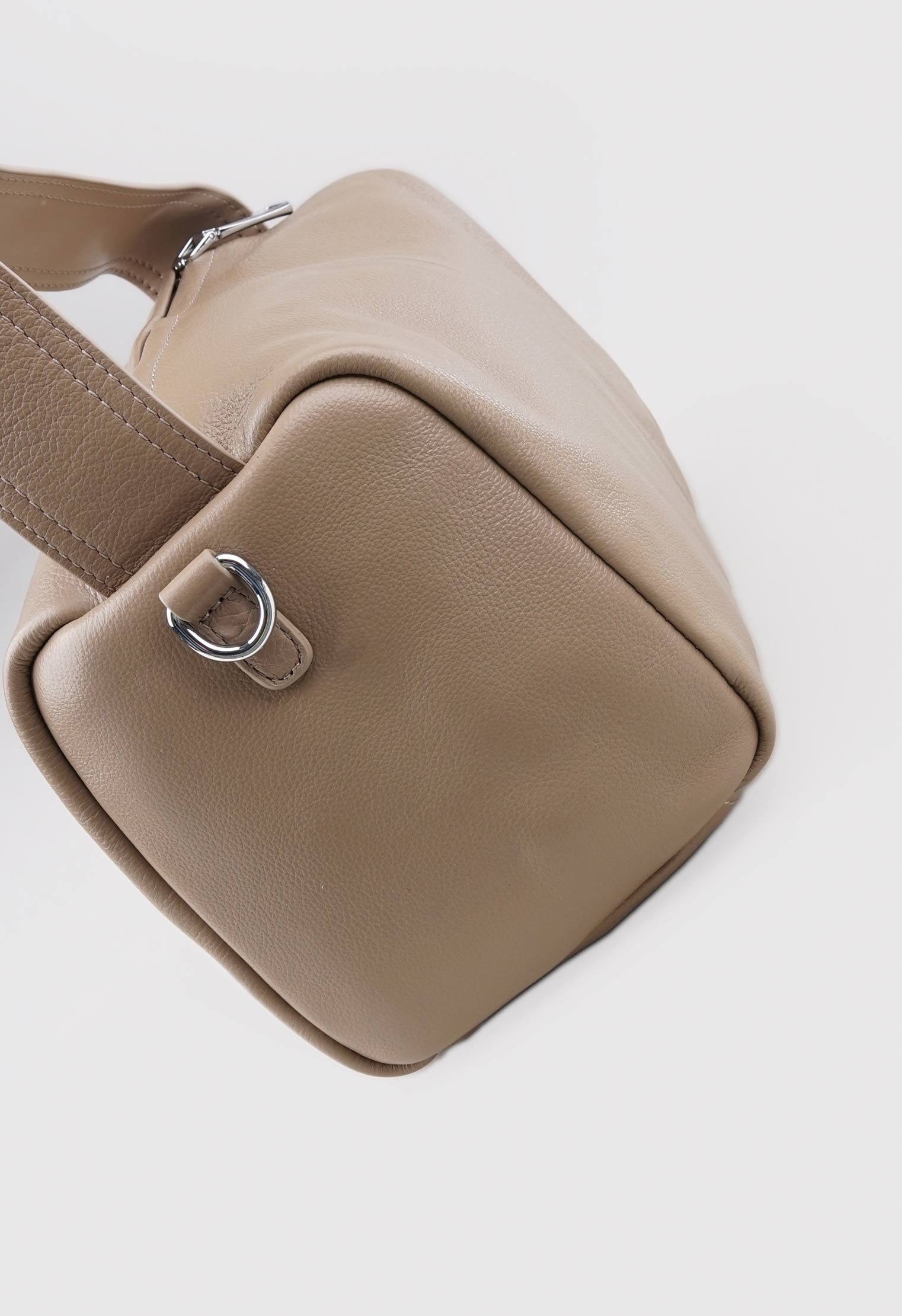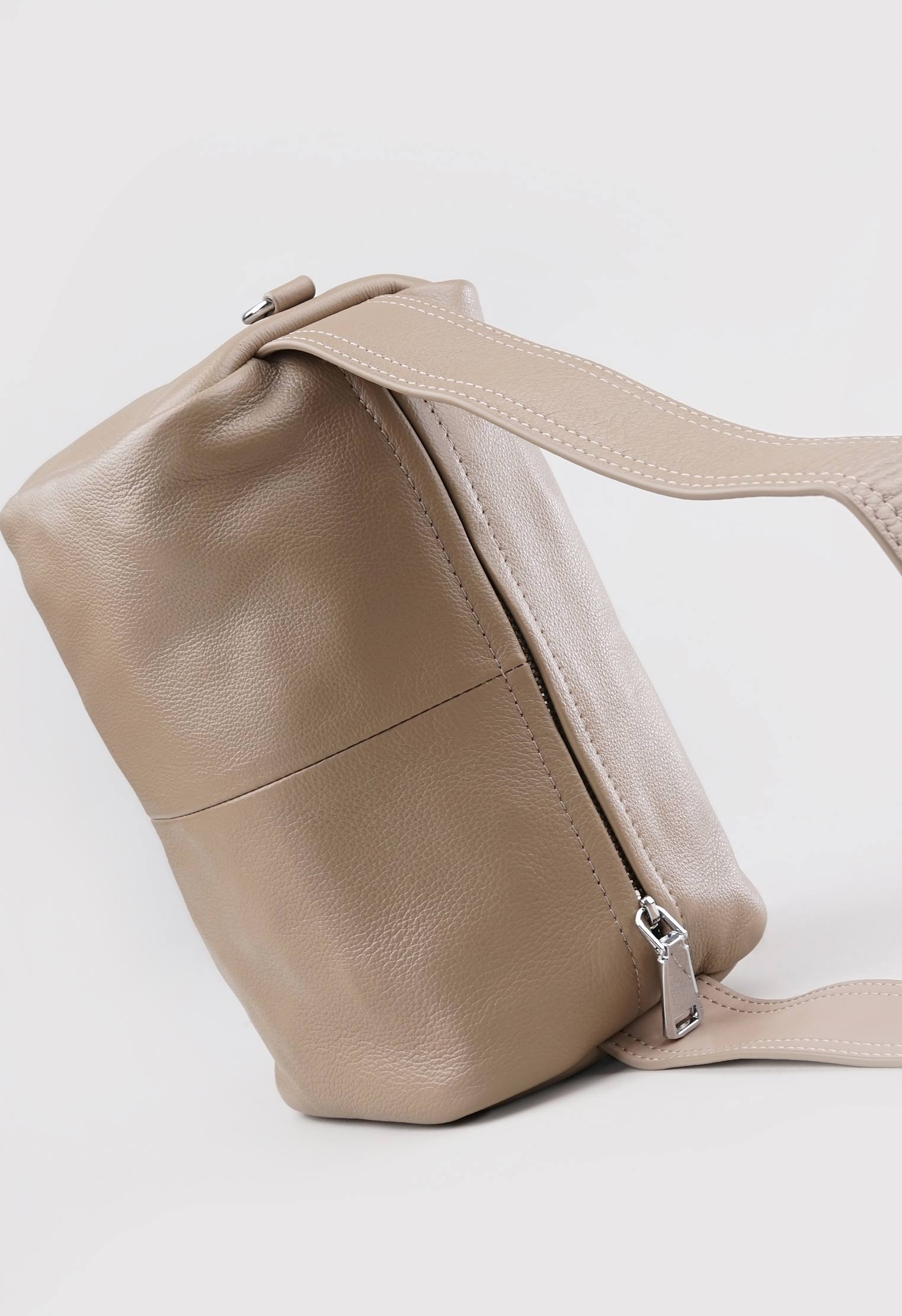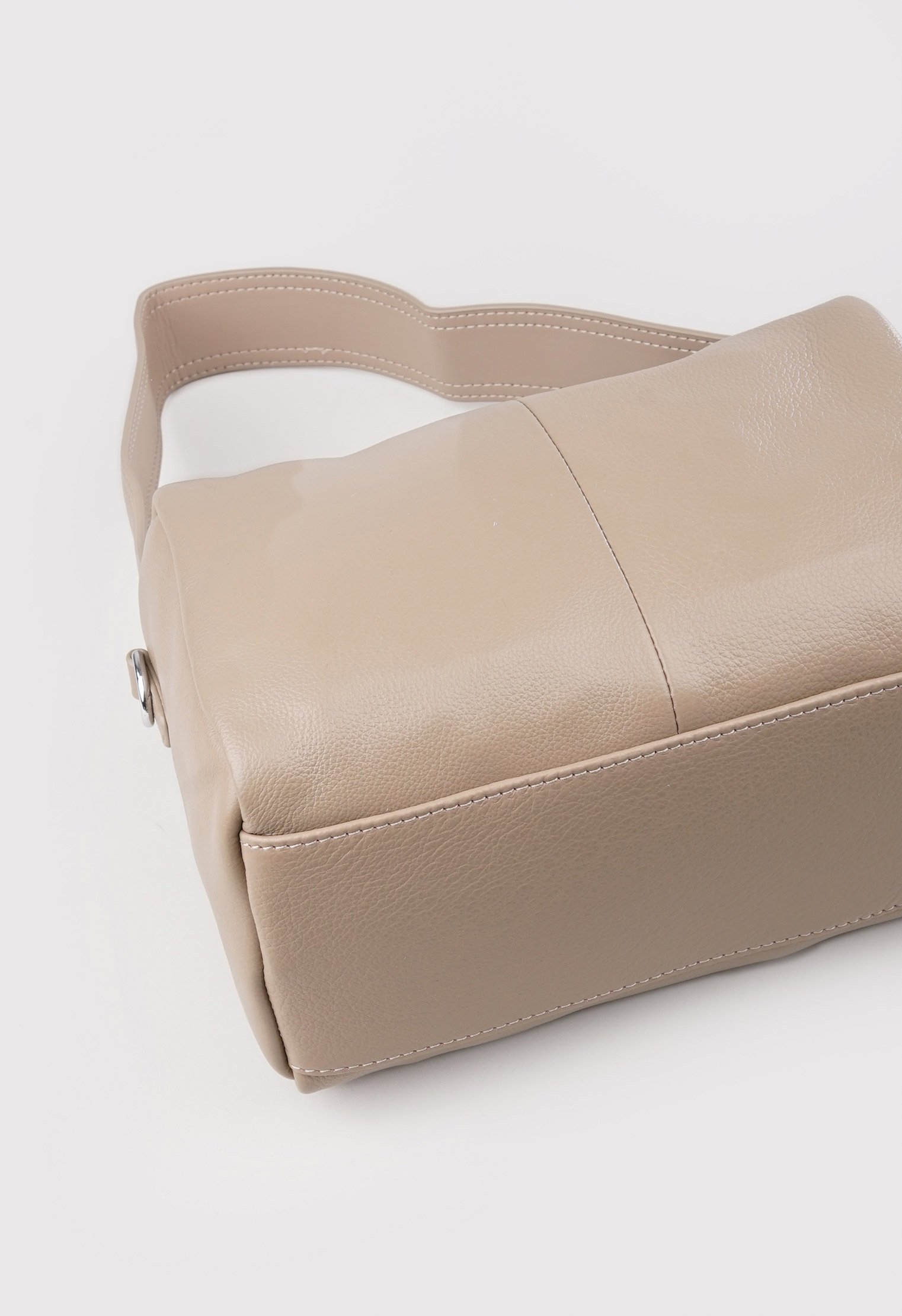 Вместительная сумка из новой коллекции изготовлена из натуральной кожи и представлена в трендовом оттенке хаки. Изделие дополнено стильной моноручкой, в комплект входит съёмный плечевой ремень на карабинах. Основное отделение застёгивается на молнию и имеет два внутренних кармана. Объёмная модель превосходно впишется в модный повседневный образ.