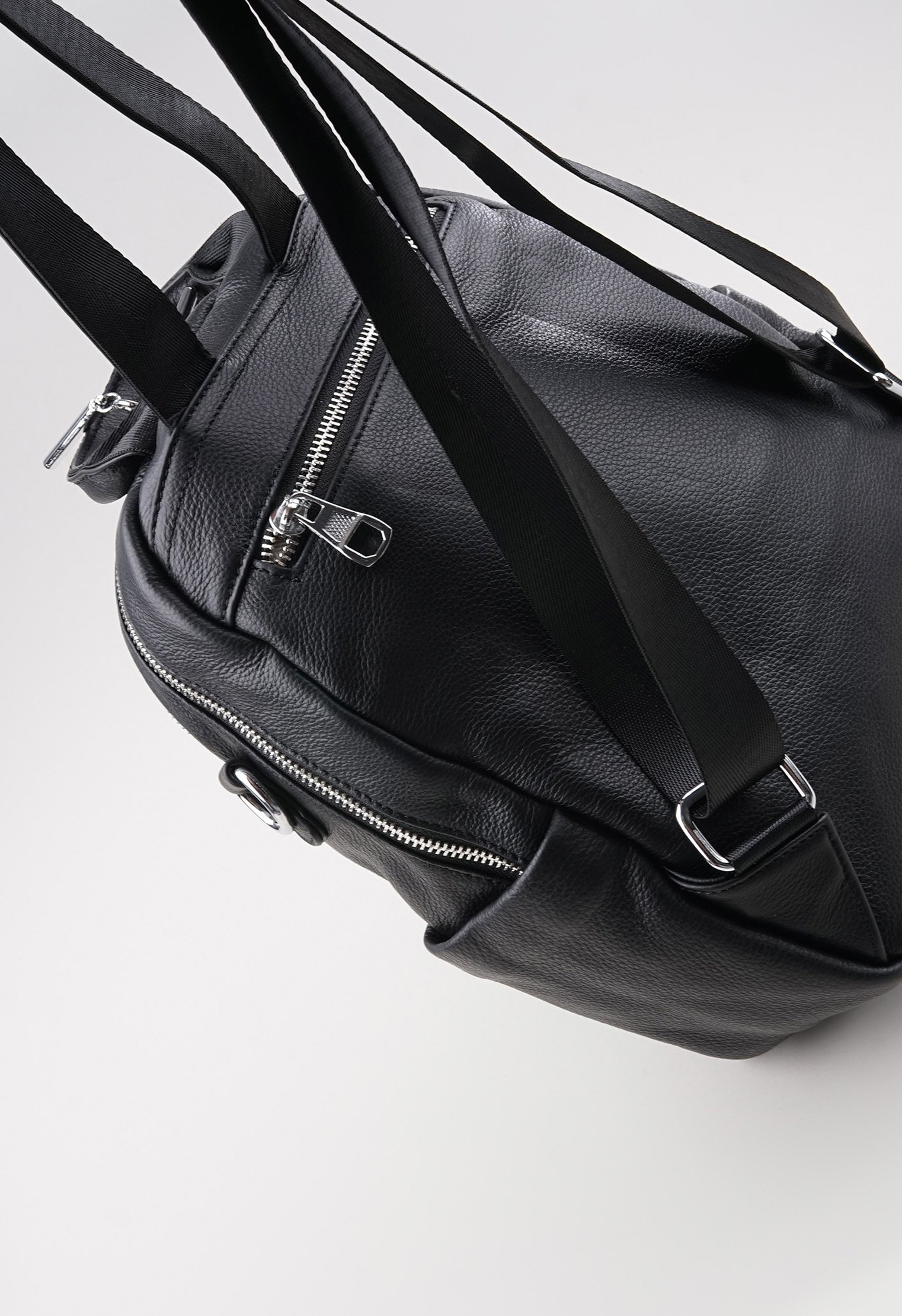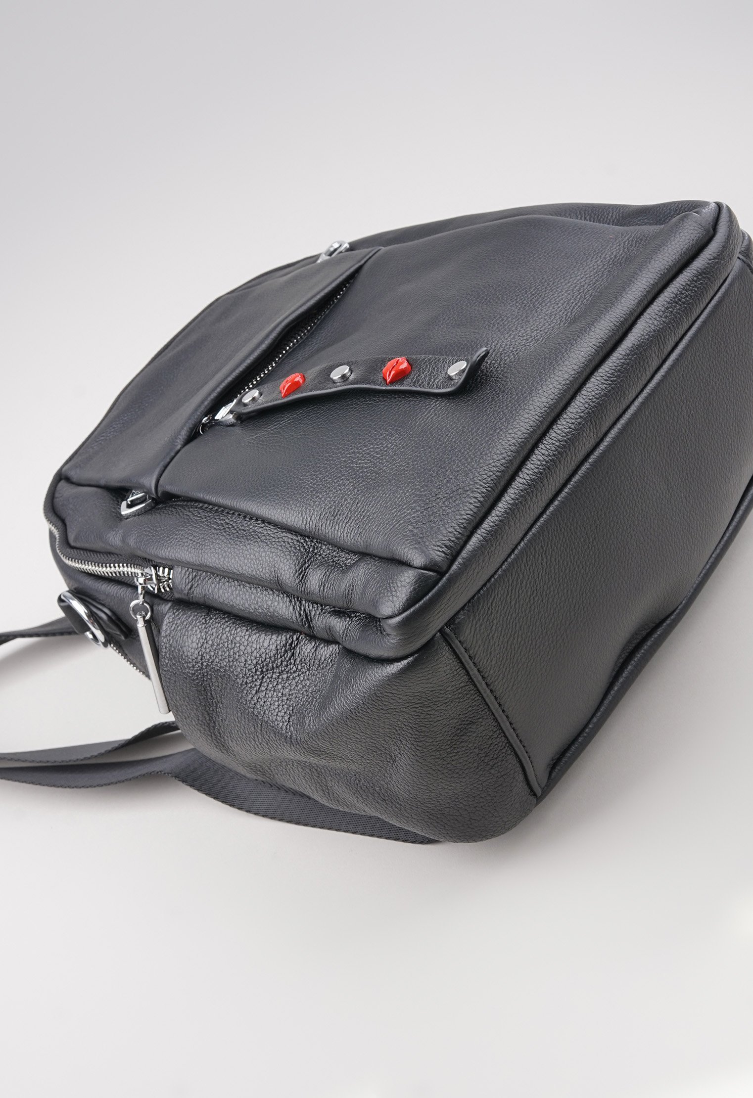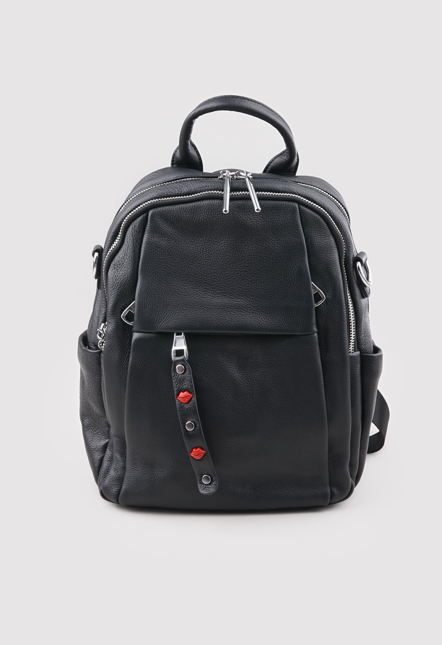 Стильный рюкзак из новой коллекции изготовлен из натуральной зернистой кожи и представлен в чёрном цвете. Изделие закрывается на молнию и имеет несколько карманов с внешней стороны. В комплект входит съёмный текстильный ремень на карабинах. Современная функциональная модель идеально впишется в модный современный гардероб на каждый день.