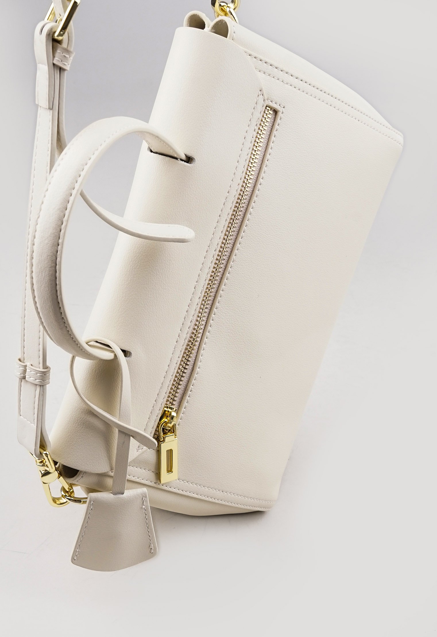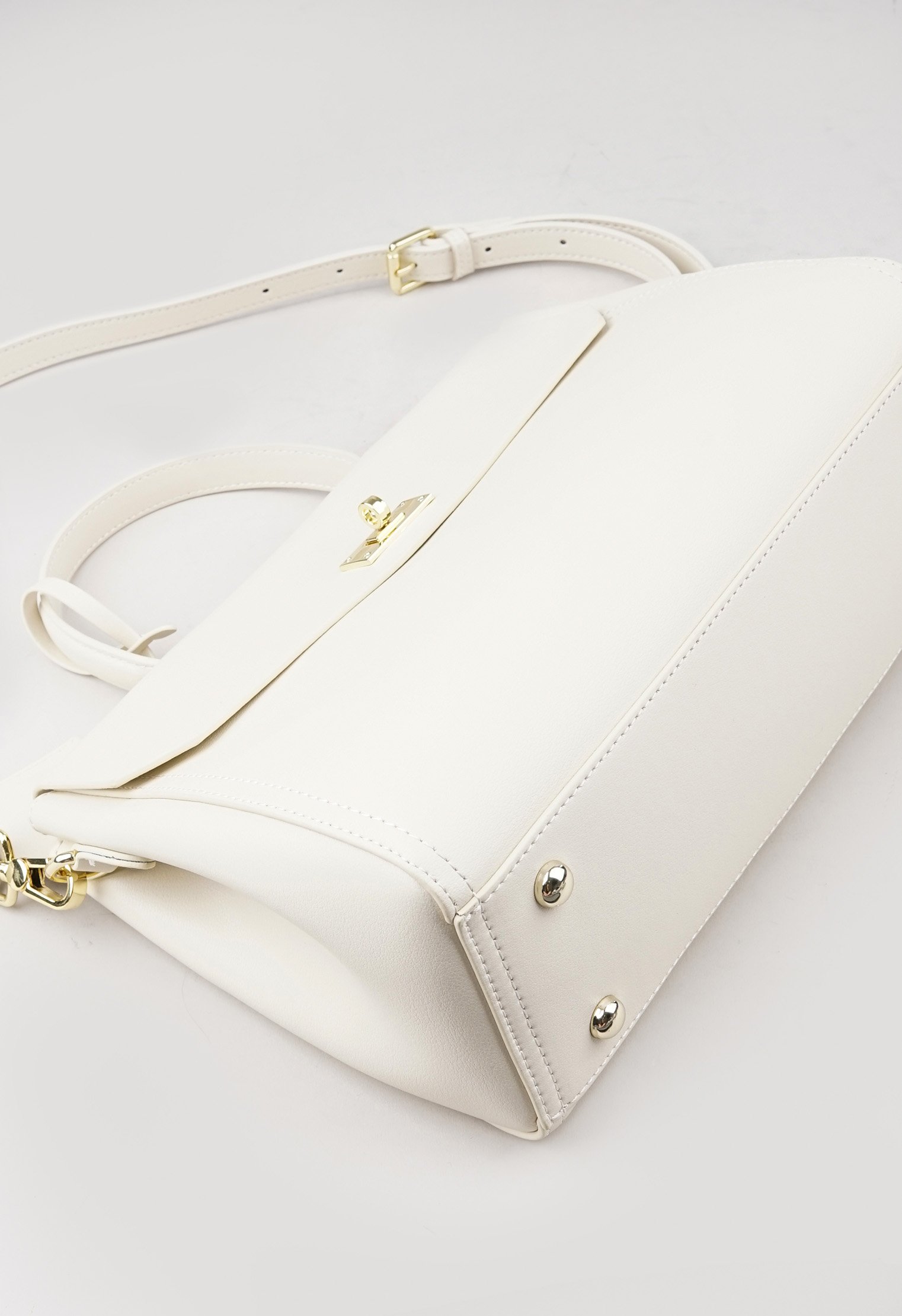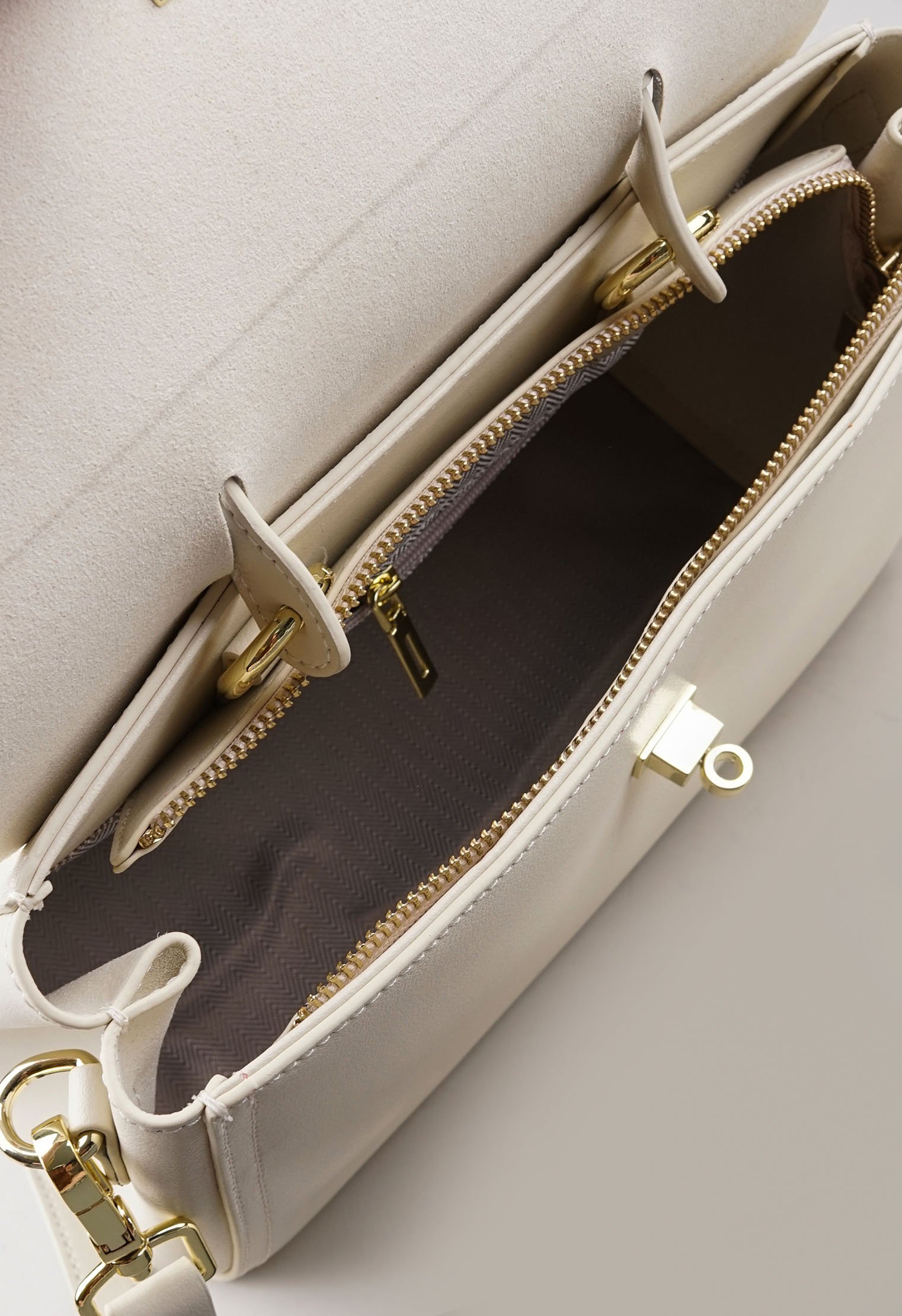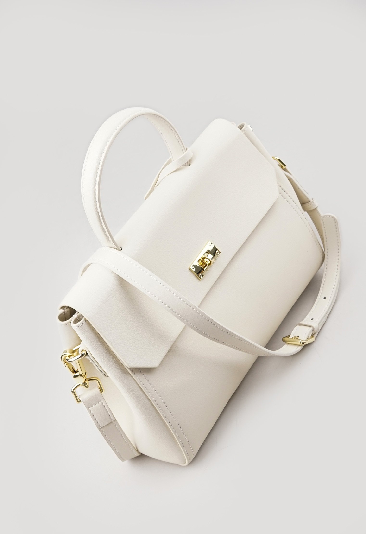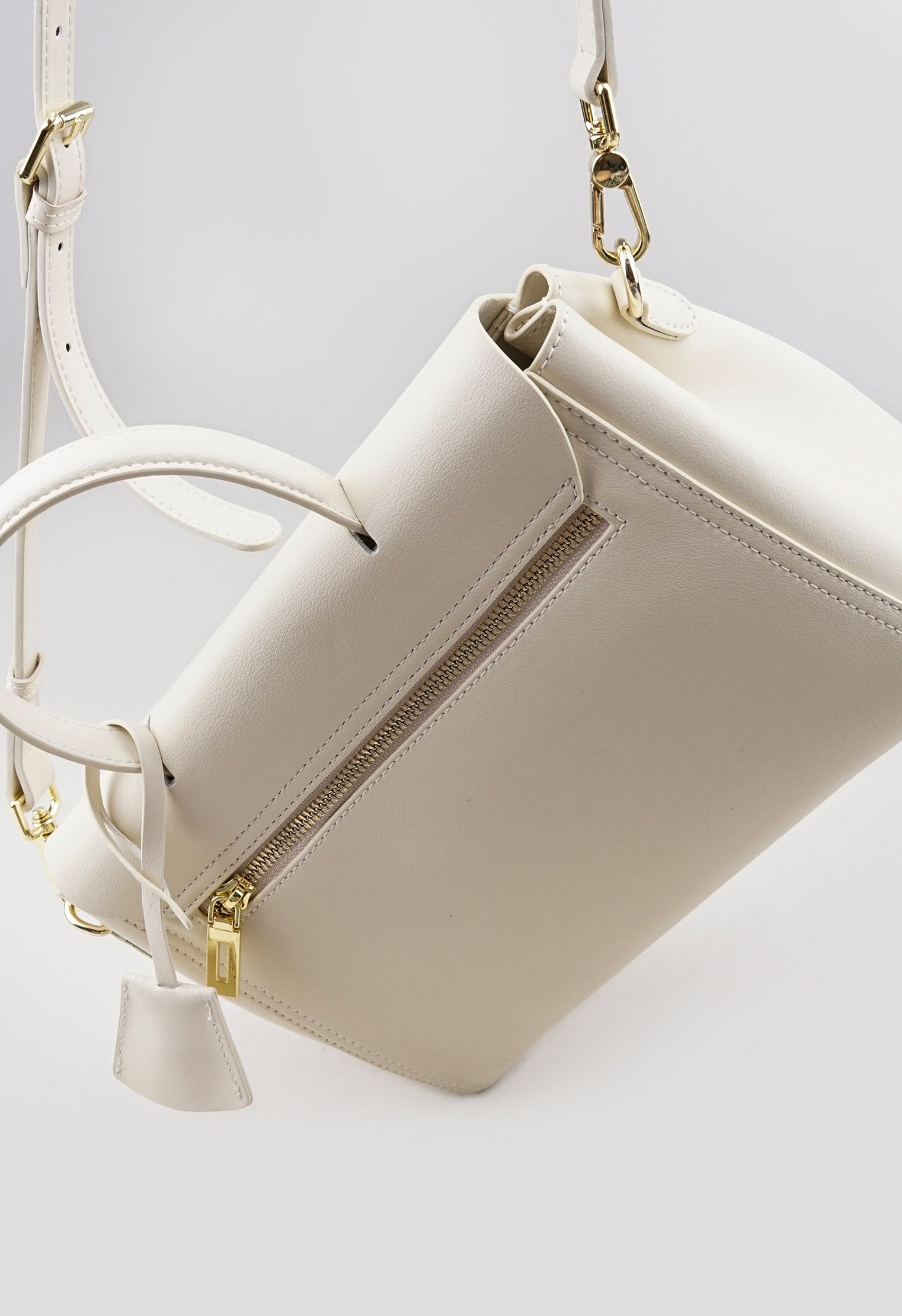 Сумка из новой коллекции изготовлена из натуральной кожи молочного оттенка и дополнена удобной ручкой. Изделие закрывается на клапан и оснащено тремя внутренними карманами. Однотонный дизайн позволяет подбирать как классические строгие образы, так и современные наряды из базового гардероба. Лаконичная модель поможет оставаться в тренде не один сезон.