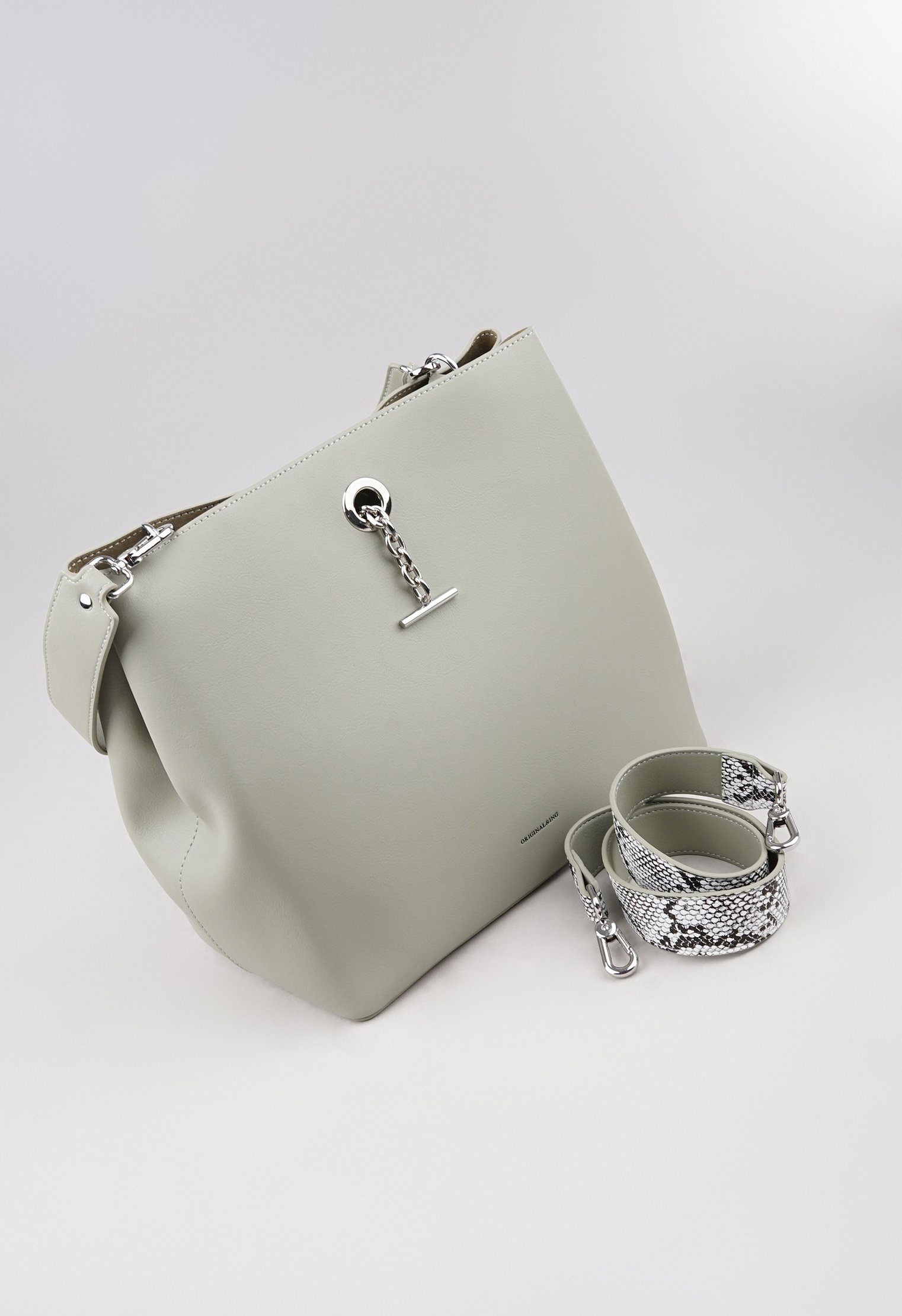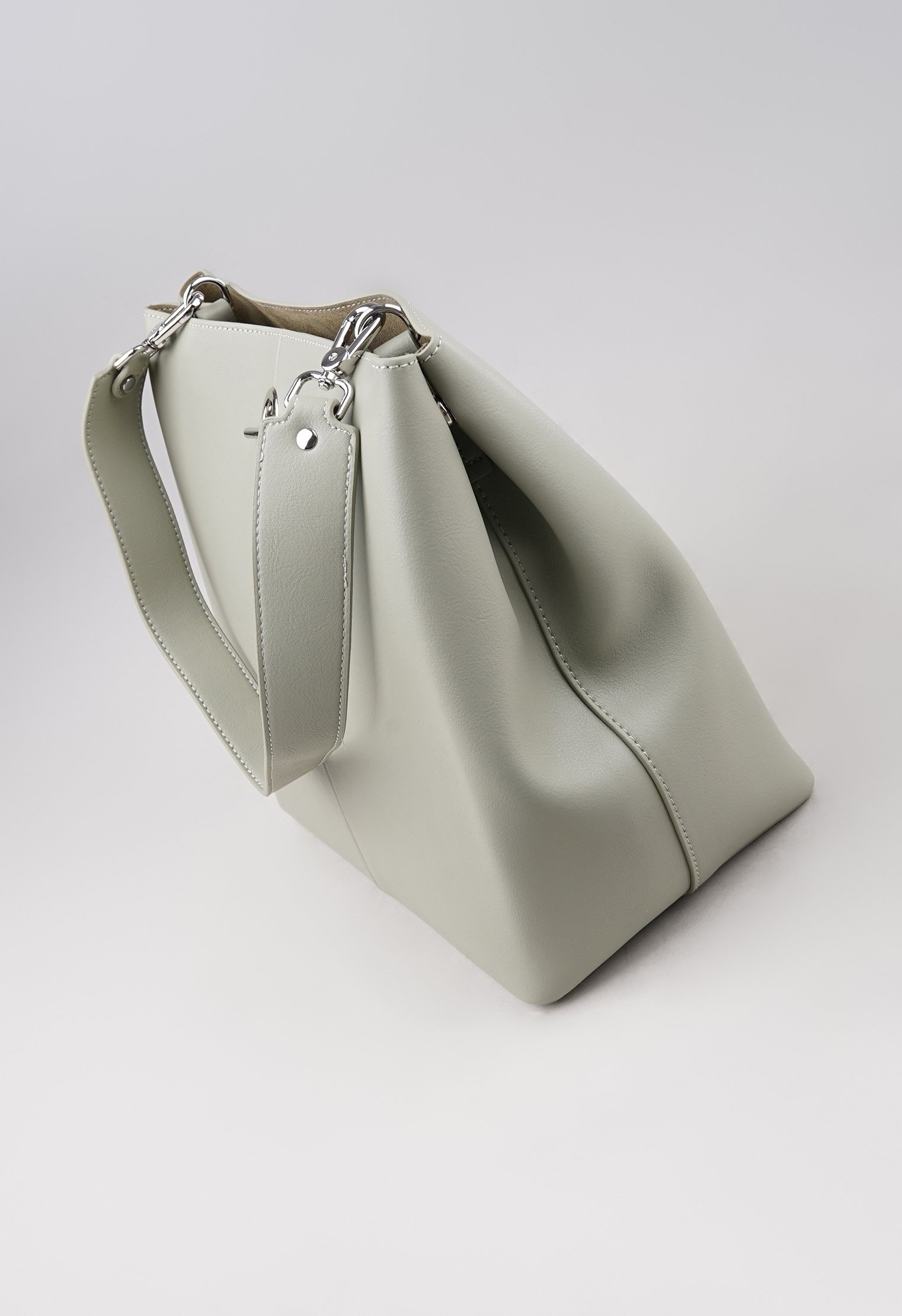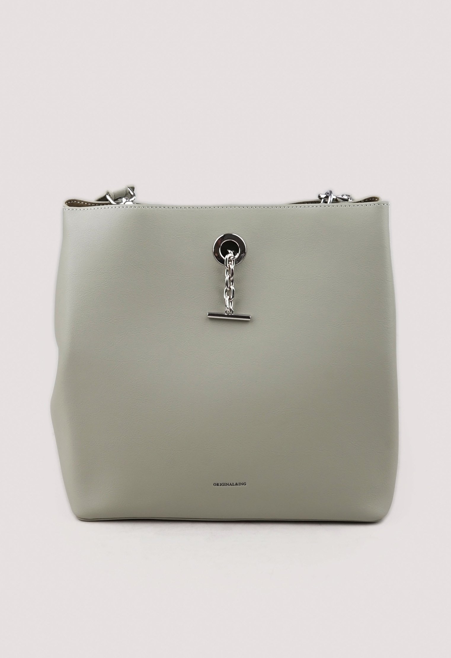 Из минусов - ремень не длинный и второй тоже не регулируется, но в целом привыкнуть можно. Внутри нет отделений только тканевая внутренняя сумочка на молнии, в ней карман тоже на молнии. Размер кажется прям большим, но по факту не так много помещается в нее. Цвет приятный серо-зеленоватый с оттенком. В руках смотрится миниатюрно. Цена средняя как в других магазинах.