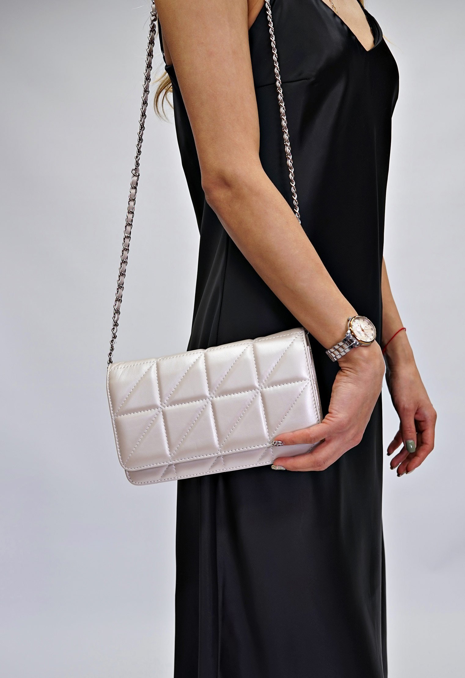 Сумка превзошла ожидания, цвет очень приятный глазу, ближе к перламутру, выглядит красиво в реальности. Есть много карманов, отдел с молнией и кармашки под карты. Удобная, компактная, на вечер идеальна как по размеру так и по дизайну. Довольна покупкой, рекомендую