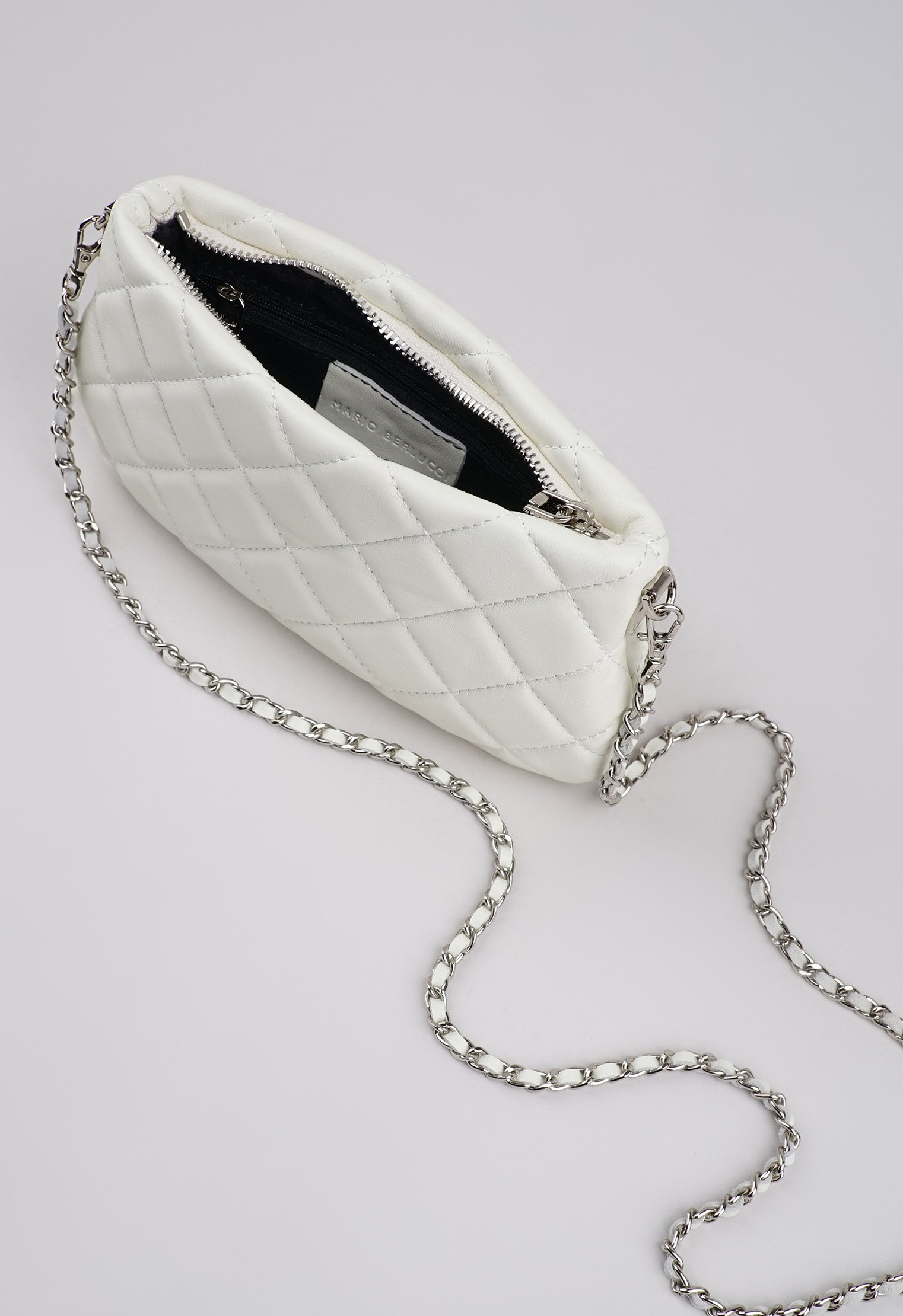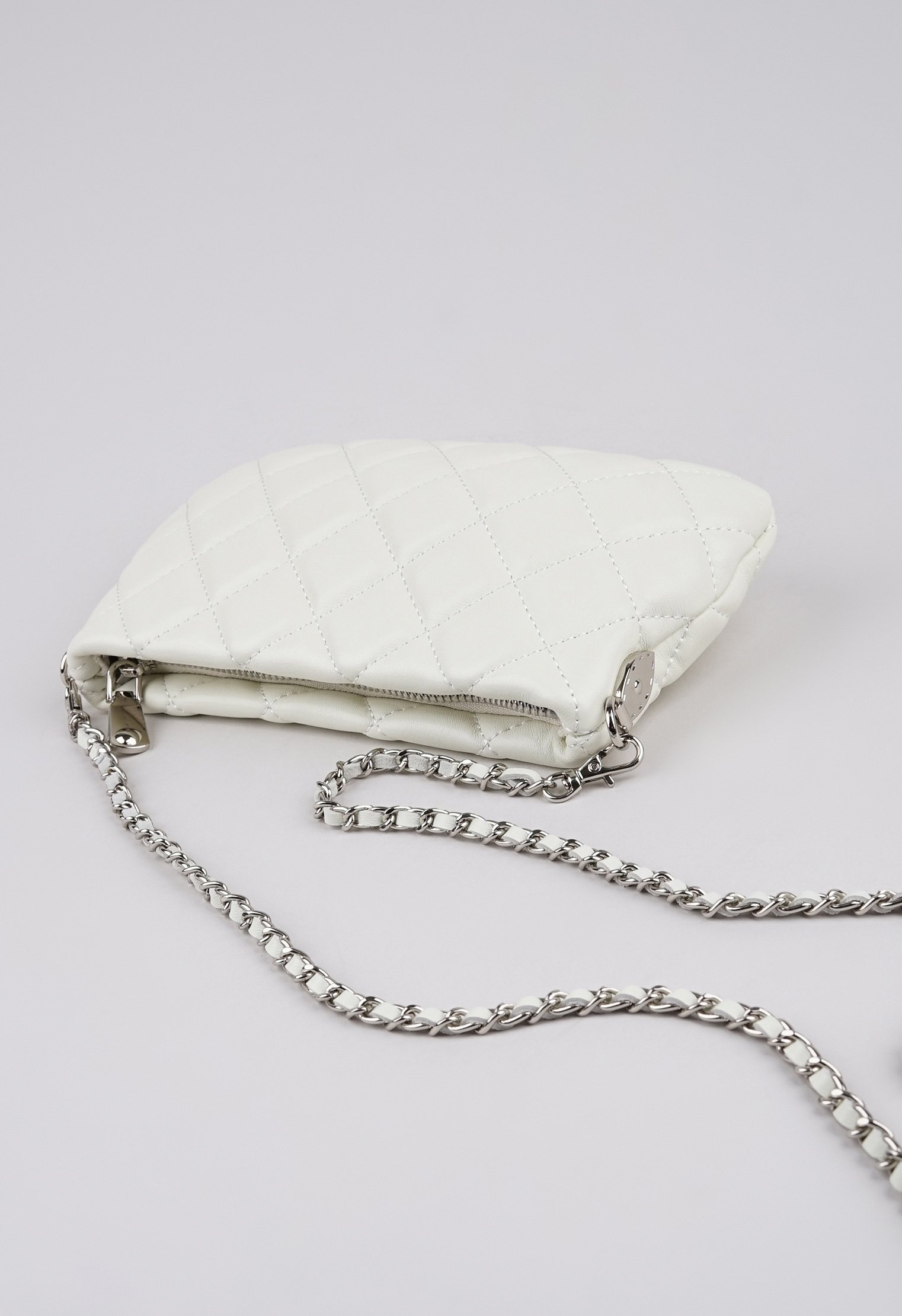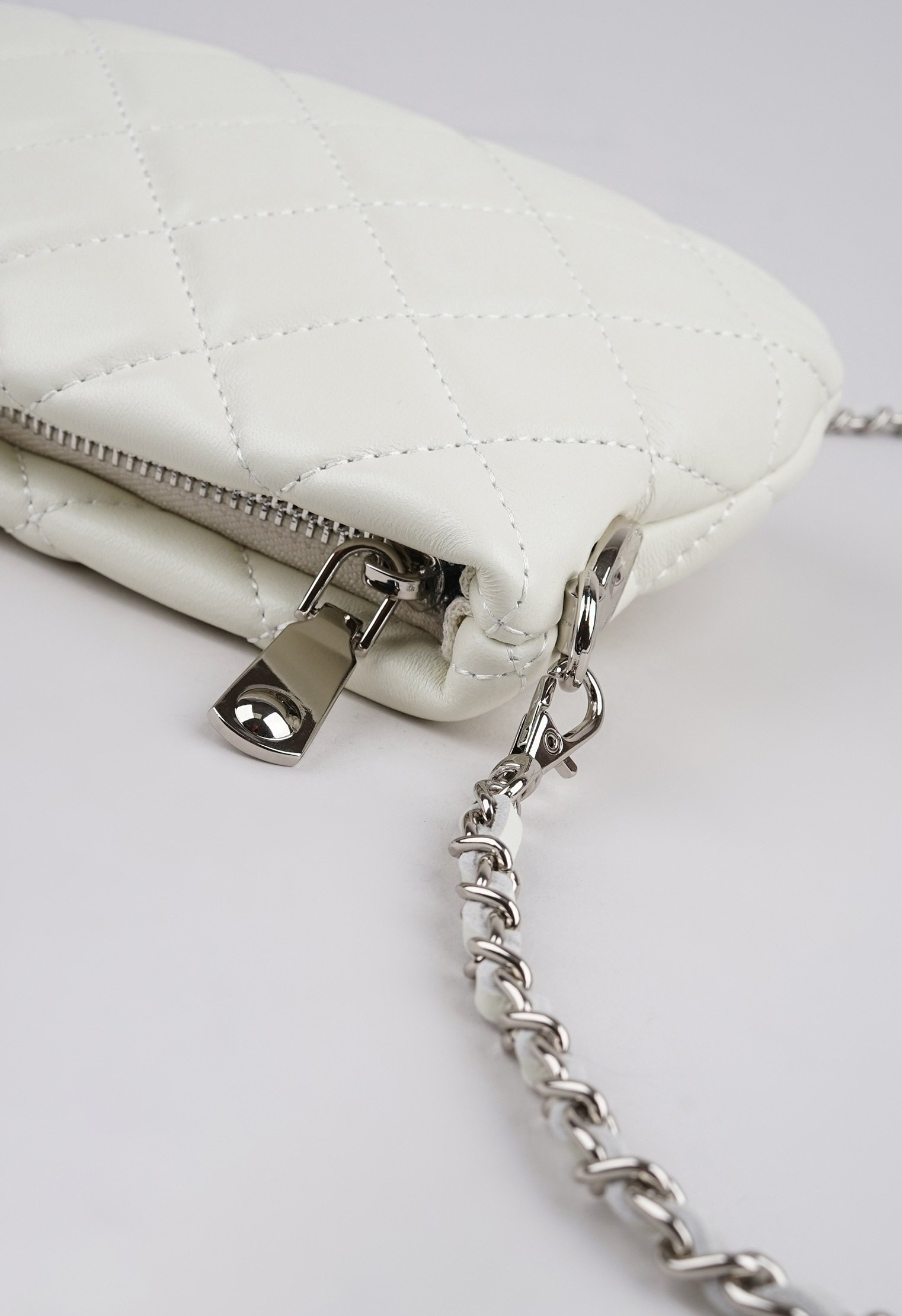 Однотонная сумка из новой коллекции изготовлена из натуральной кожи и декорирована классической строчкой. Изделие дополнено застёжкой в виде молнии и двумя внутренними карманами для мелочей. Съёмный ремень в виде цепи позволяет носить аксессуар в руке и на плече. Лаконичная модель идеально впишется в стильный повседневный образ.