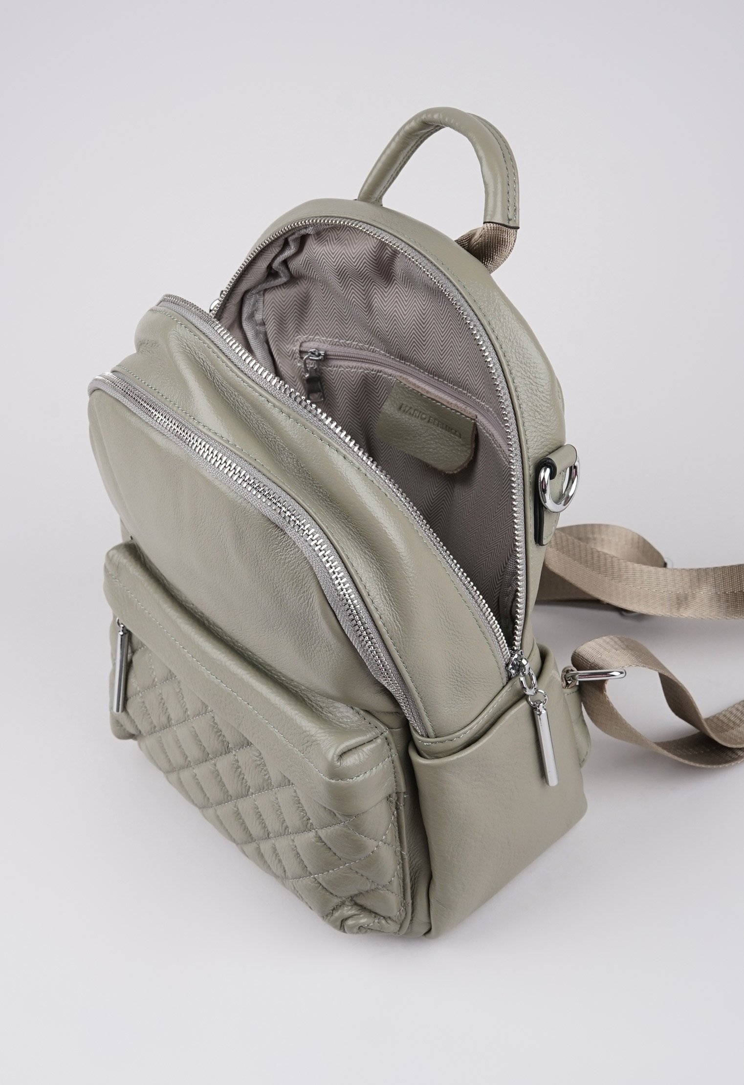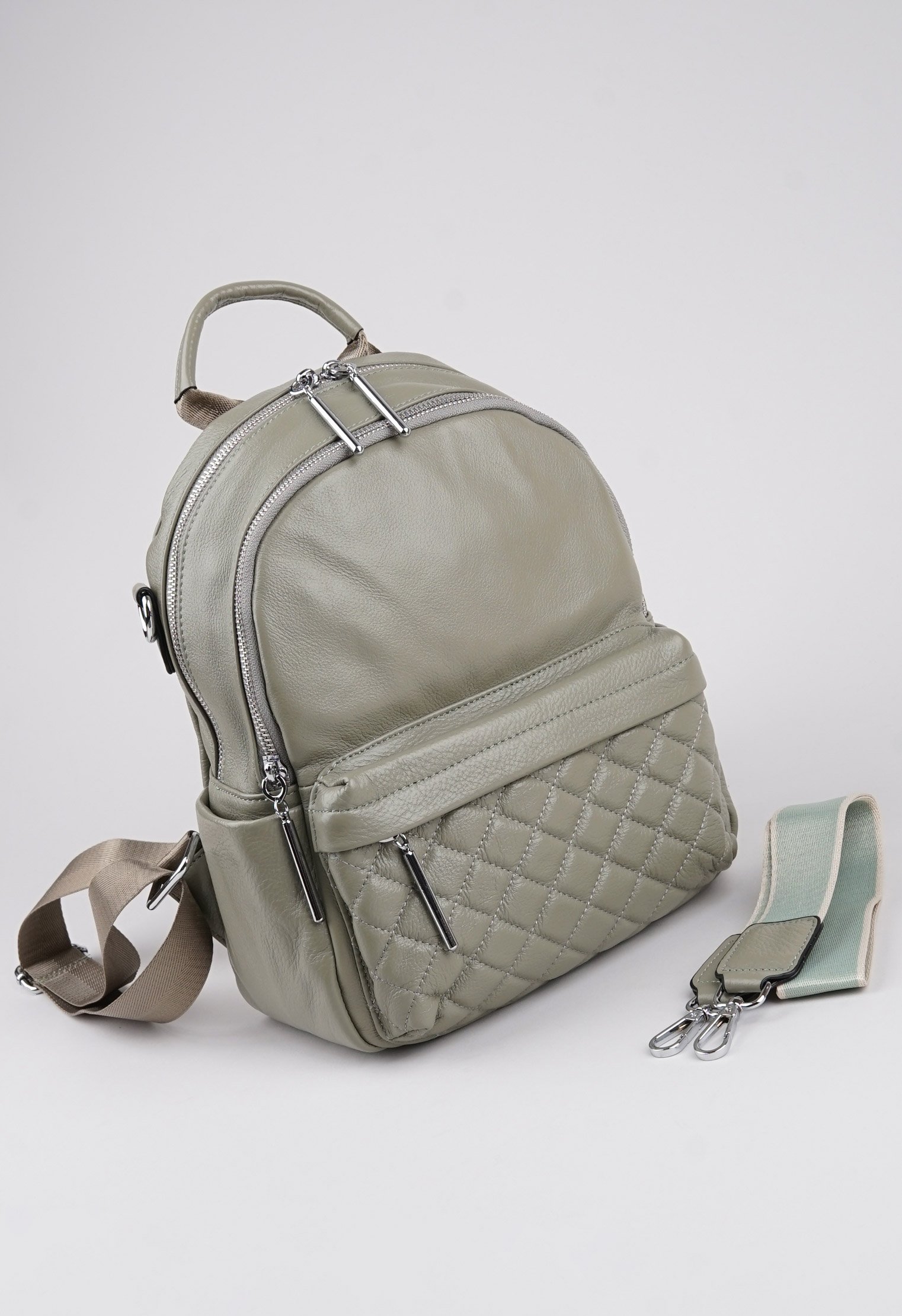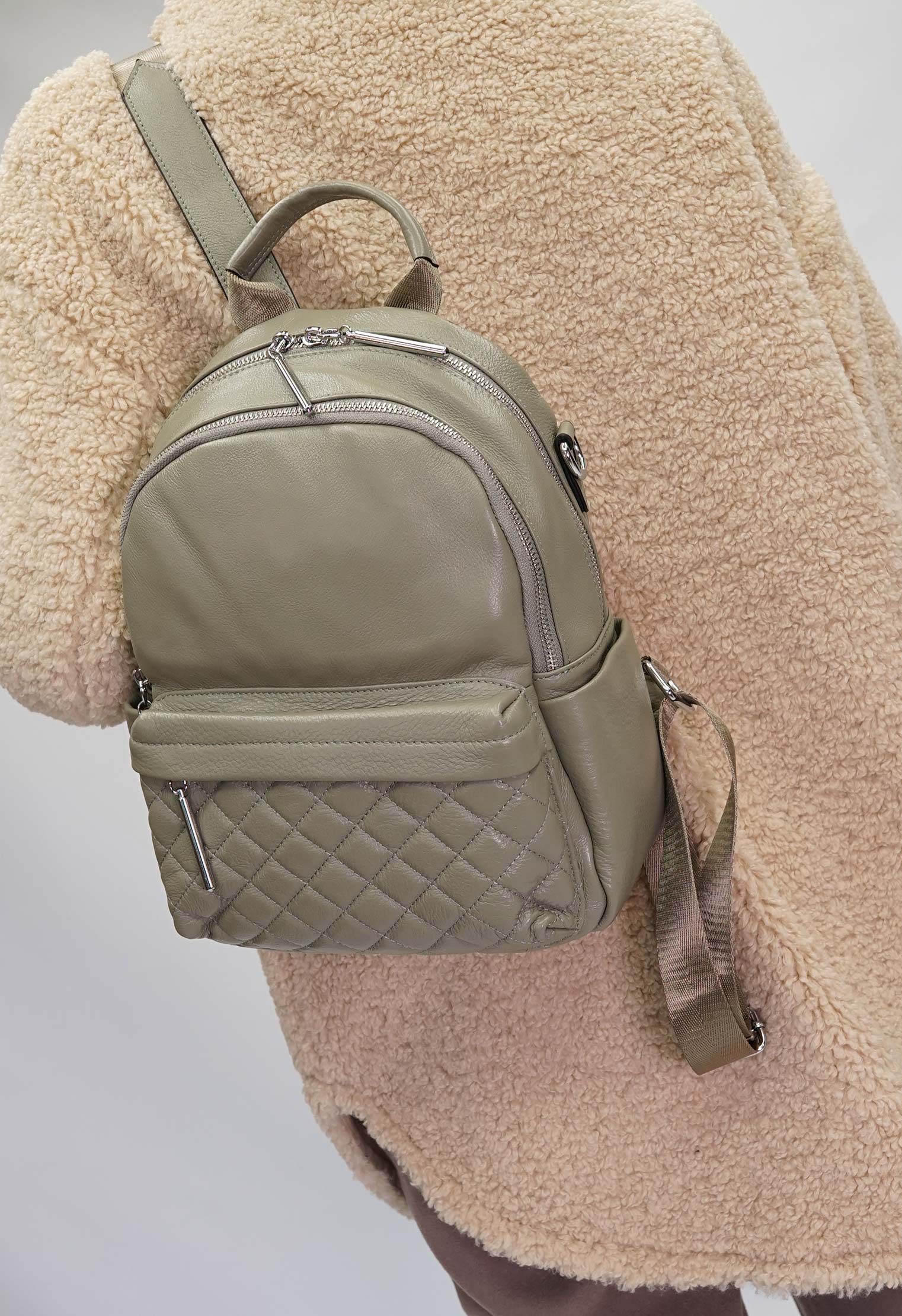 Выбирала по цвету, нравятся пастельные тона так что этот оттенок больше всех подошел, он сочетается со светлыми и черными вещами, в коже вообще отменно выглядит! По факту цвет светло-оливковый, весь декор серебряный, сочетается на пять баллов. Внутри два кармана, снаружи четыре, места хватает и для мелочи и для рабочих вещей. Я довольна, спасибо производителю!!!