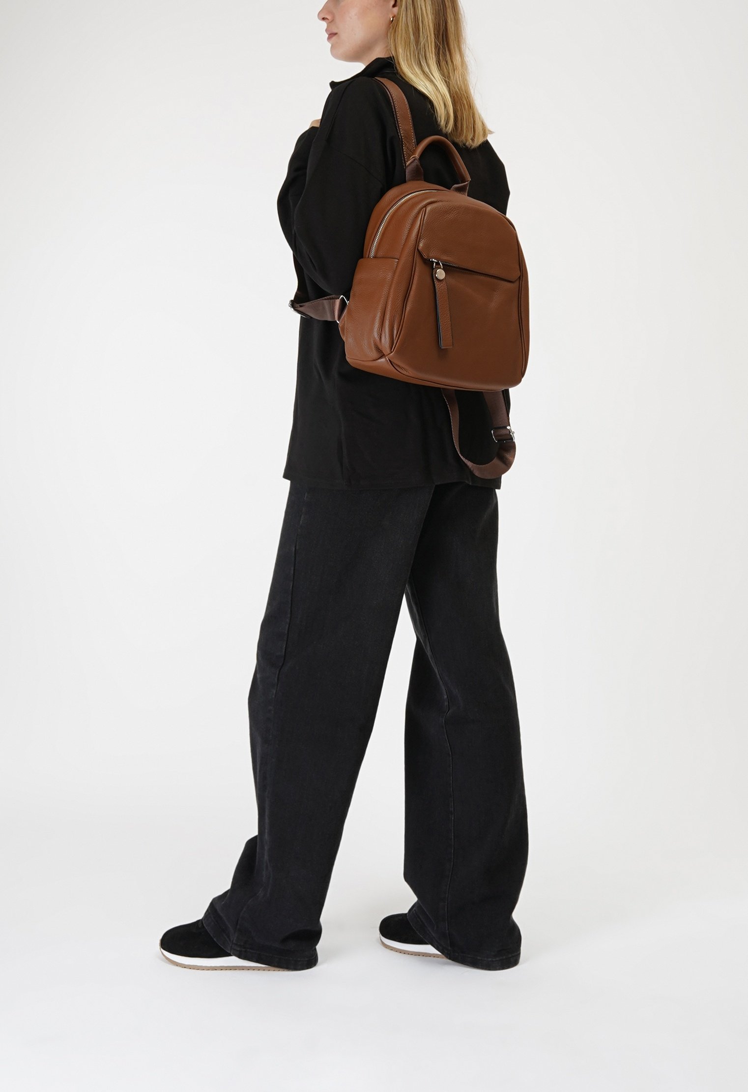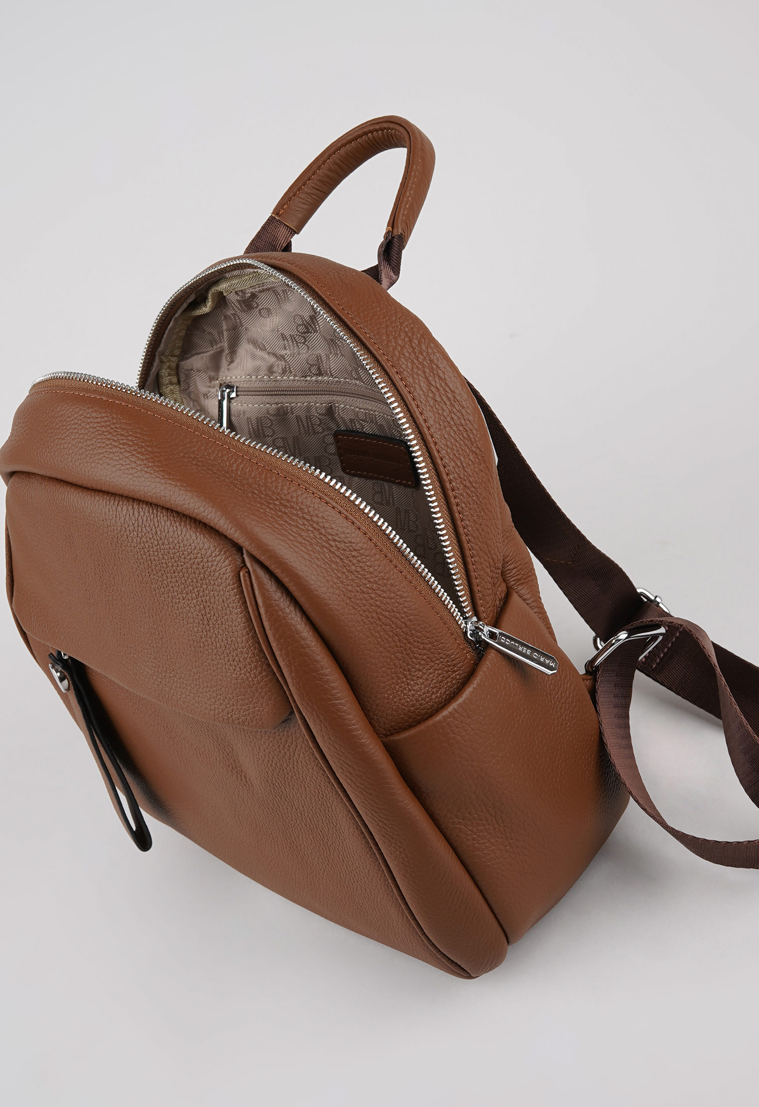 Отличный рюкзак компактного формата, вмещается много, ездила с ним в мини отпуск и хожу на работу. Из трех цветов выбрала коричневый, практично и не выбивается из любой гаммы, на осень и зиму для меня оказался подходящим оттенком. По наполнению два отдела внутри, карман на молнии снаружи два, и два боковых. Выглядит как на фото, очень качественная кожа, подклад ткань, отлично смотрится в любом образе! Рекомендую к покупке, очень довольна, не прогадала с выбором!!!