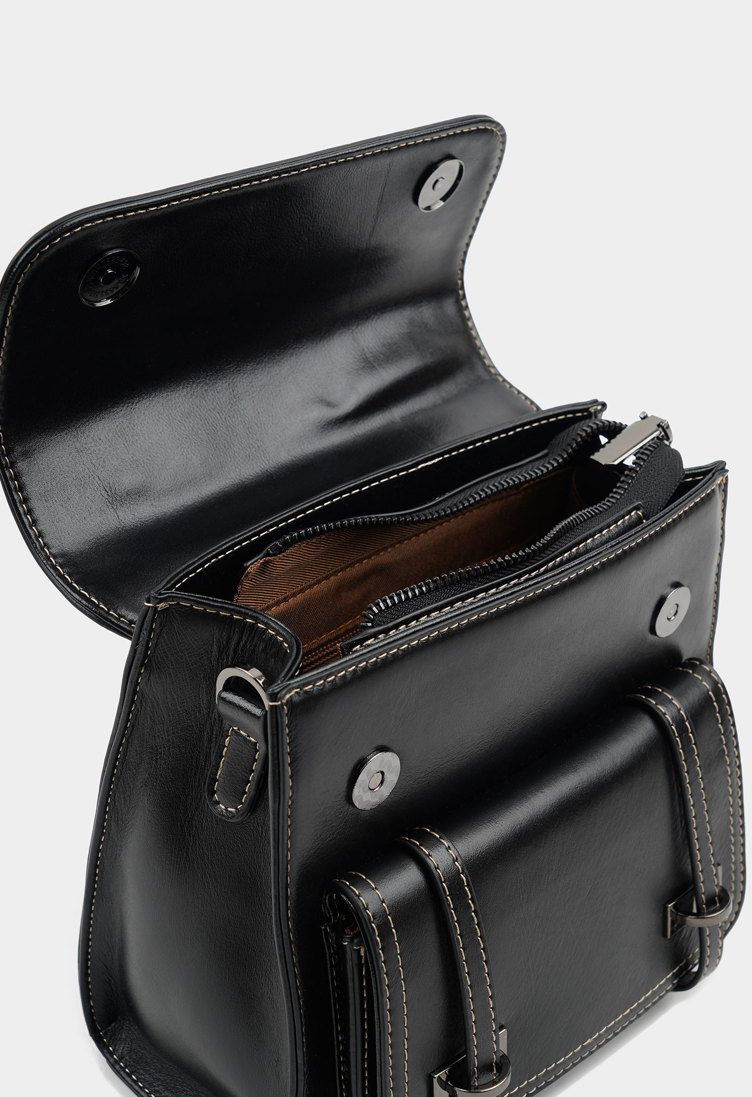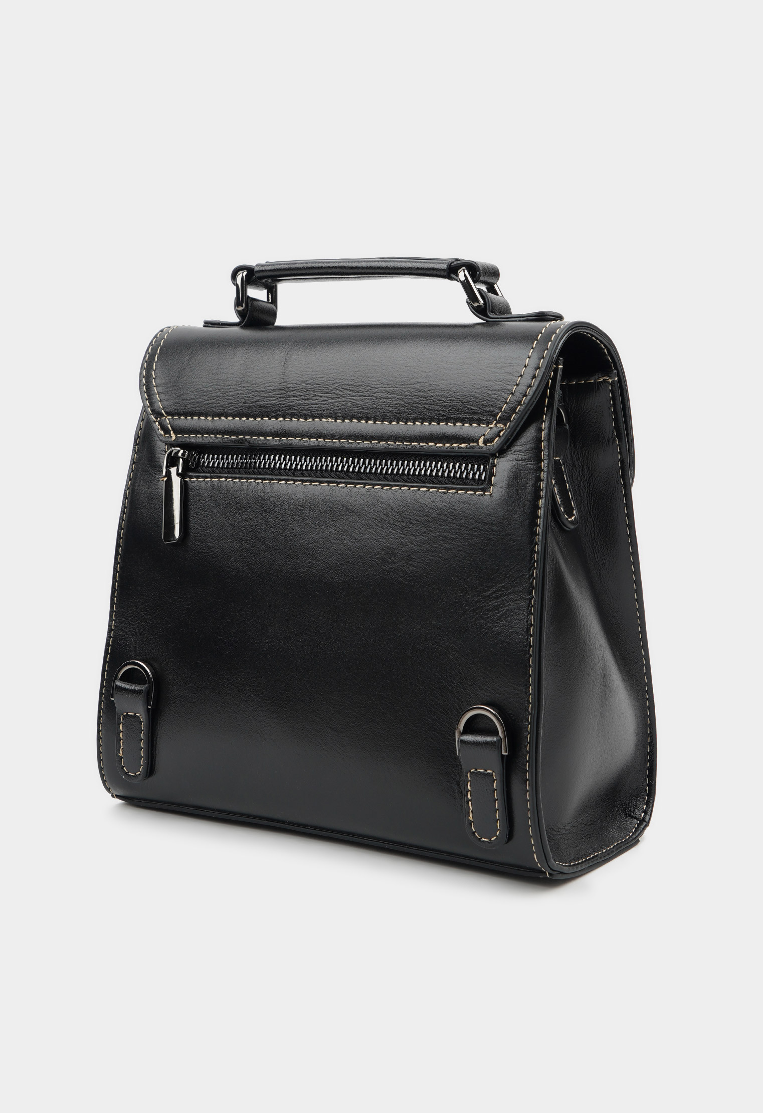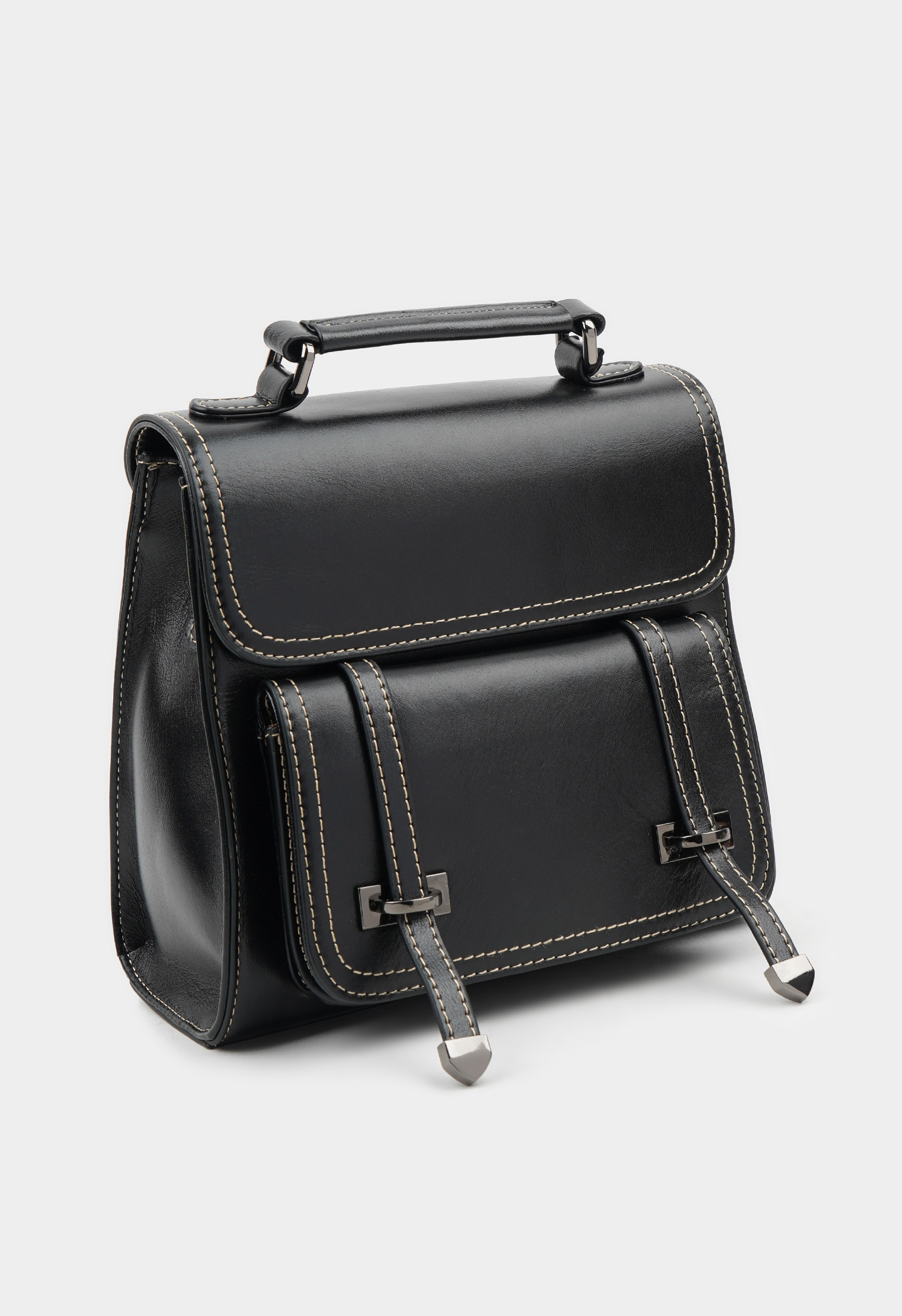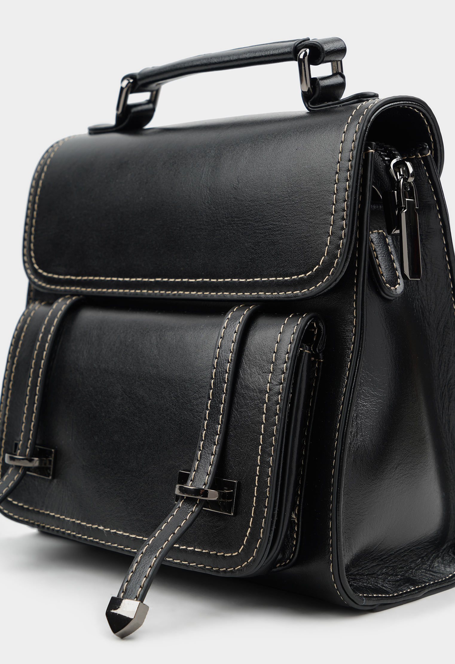 Компактная сумка из новой коллекции изготовлена из натуральной кожи и декорирована контрастной строчкой. Изделие дополнено удобной ручкой, двумя внутренними и двумя внешними карманами. Съемные ремни с регулировкой позволяют носить аксессуар в руке и на плече. Однотонная модель станет украшением современного образа на каждый день.