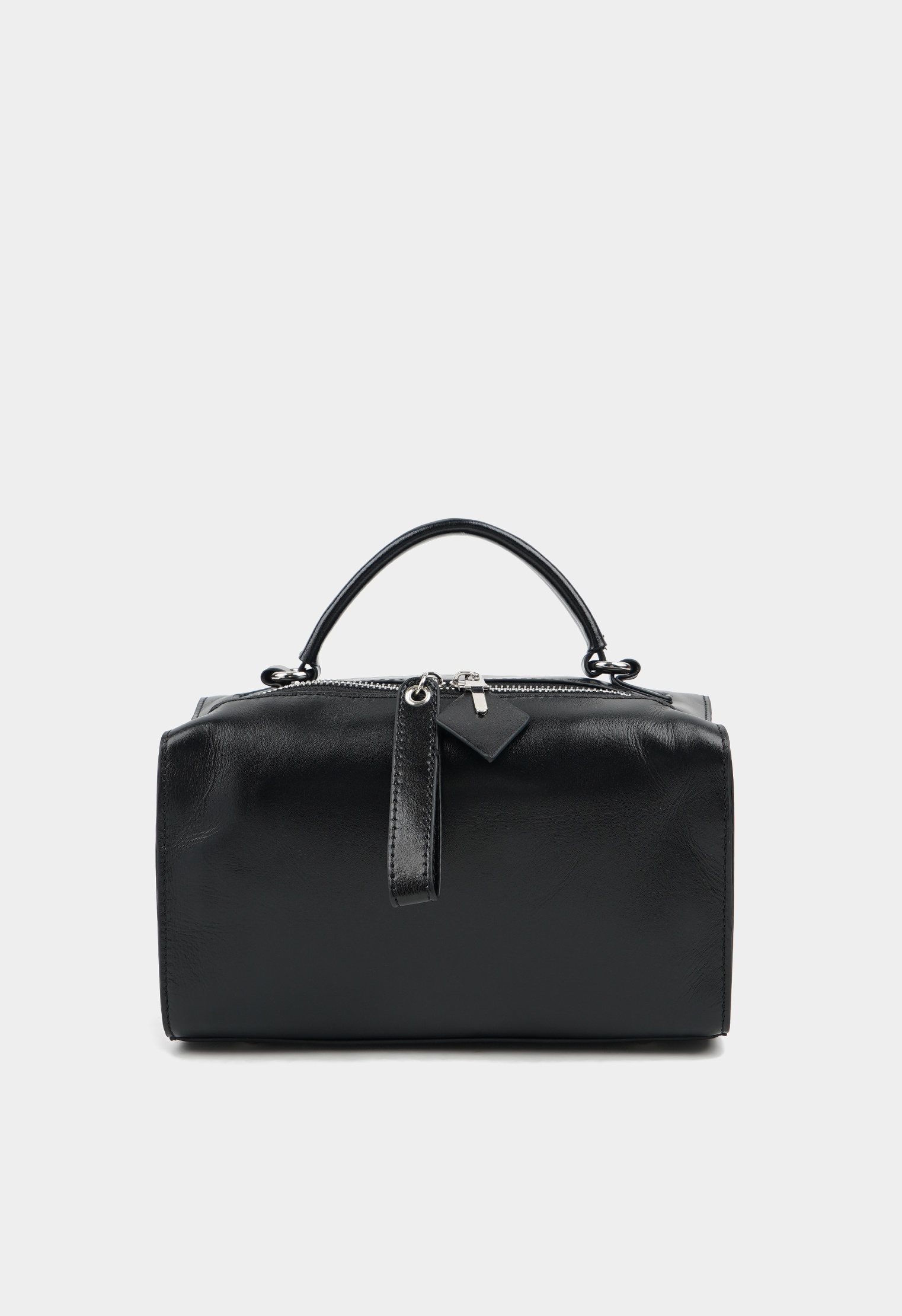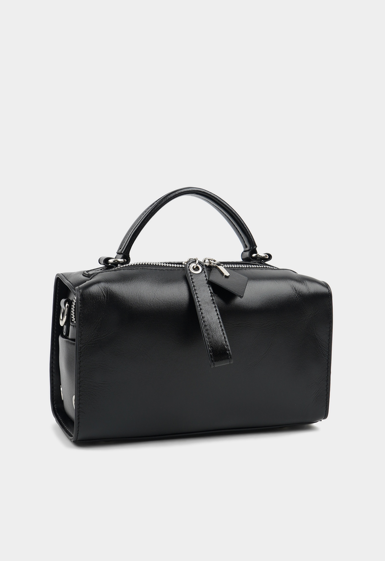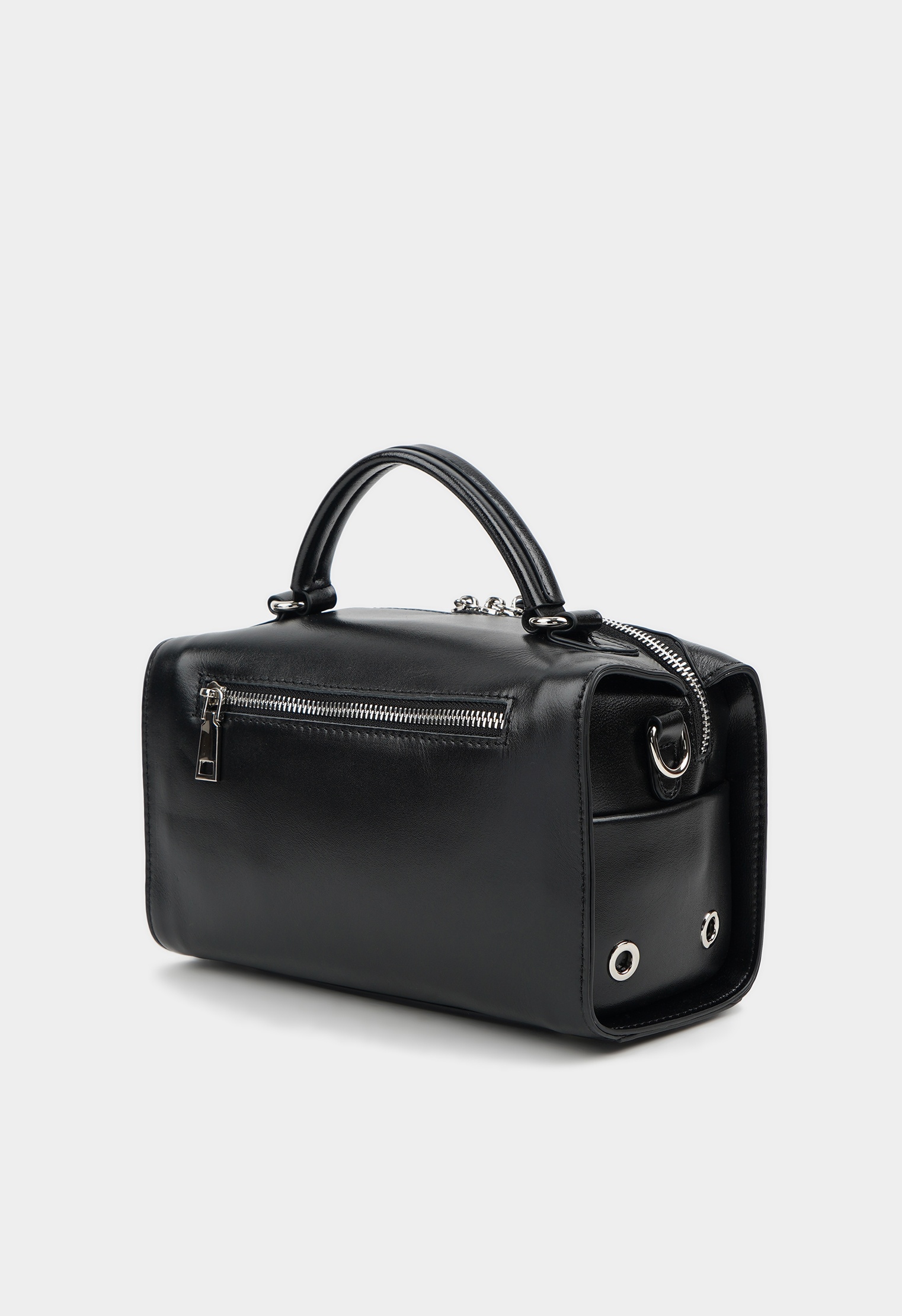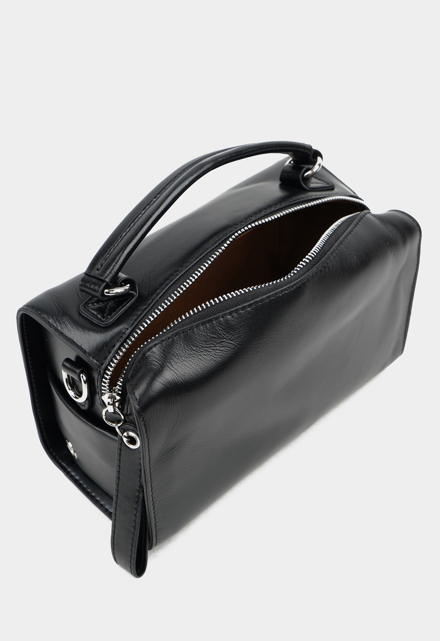 Стильная сумка из новой коллекции изготовлена из натуральной кожи и представлена в черном цвете. Геометричный силуэт дополнен удобной ручкой, двумя внутренними отделениями и тремя внешними карманами. В комплект входит два съемных плечевых ремня разной ширины. Актуальная модель удачно сочетается с элементами базового и классического гардероба.